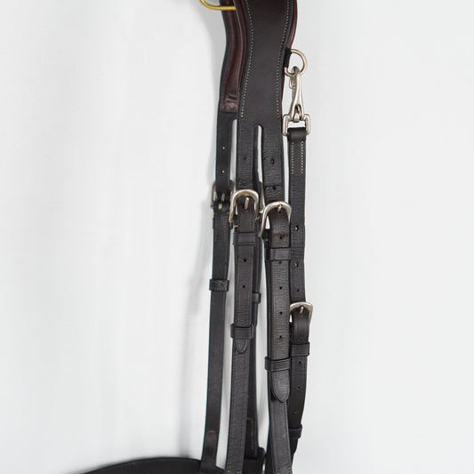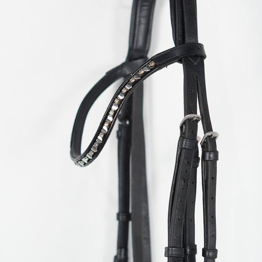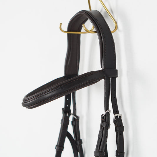 Innan vi annonserar ett träns går vi noggrant igenom det för att säkerställa att det är i säkert skick. Vi ser till att det är komplett med sidostycken, ganaschrem och gärna ett matchande pannband. Självklart kontrollerar vi också att lädret inte är torrt eller sprött och att alla sömmar är intakta.