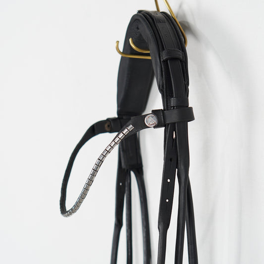 Innan vi annonserar ett träns går vi noggrant igenom det för att säkerställa att det är i säkert skick. Vi ser till att det är komplett med sidostycken, ganaschrem och gärna ett matchande pannband. Självklart kontrollerar vi också att lädret inte är torrt eller sprött och att alla sömmar är intakta.