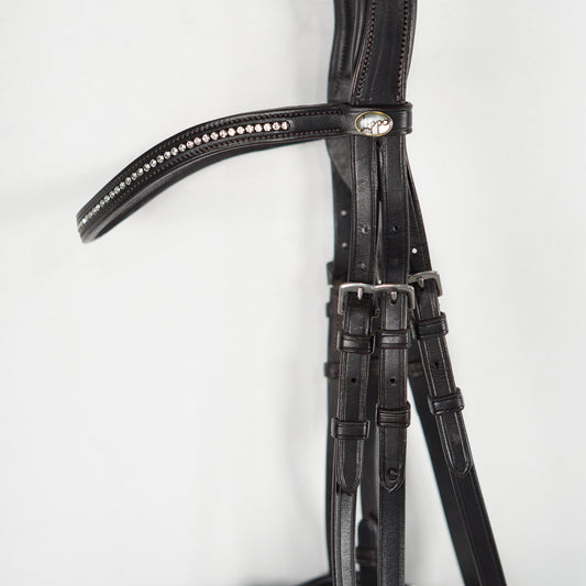 Innan vi annonserar ett träns går vi noggrant igenom det för att säkerställa att det är i säkert skick. Vi ser till att det är komplett med sidostycken, ganaschrem och gärna ett matchande pannband. Självklart kontrollerar vi också att lädret inte är torrt eller sprött och att alla sömmar är intakta.
