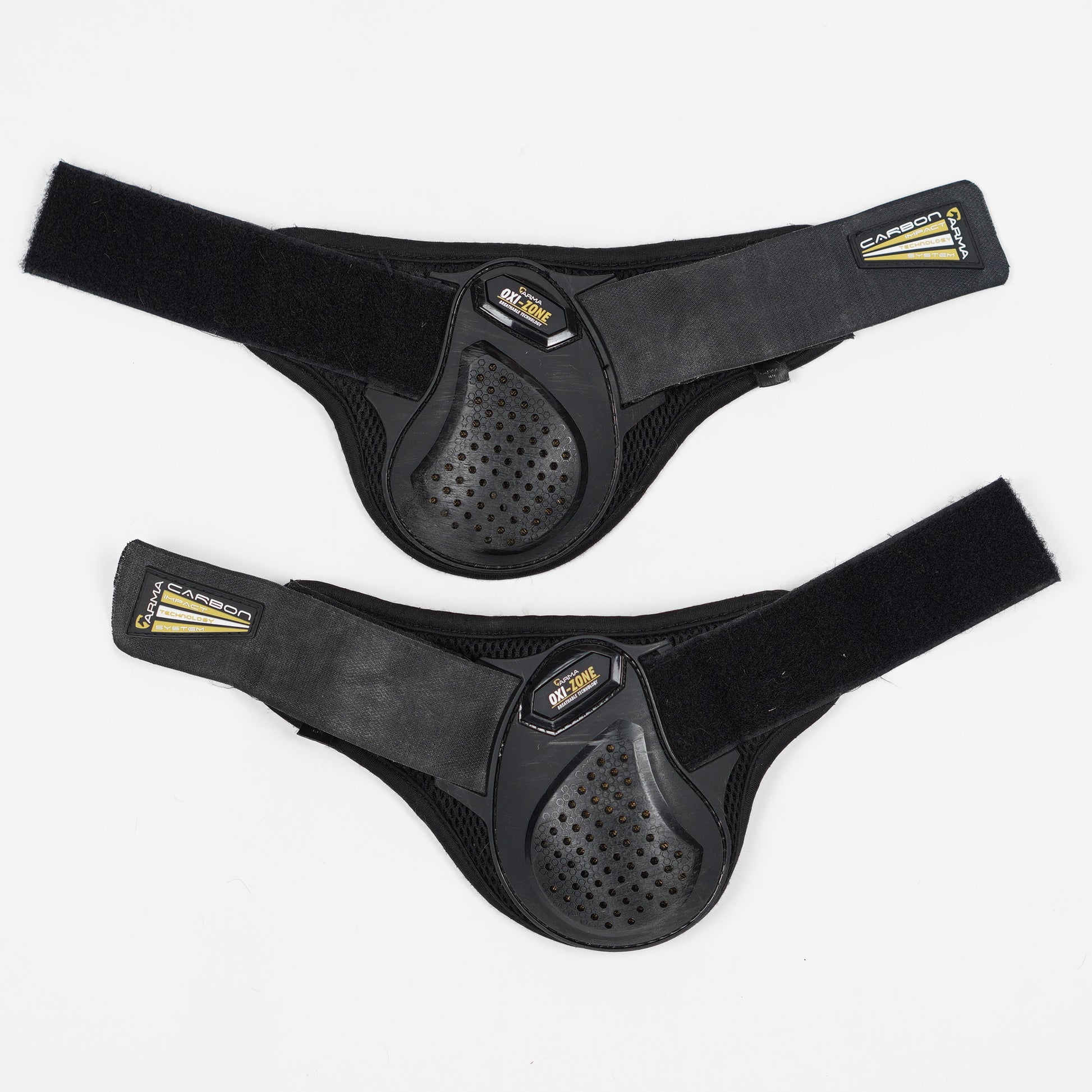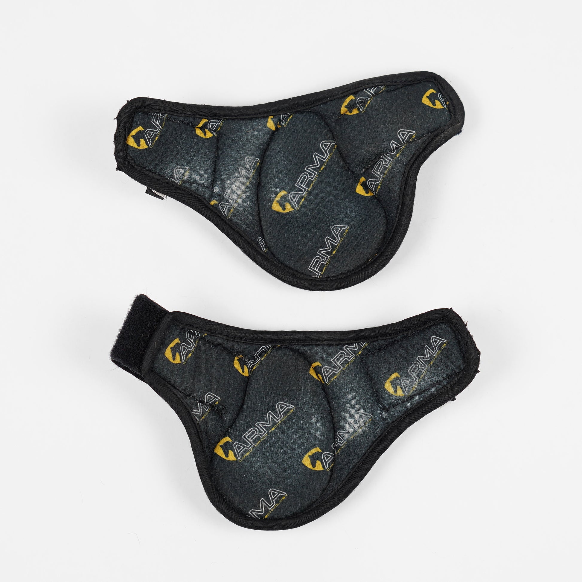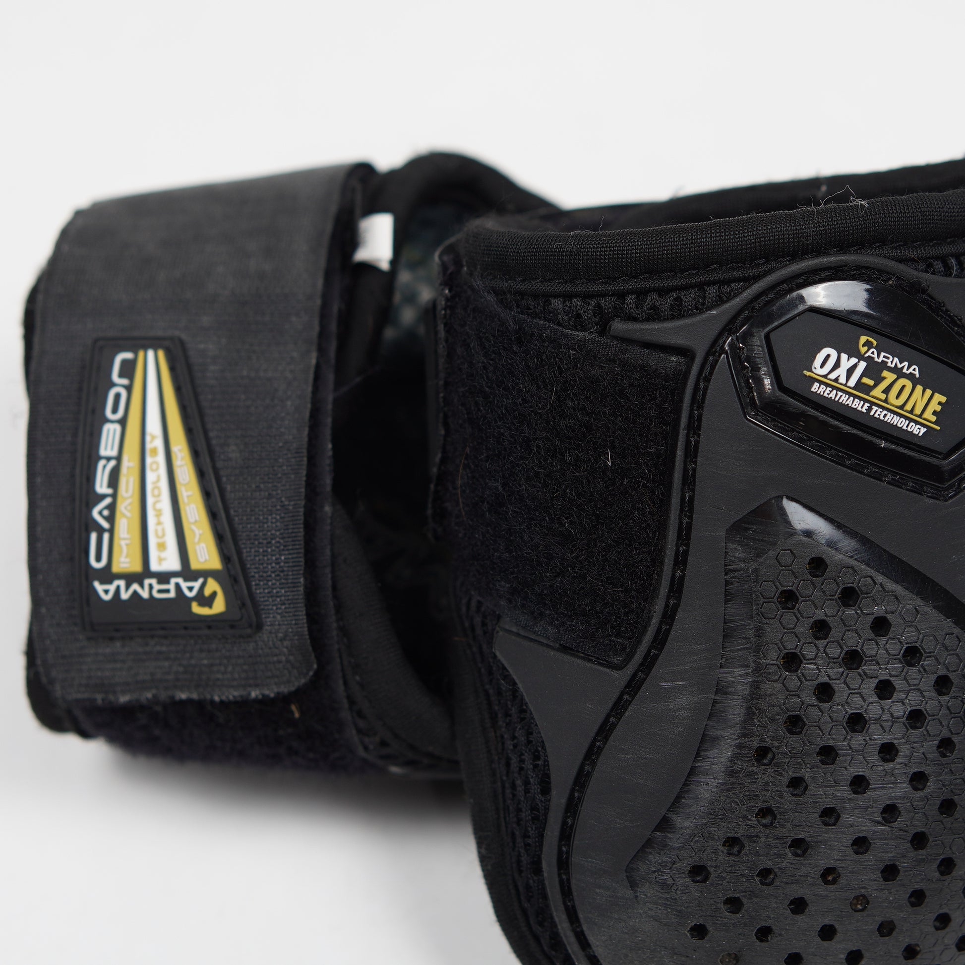 Svarta bakskydd från Arma, modell Carbon Impact Oxi-Zone. Skydden är tydligt använda och insidan är lite nött, se bilder.