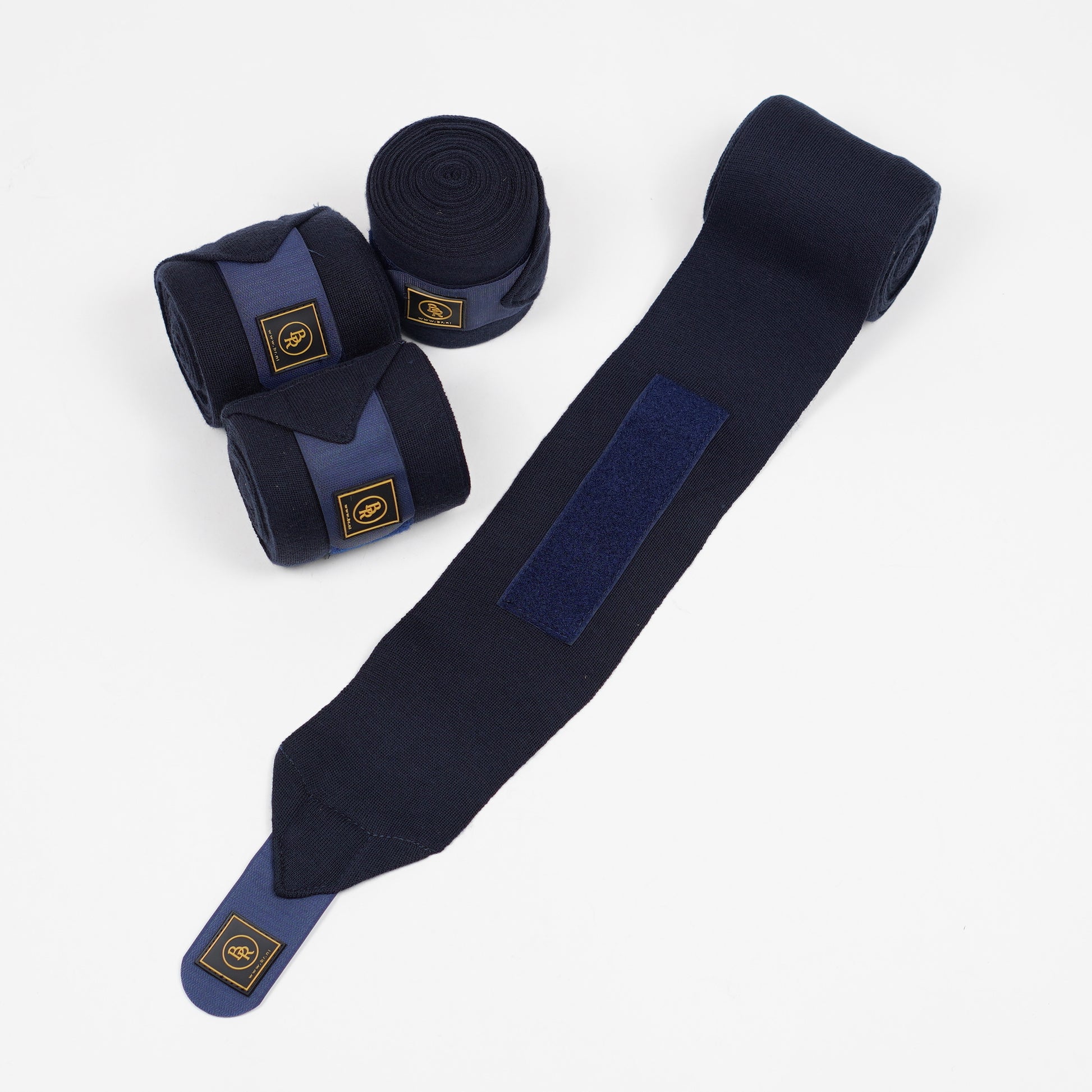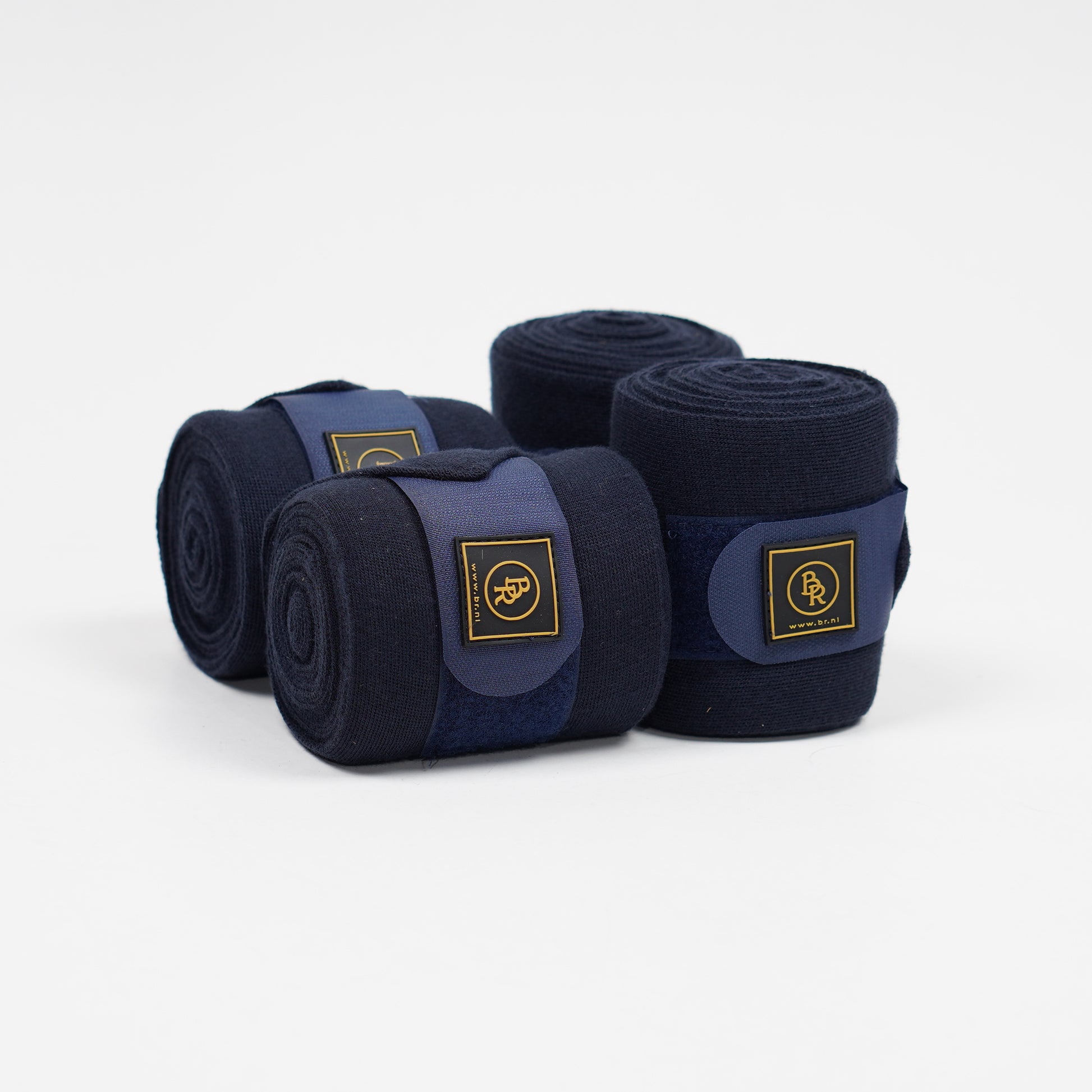 Elastiska benlindor i blå akryl från BR. Benlindorna är i ett tillsynes oanvänt skick.