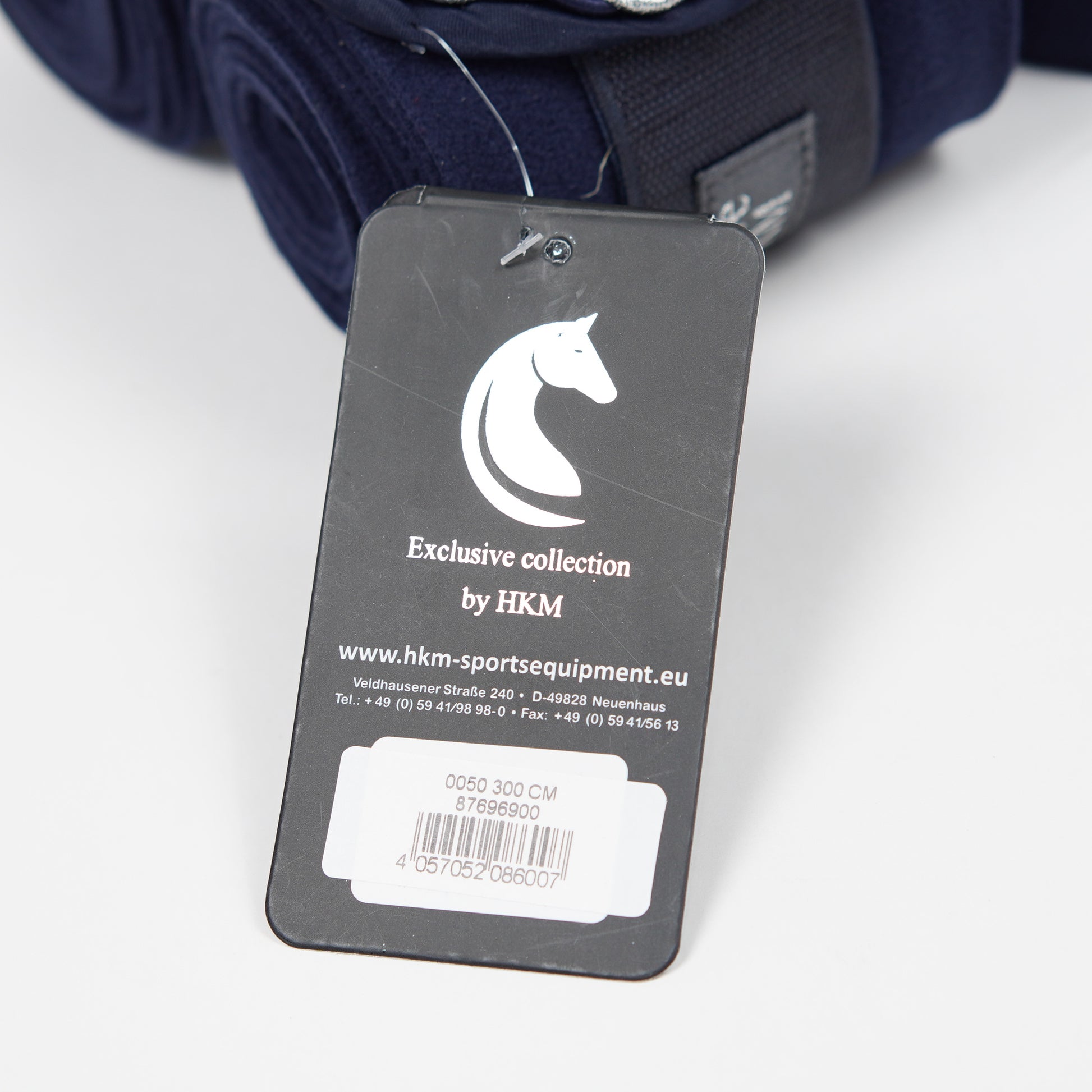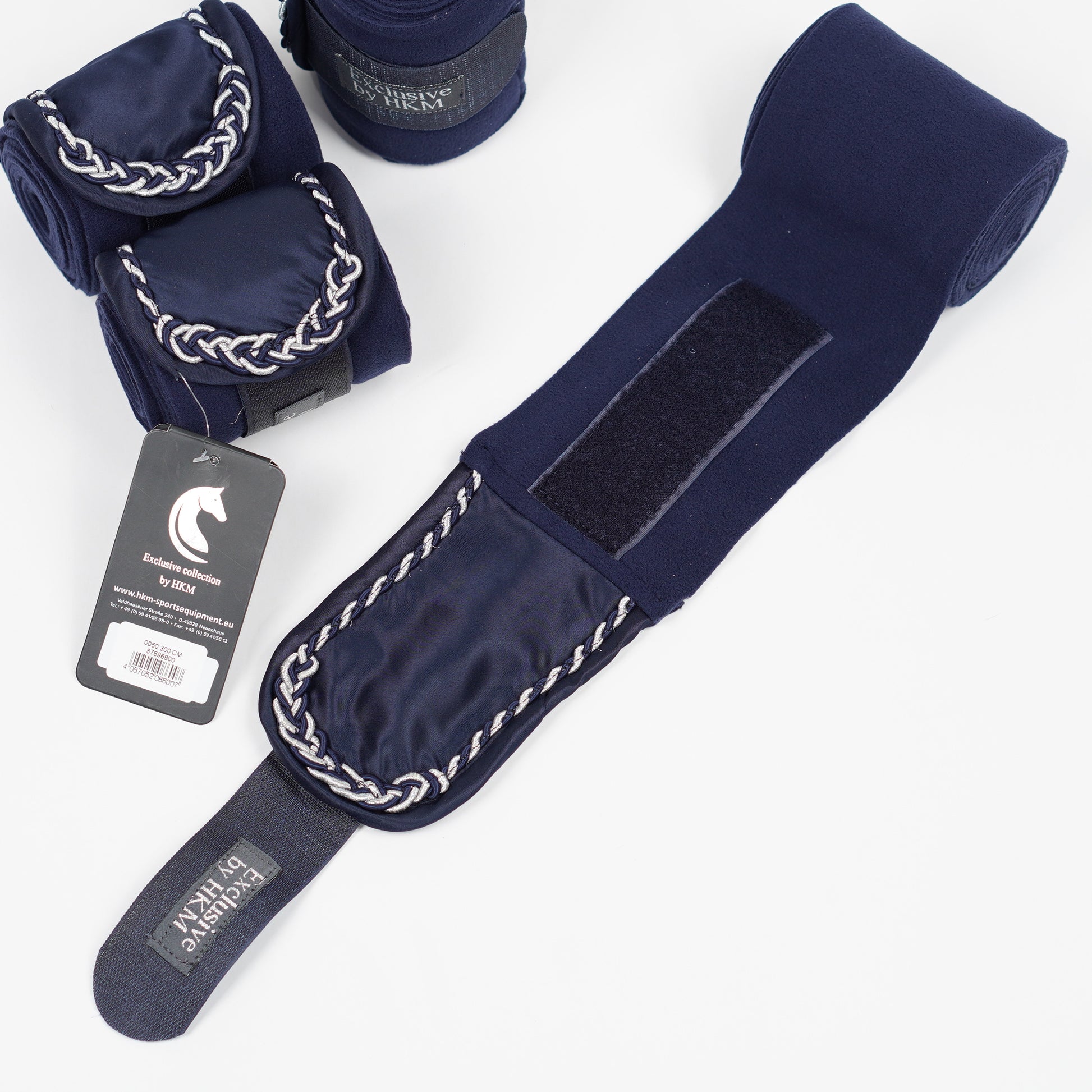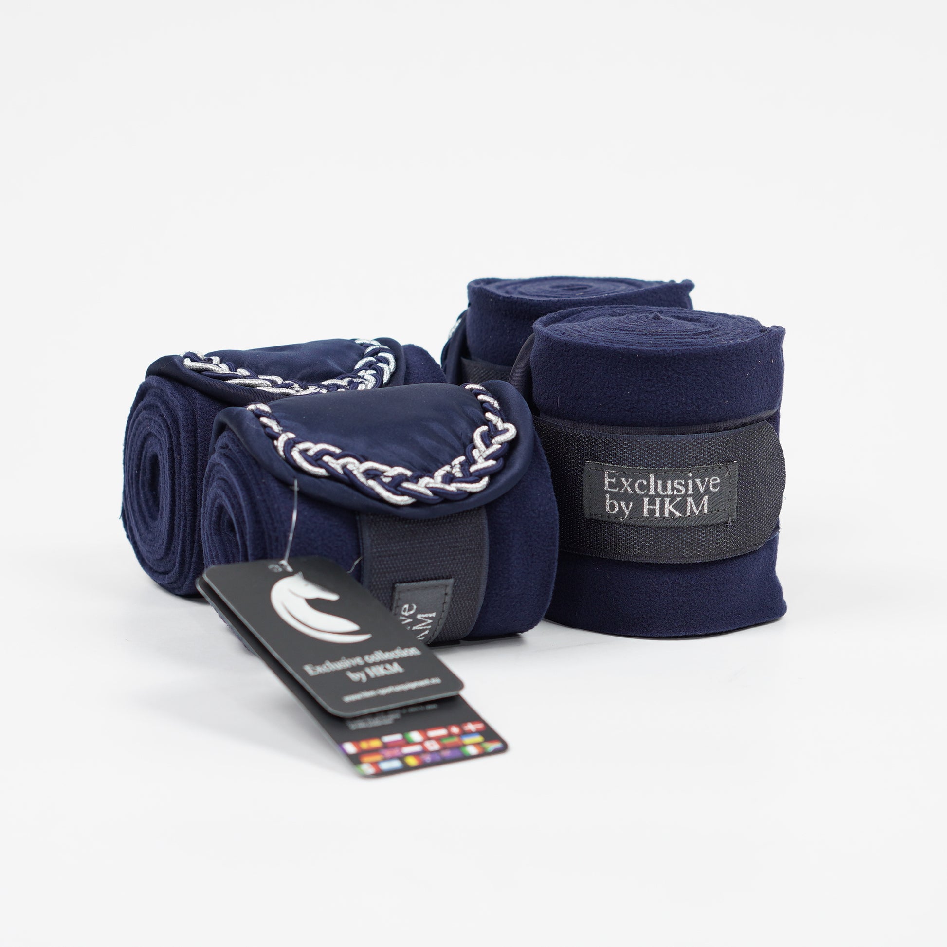 Oanvända benlindor i blå fleece och silke från HKM Exclusive.