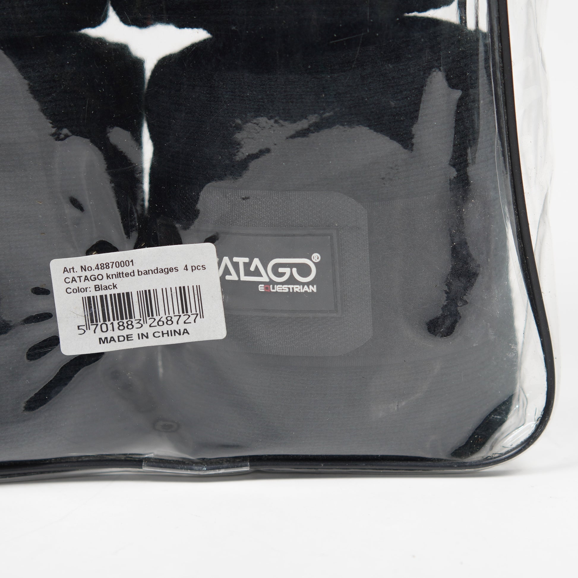 Svarta stickade benlindor med kardborre i ett tillsynes oanvänt skick från Catago.