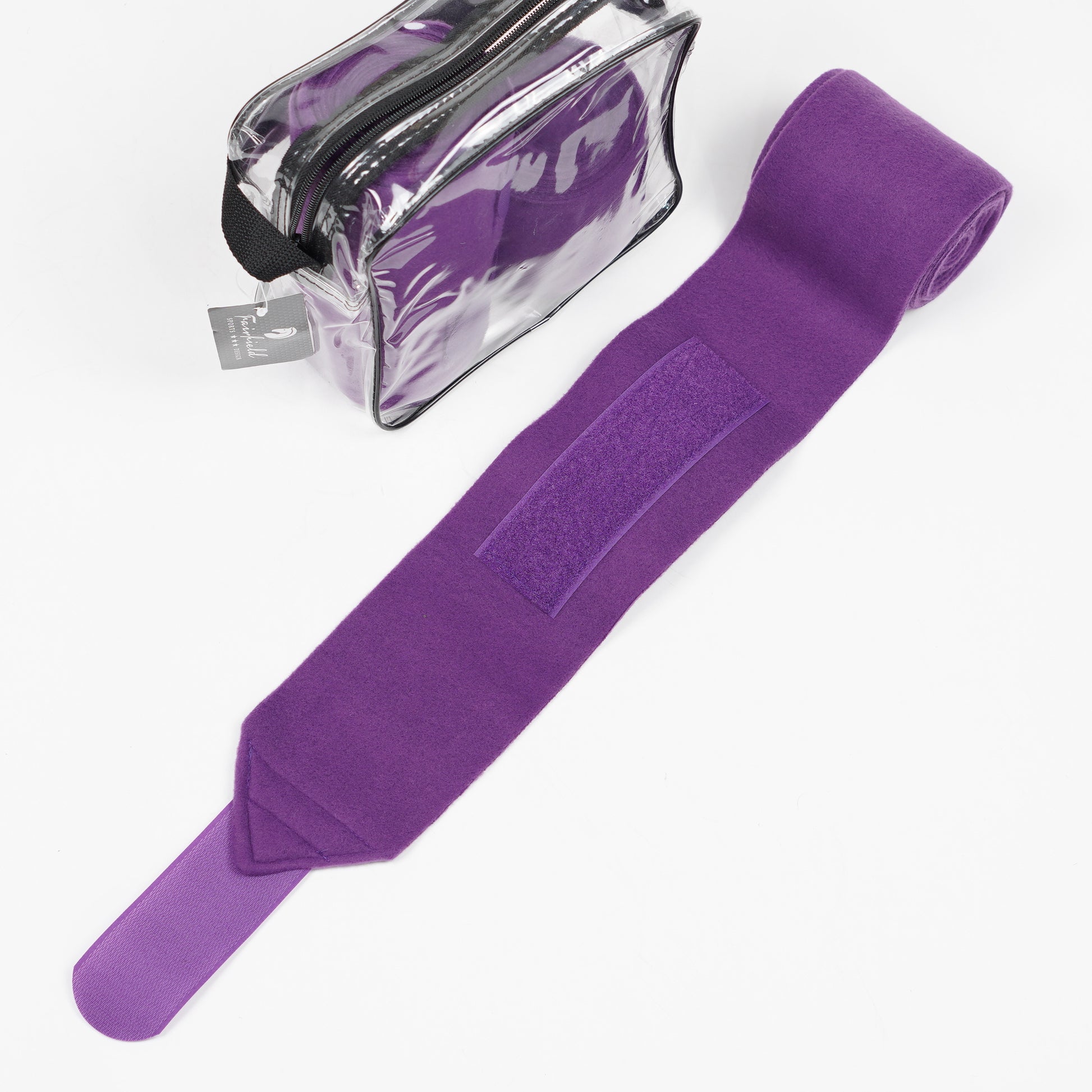 Lila benlindor i fleece med kardborre från Fairfield i ett oanvänt skick med originalförpackning.