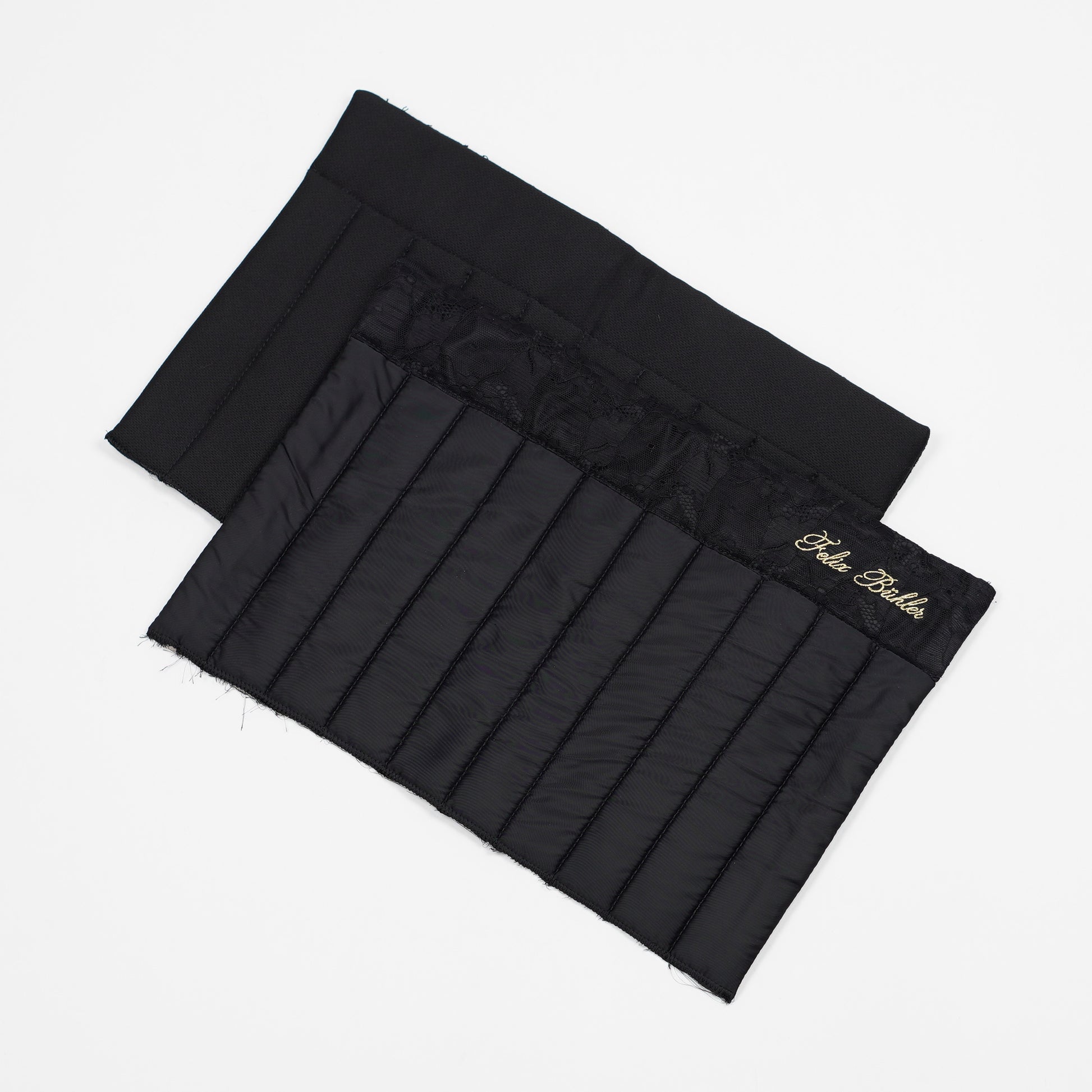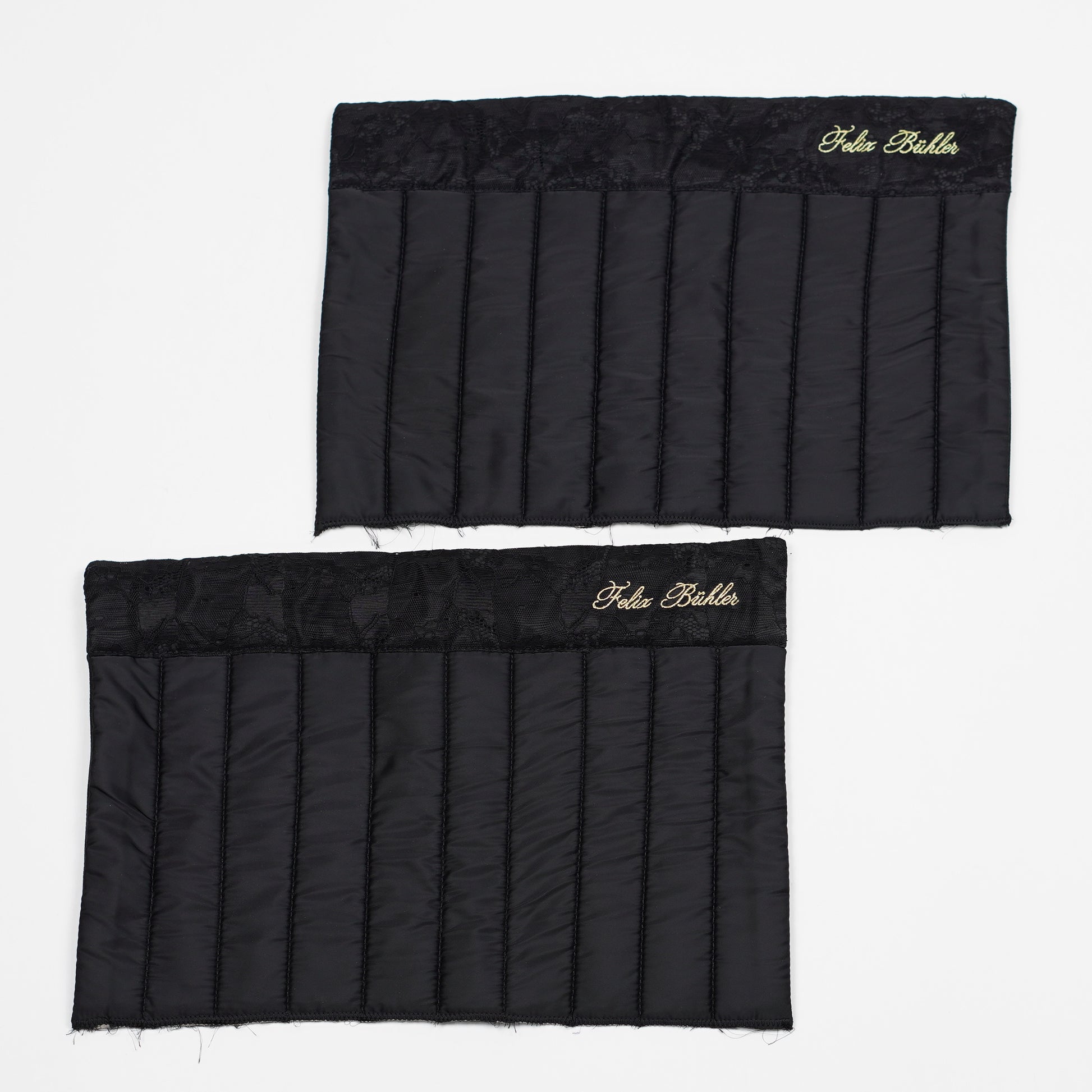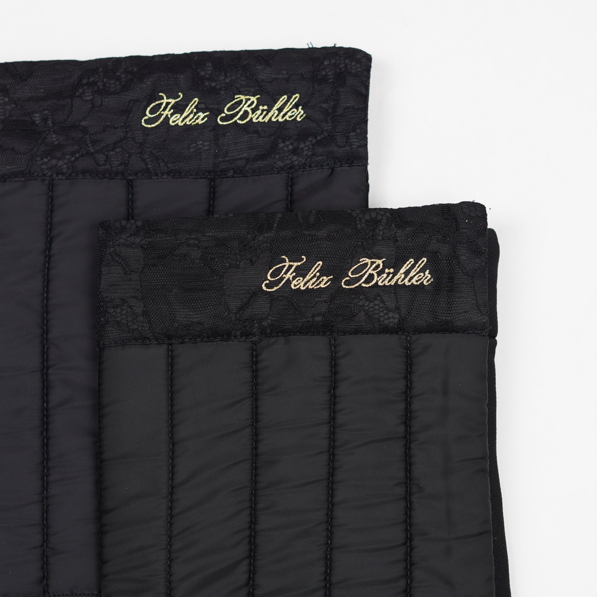 Svarta benpaddar med spets i kanten högst upp från Felix Bühler.