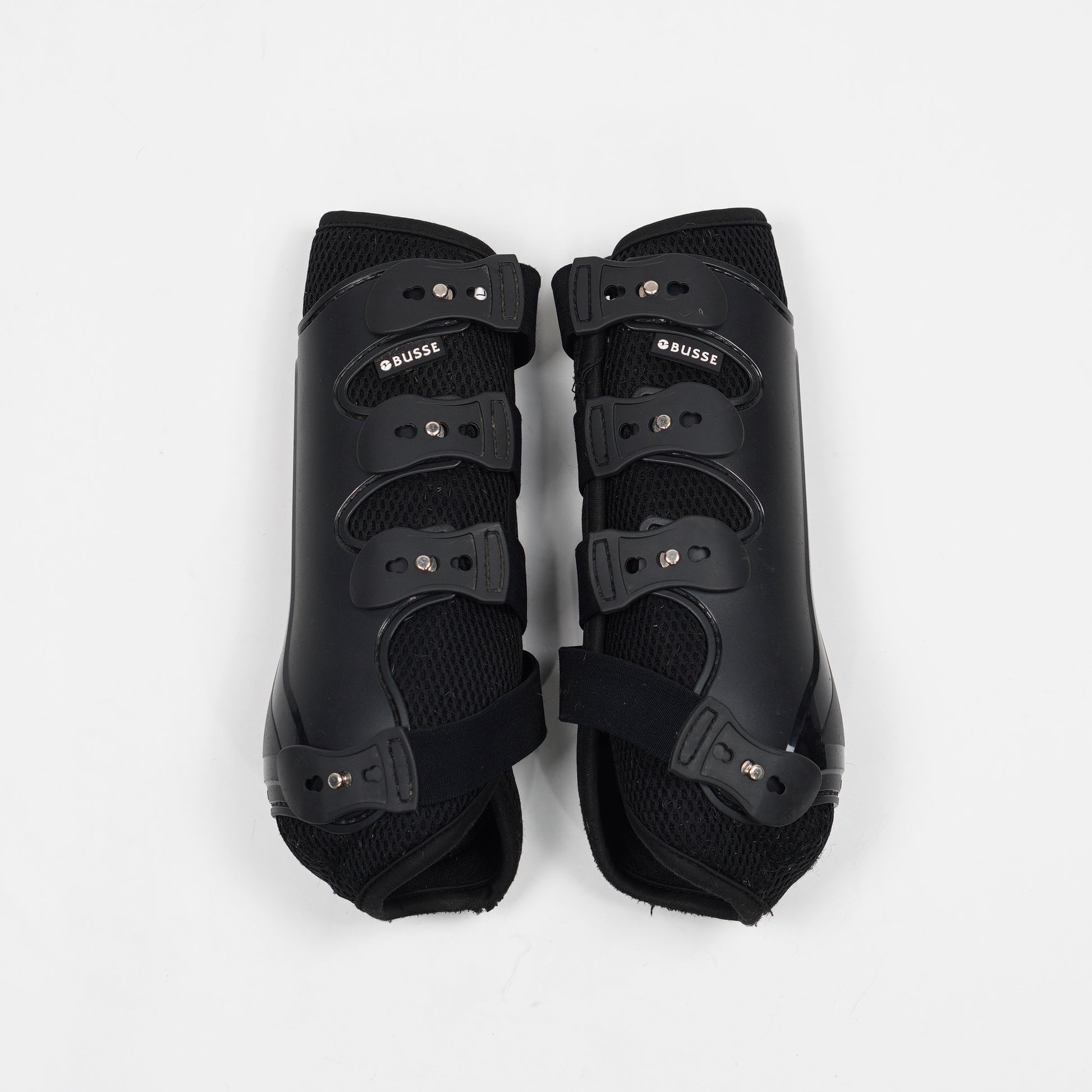 Svarta damasker i meshmaterial med en hård kåpa i plast med elastiska inspänningar från Busse.