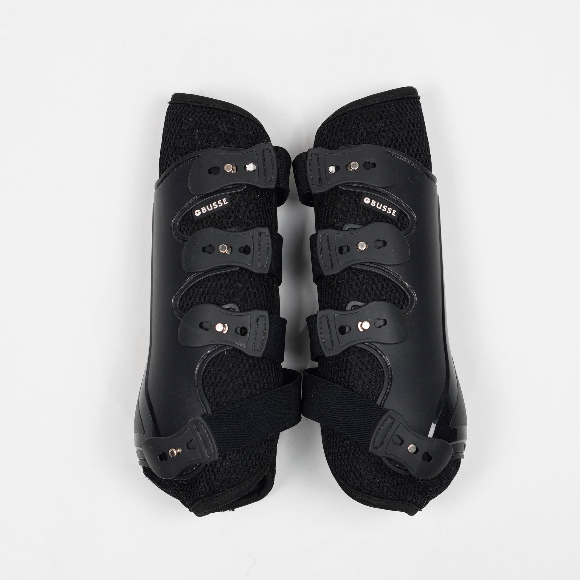 Svarta damasker i meshmaterial med en hård kåpa i plast med elastiska inspänningar från Busse.