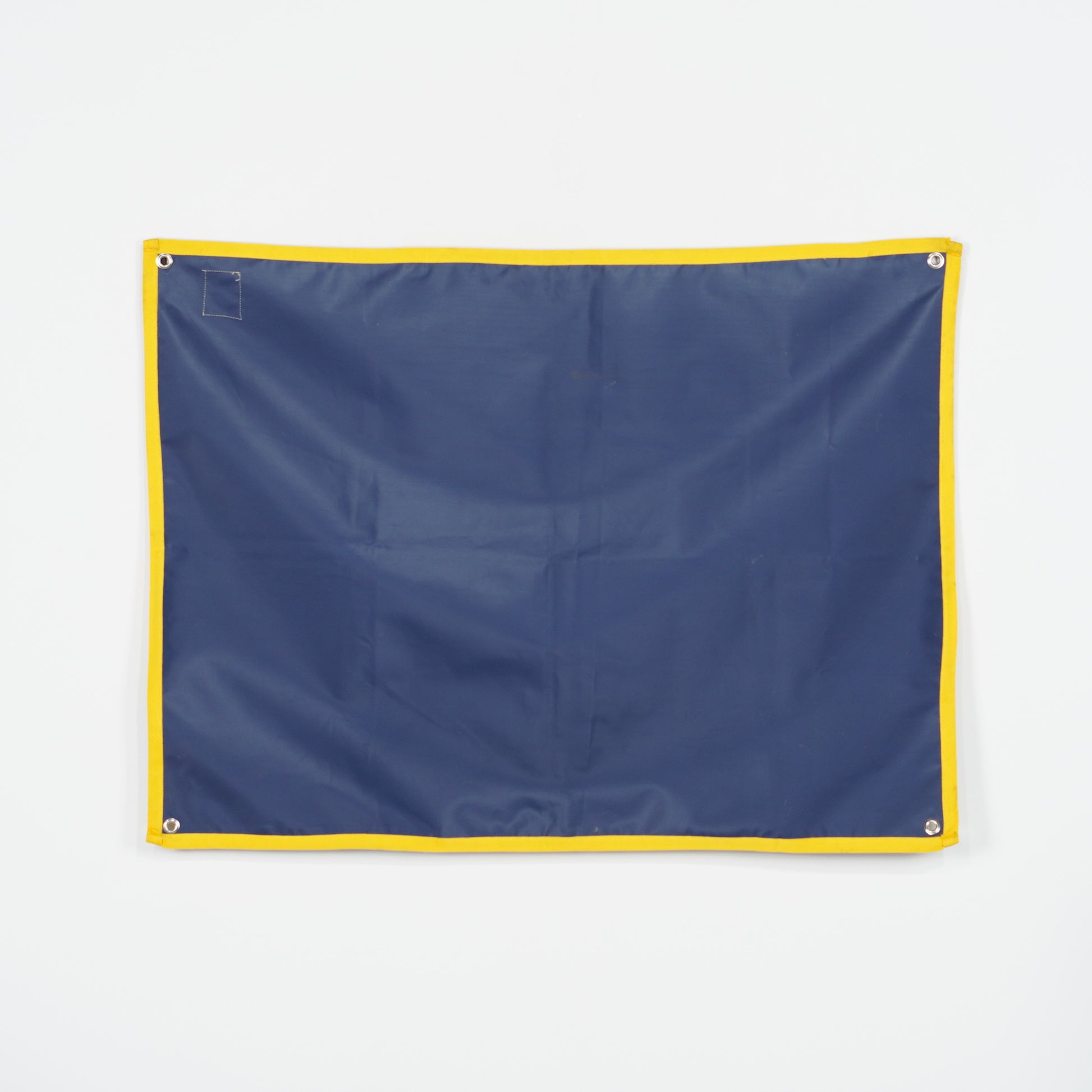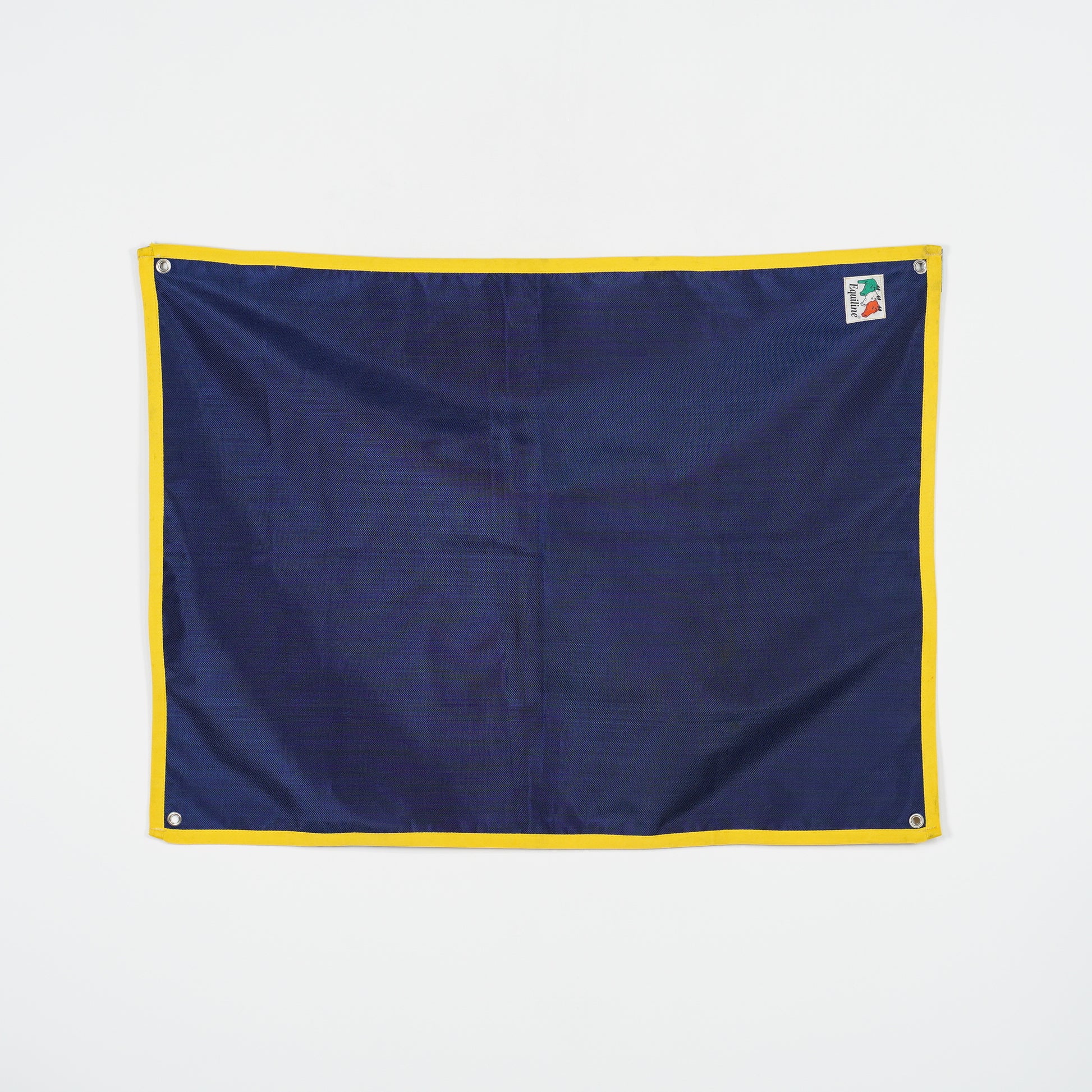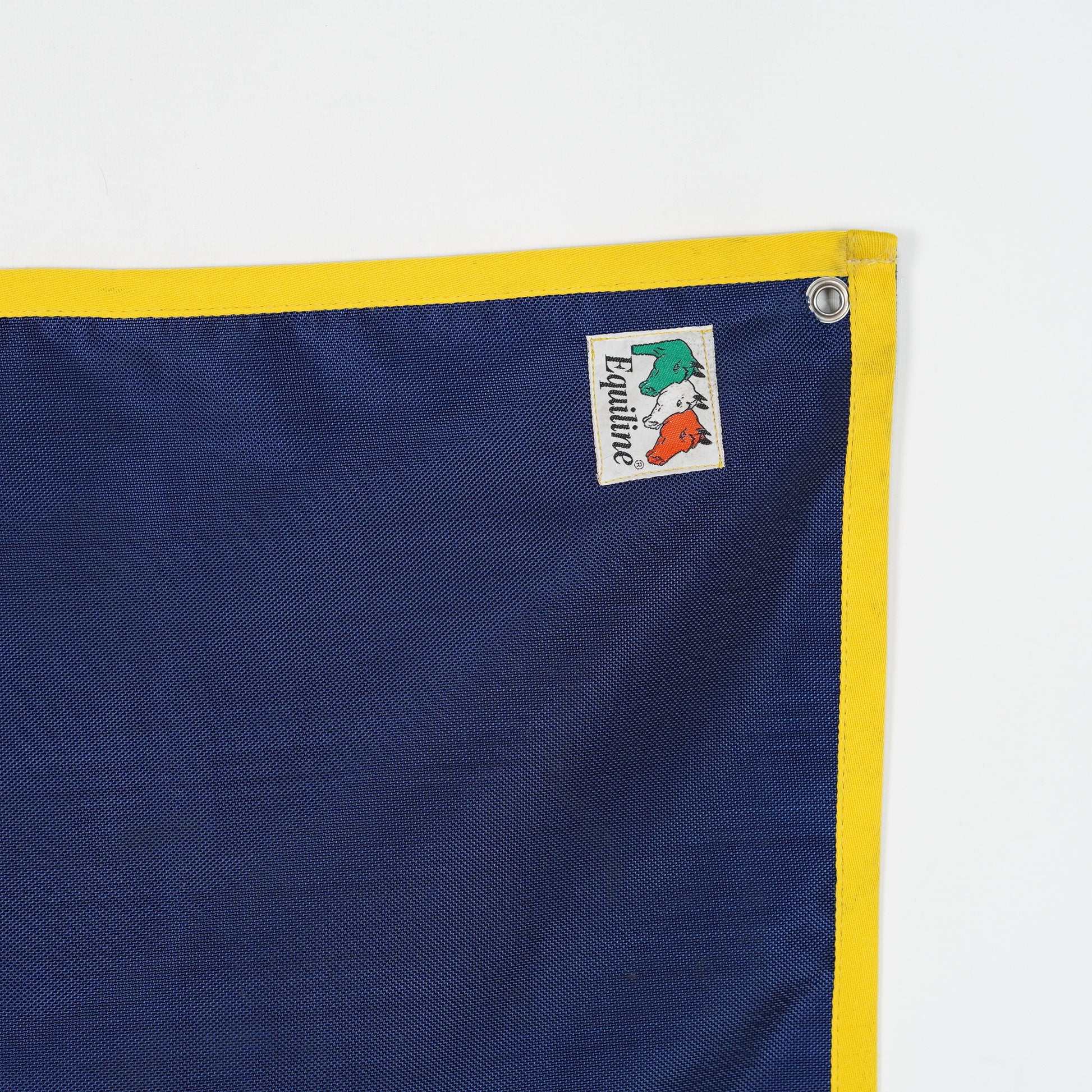 Blått boxstopp med gul kant samt öljetter i varje hörn för uppfästning från Equiline.