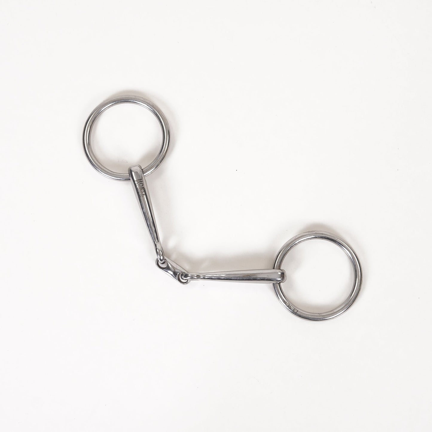Smalt 3-delat bridongbett från Horse Power med lösa ringar. Bettet är i ett bra skick, inte mycket använt. Mäter nästan 14 cm mellan bettringarna, men det står 13,5 cm.
