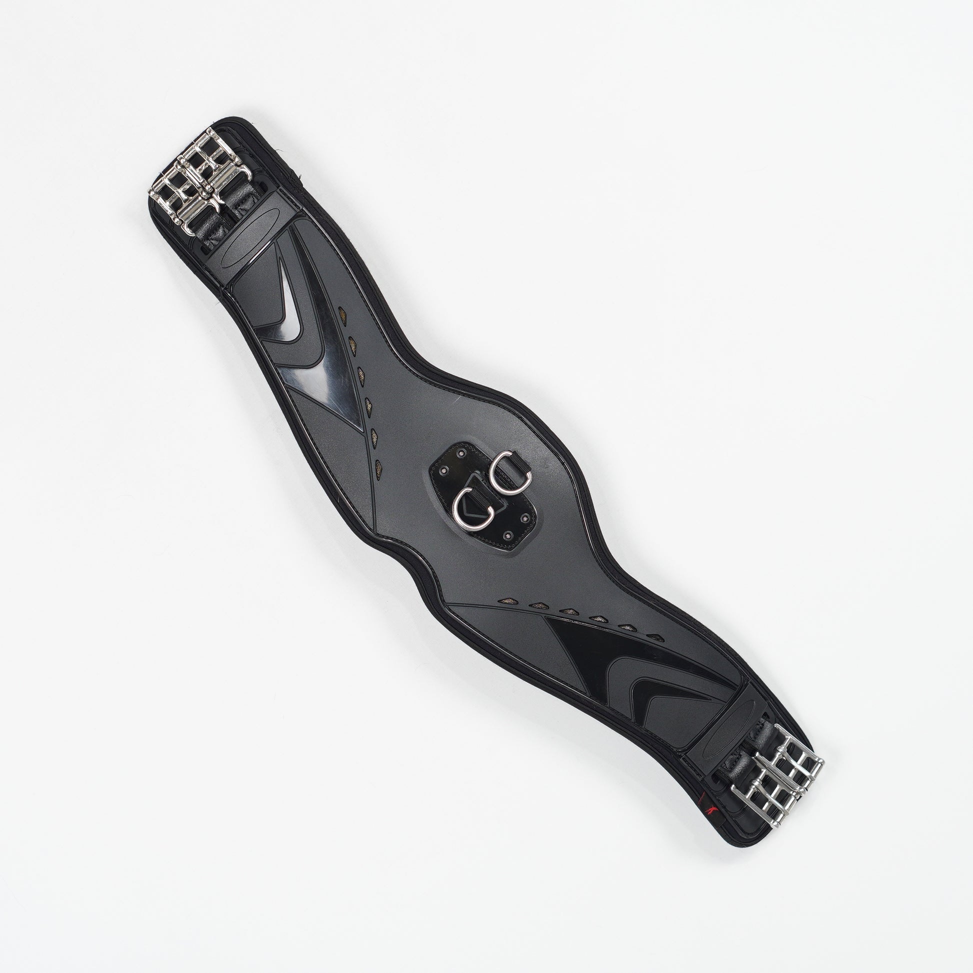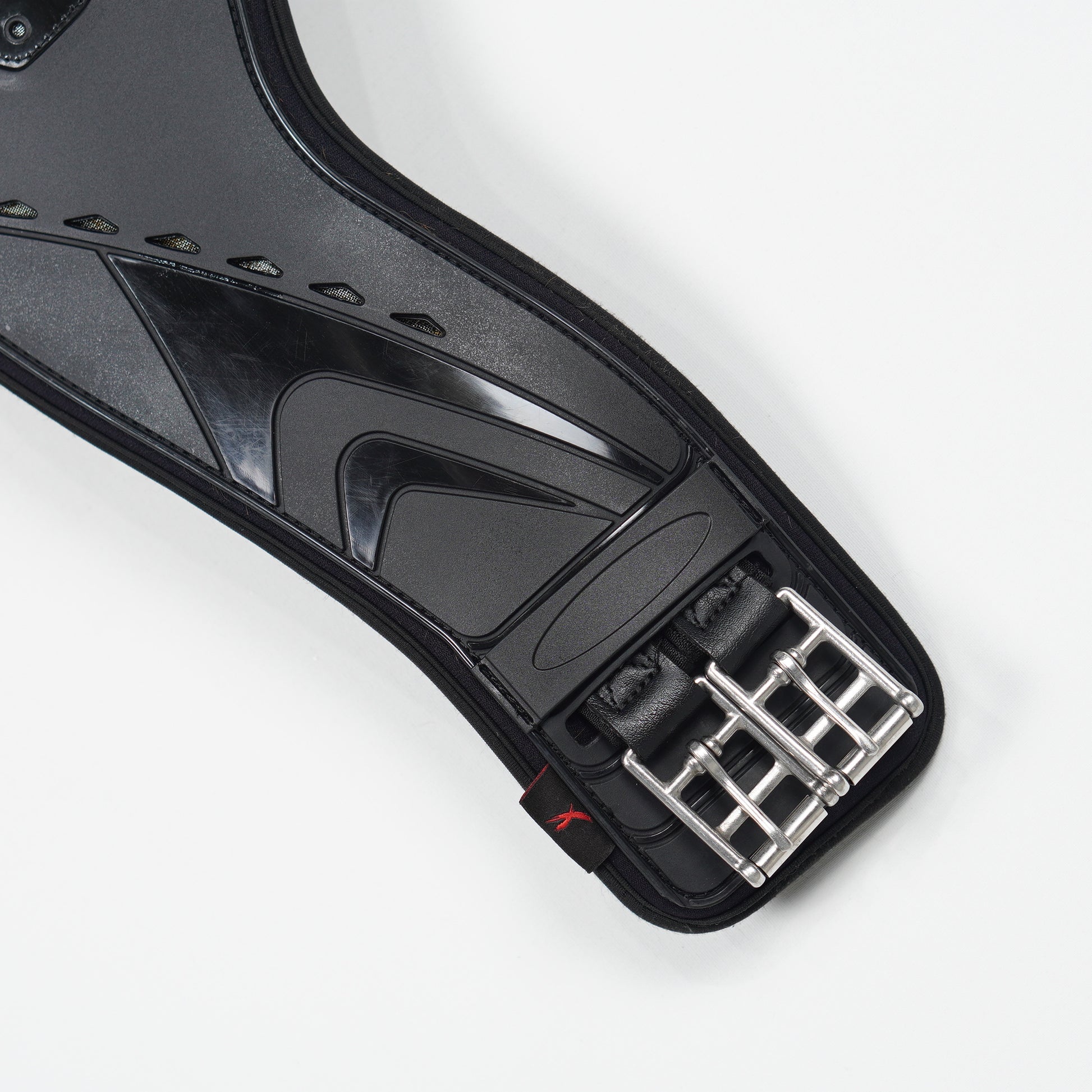 Dressyrgjord i svart med gelfyllning, hård utsida och elastiska inspänningar från EquiXpert.