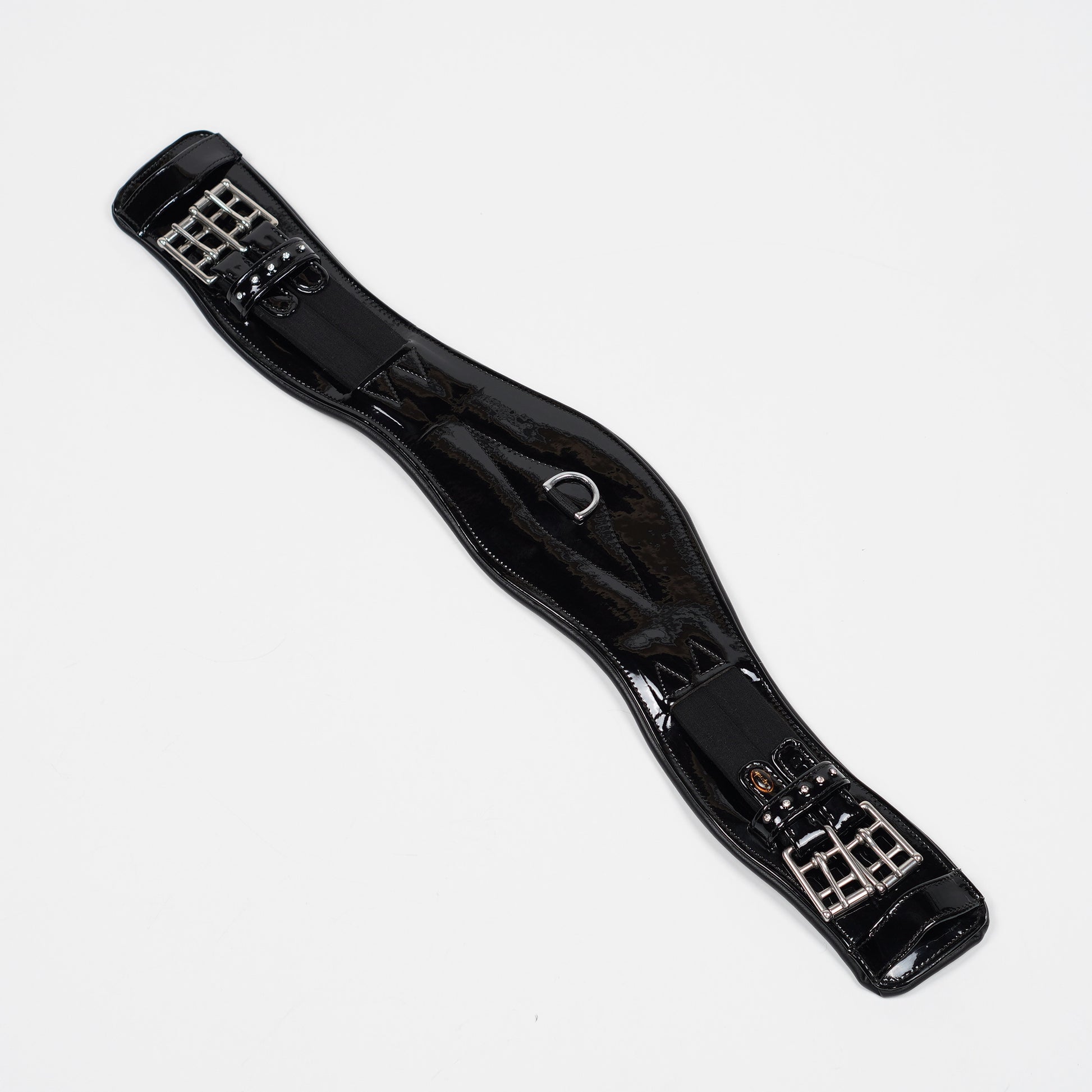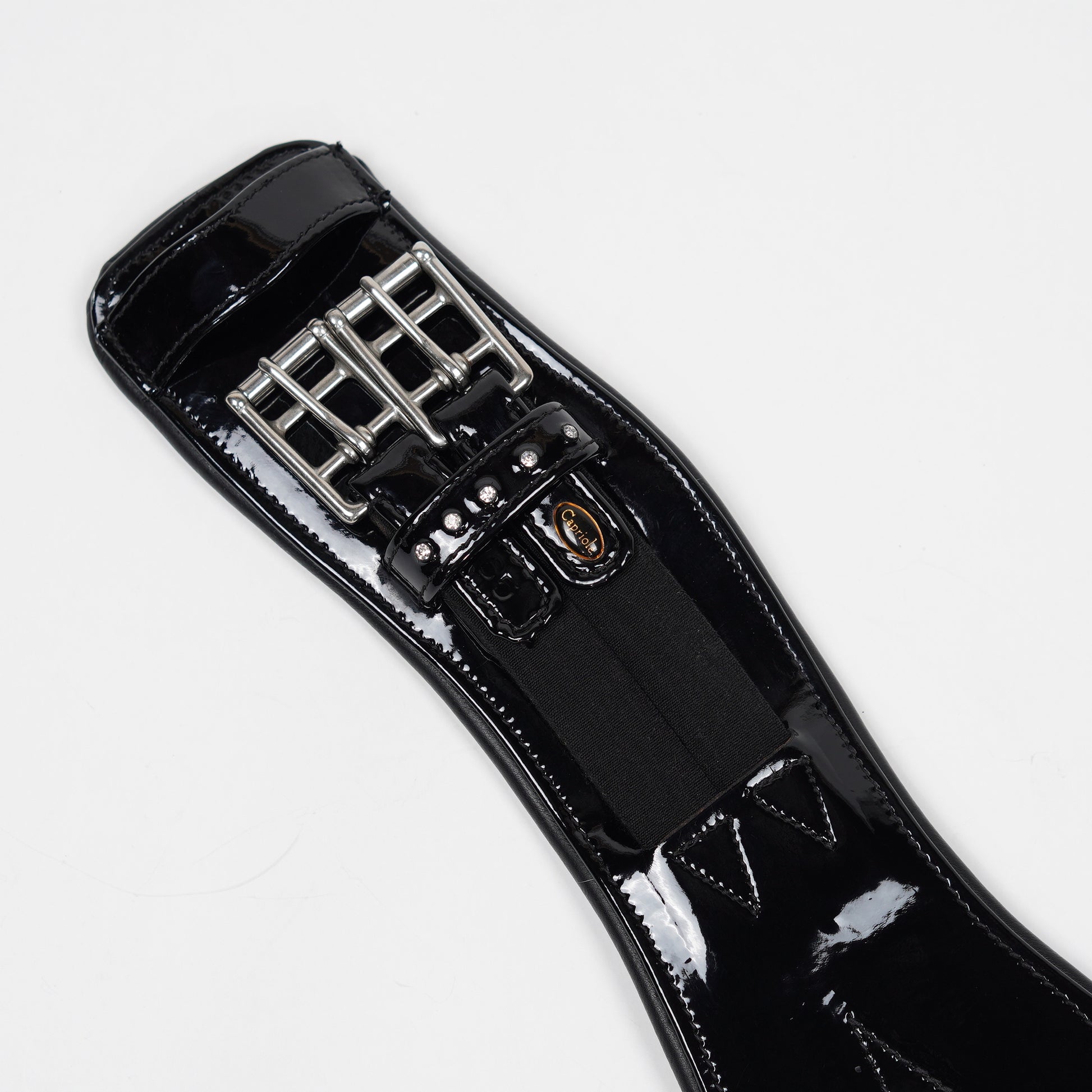 Snygg dressyrgjord med lackad utsida och utsmyckad med bling från Capriole.