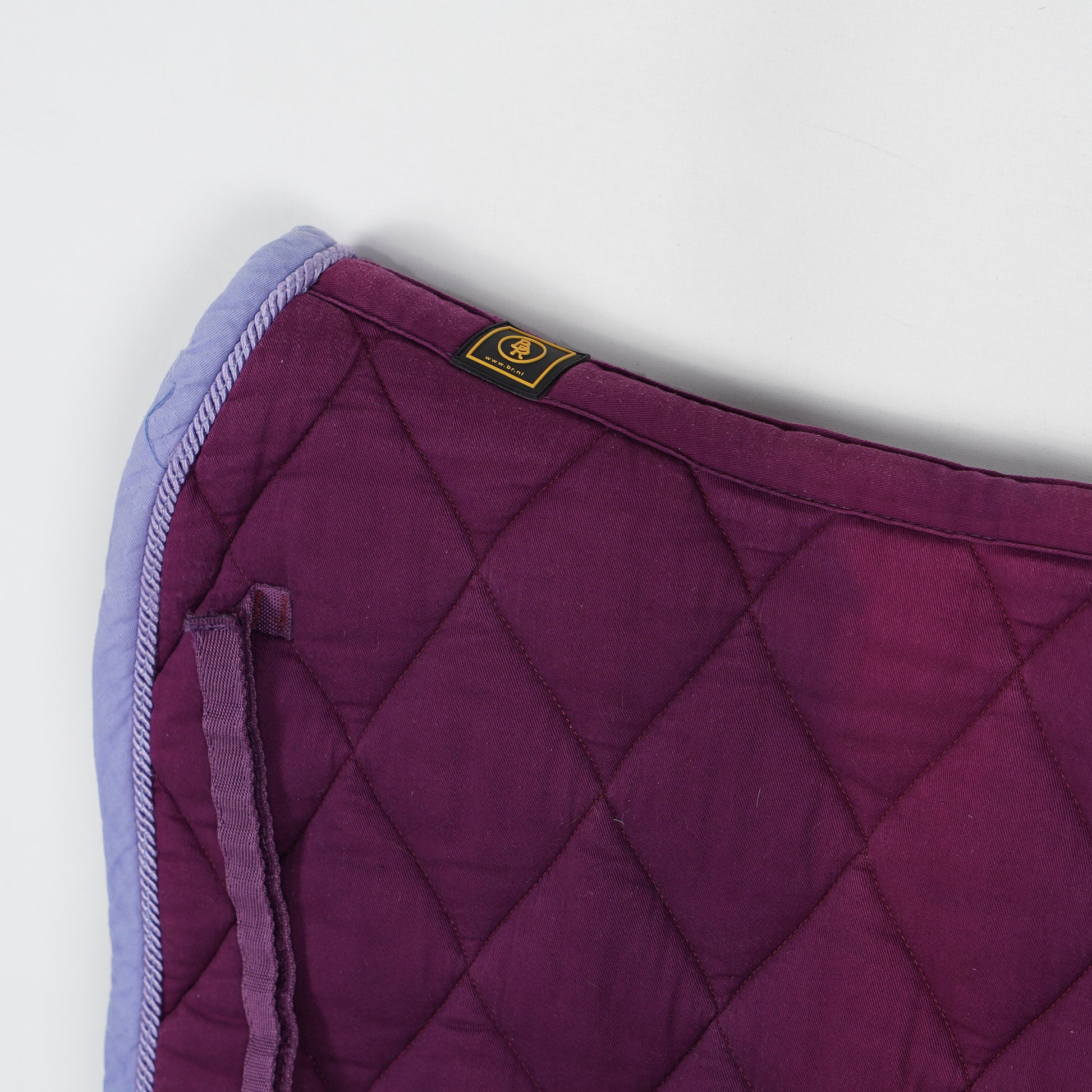 Lila dressyrschabrak med blå kant och passpoal från BR. Schabraket är lätt vadderat och mjukt.