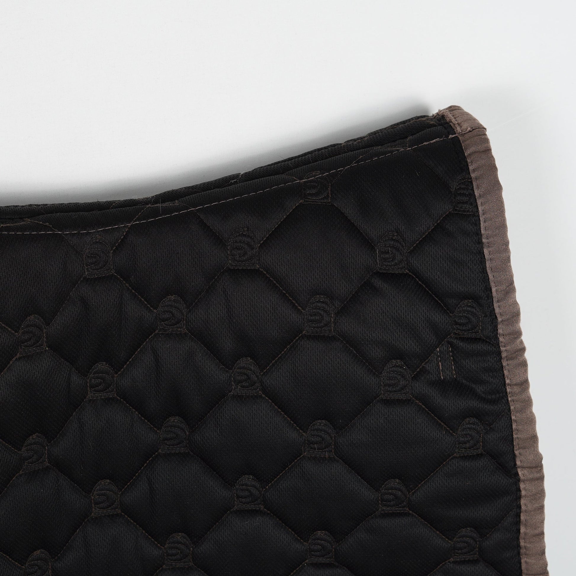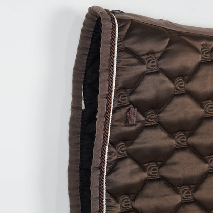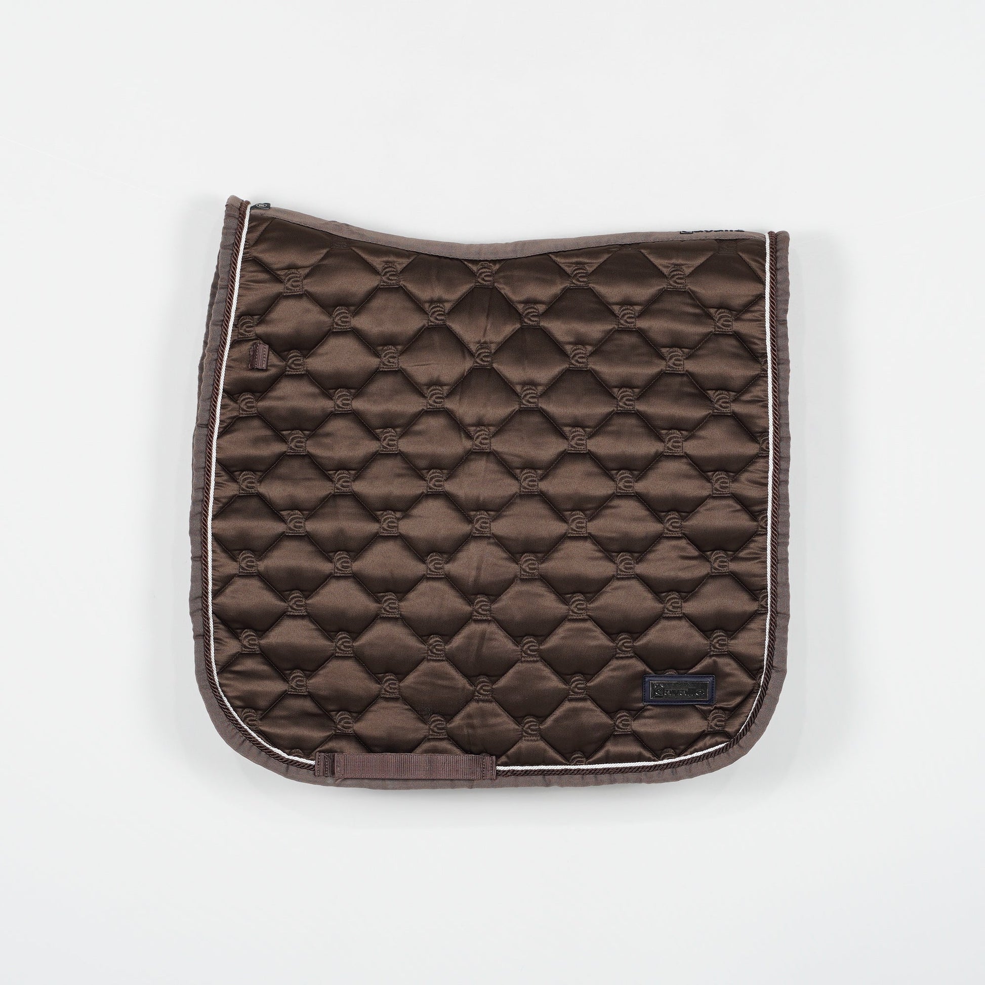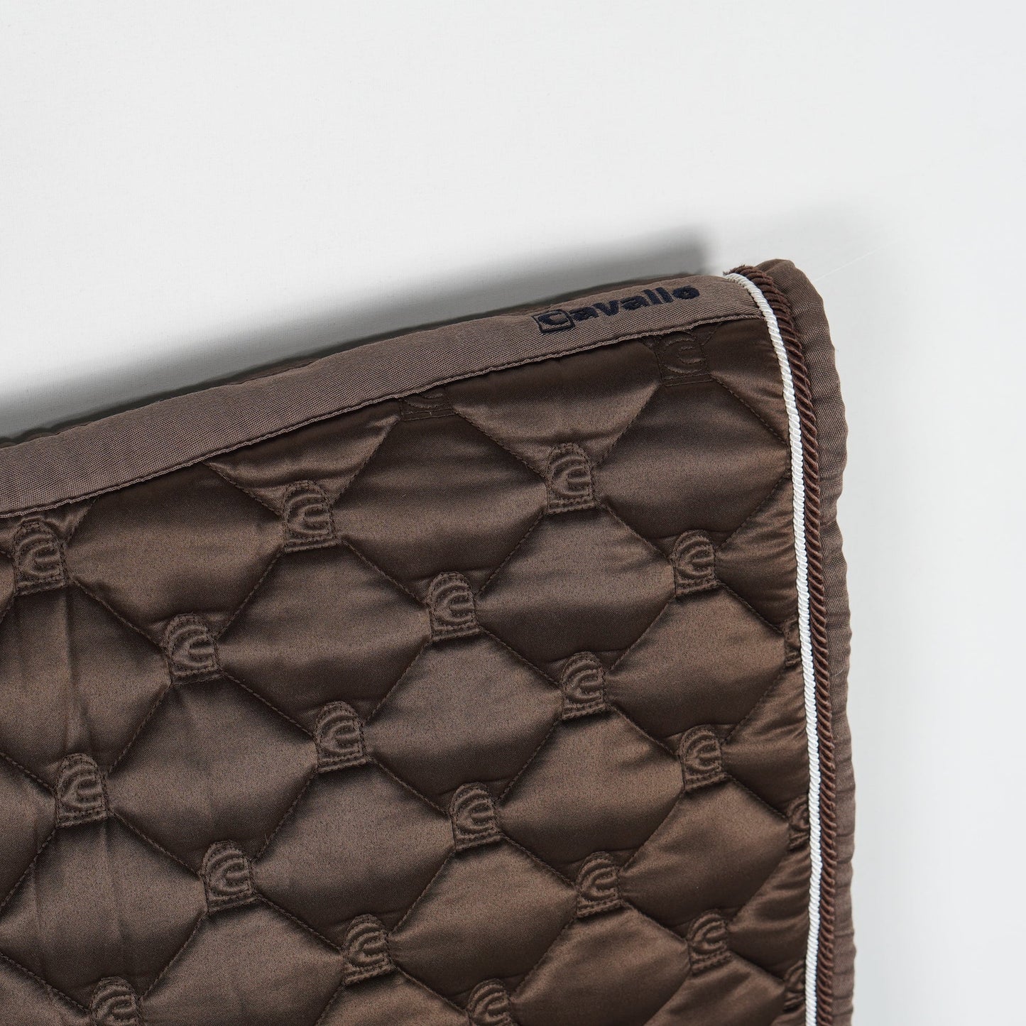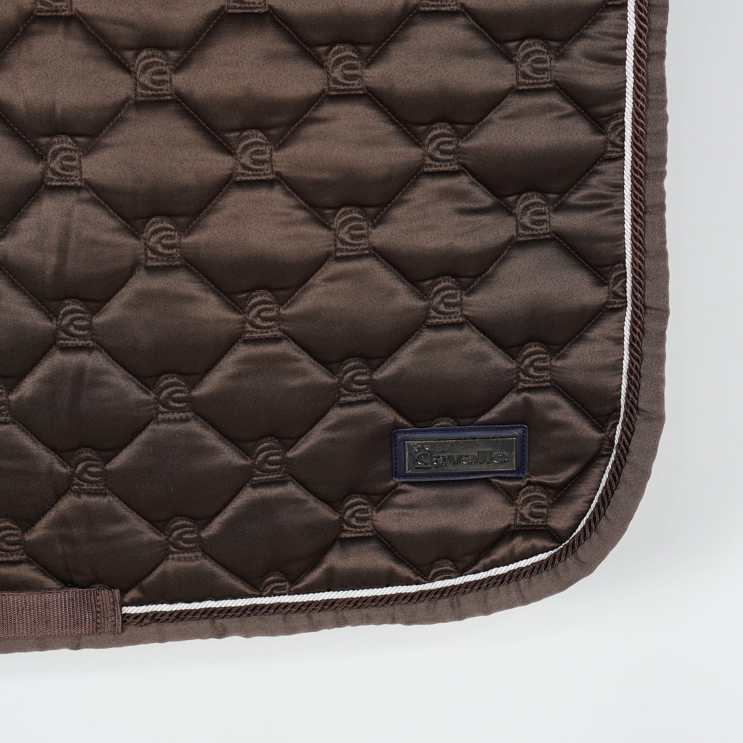 Brunt dressyrschabrak med brun & vit passpoal från Cavallo.