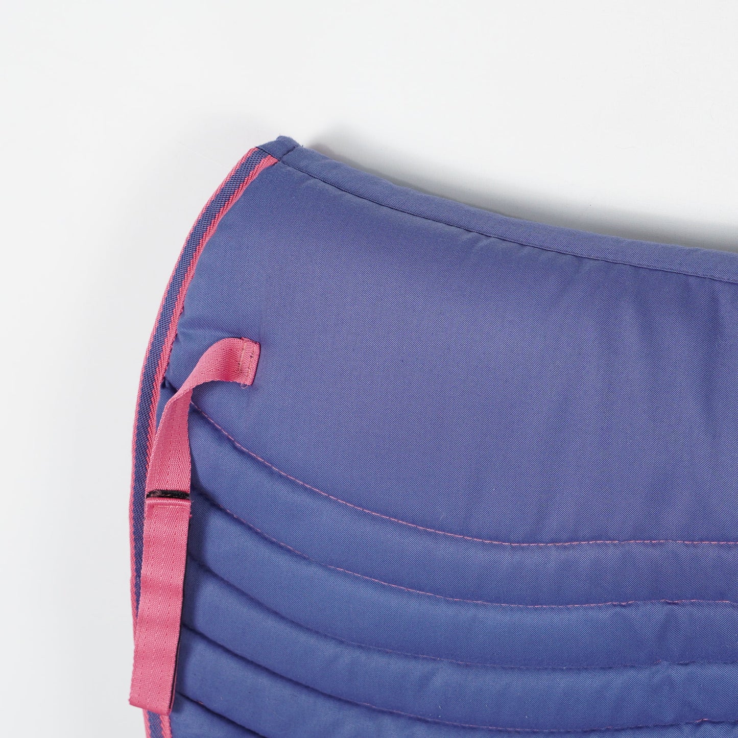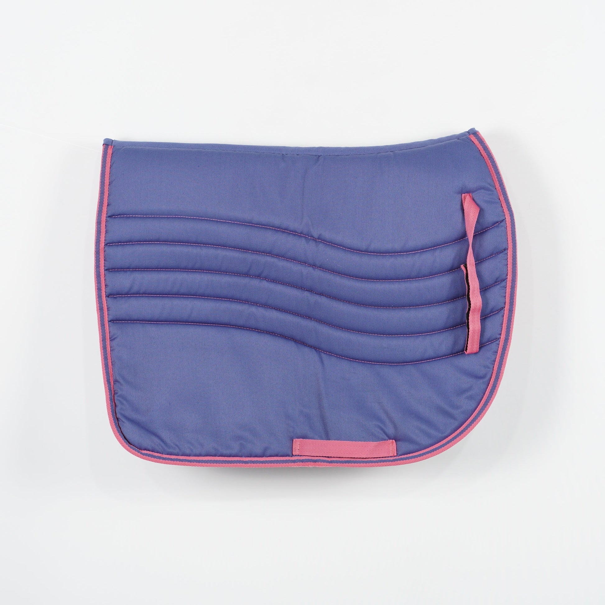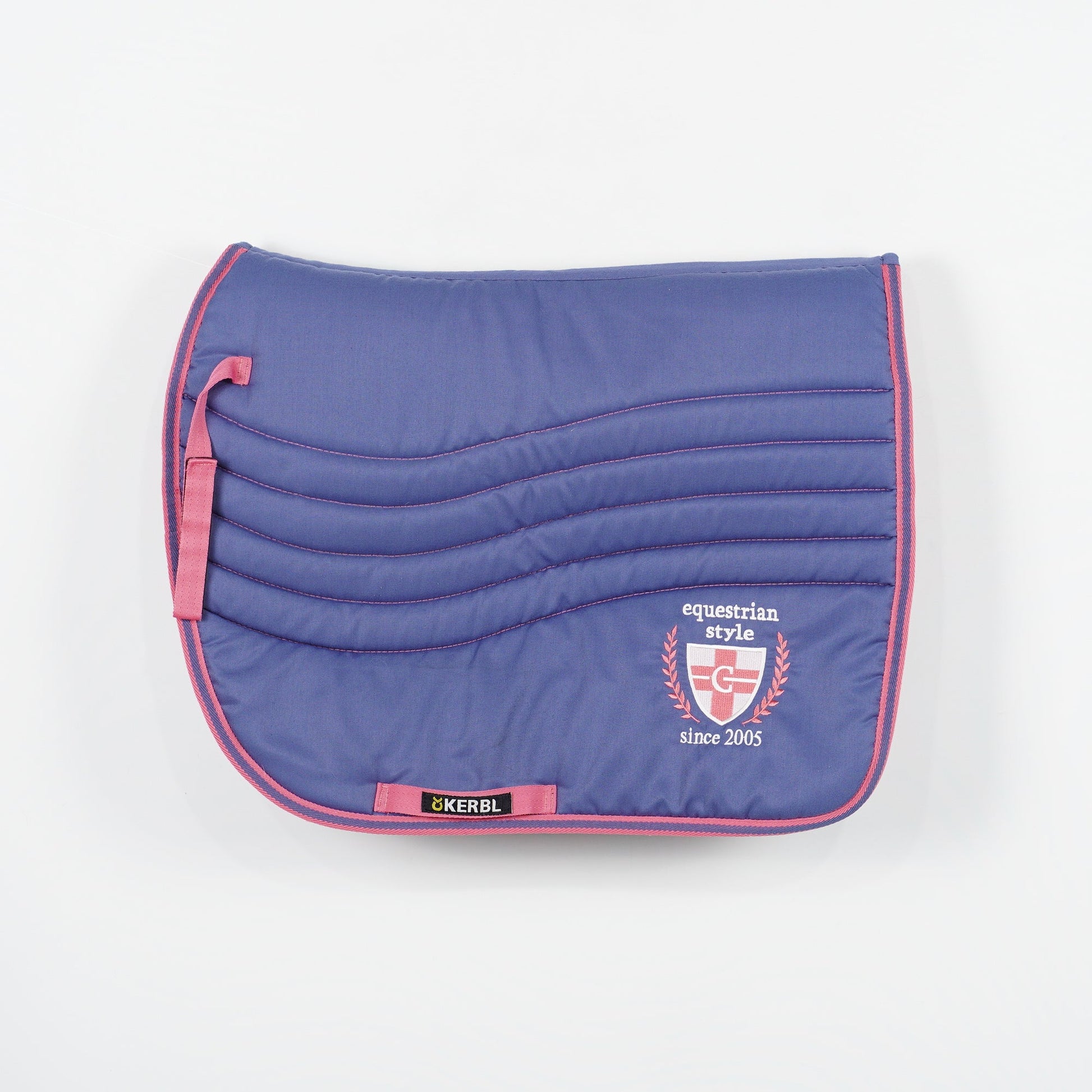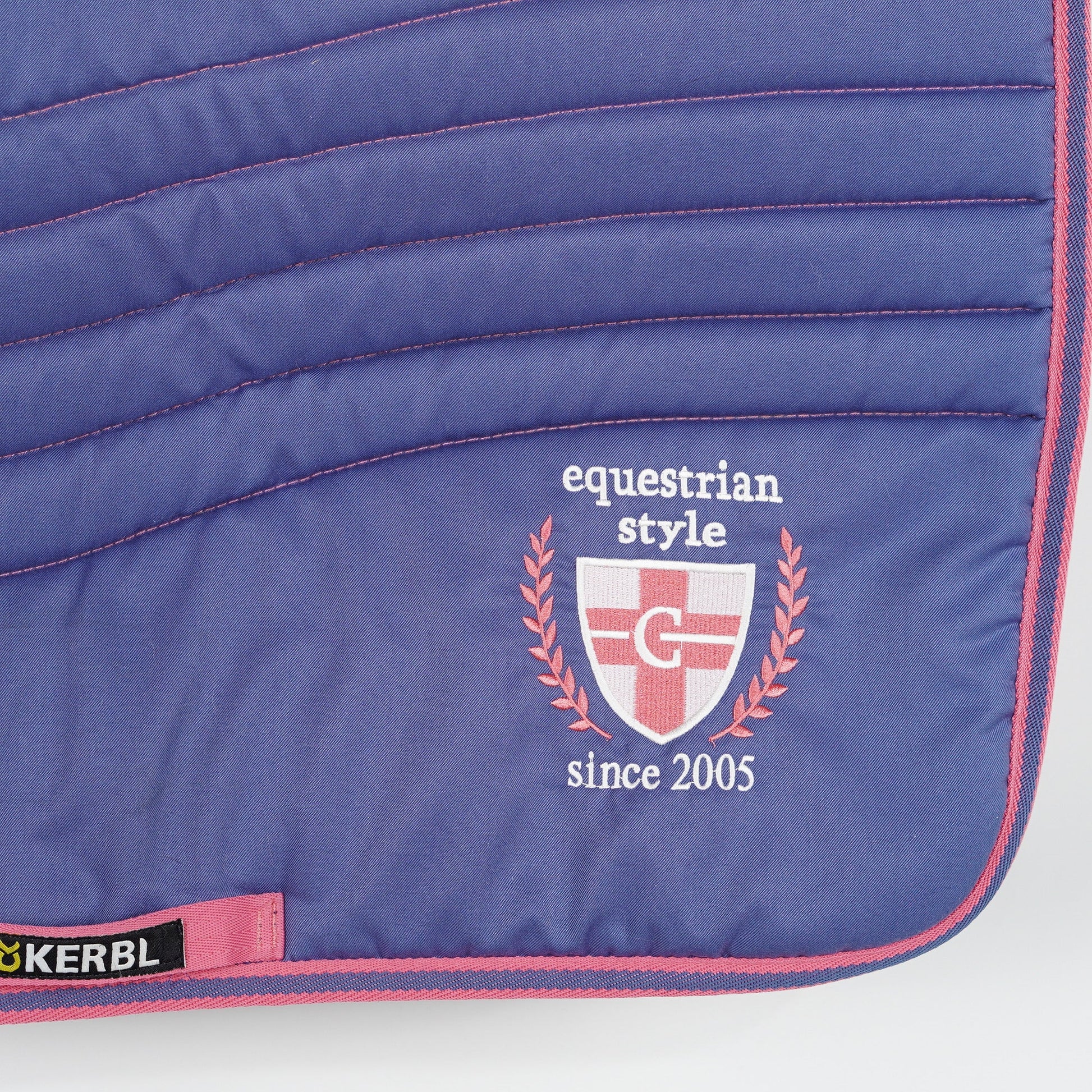 Ljusblått / lila dressyrschabrak med rosa passpoal från Kerbl. Schabraket är i ett tydligt använt men bra skick.