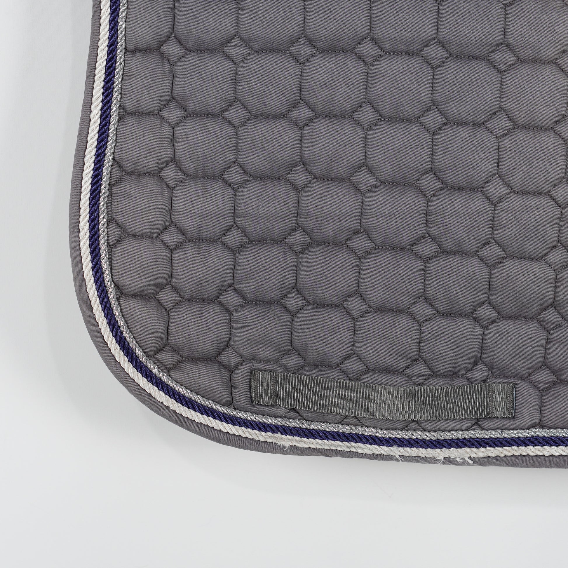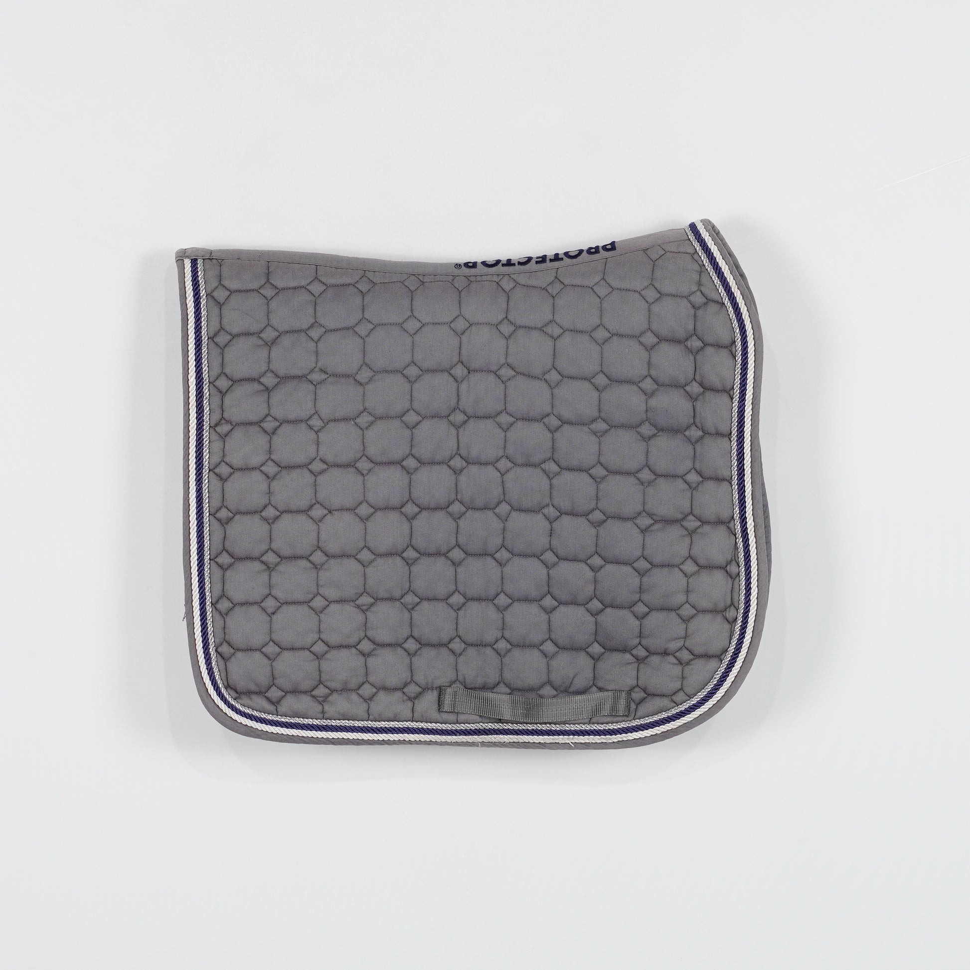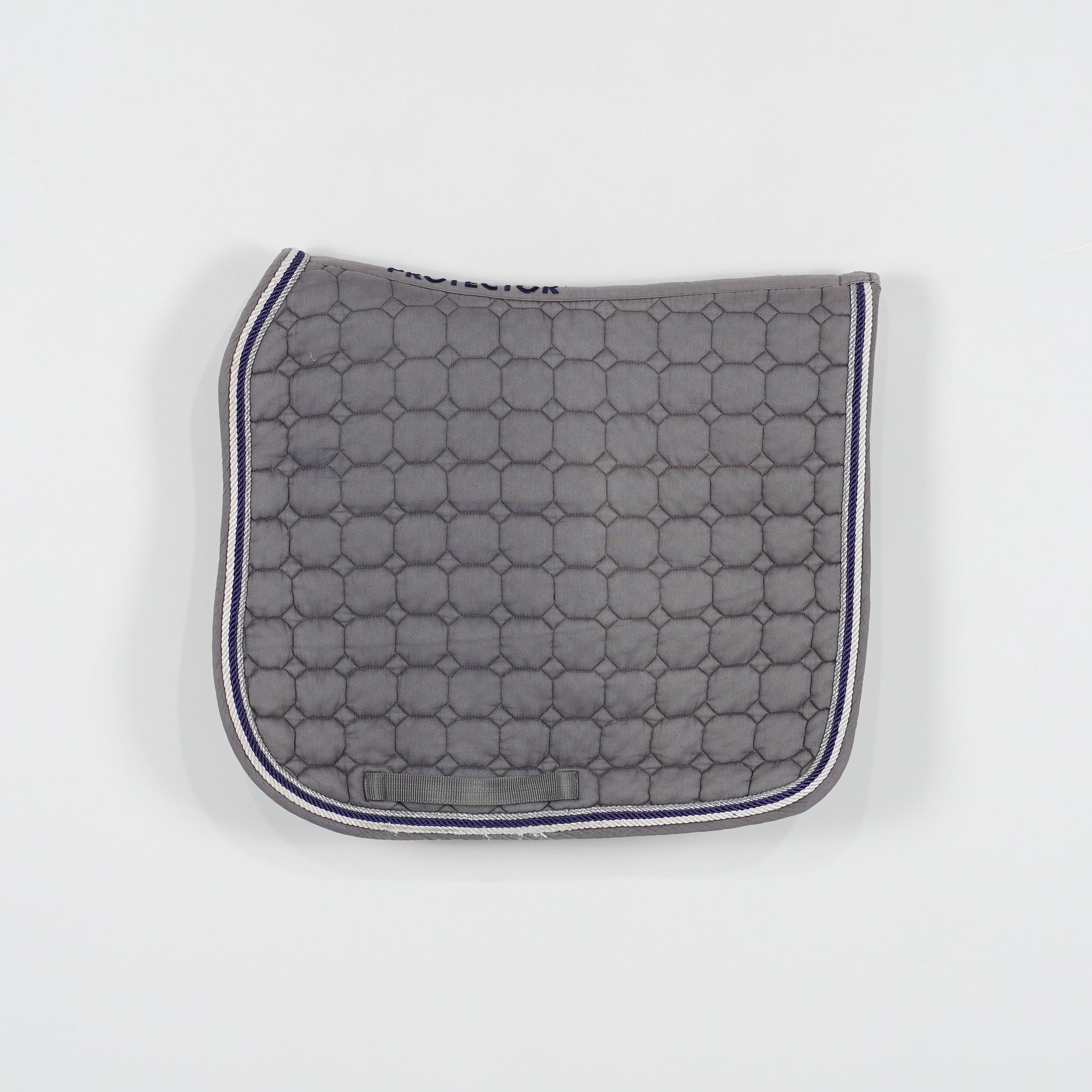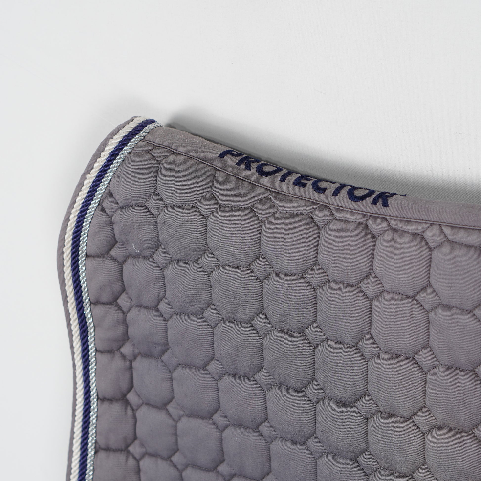 Kraftigt dressyrschabrak i grått med blå och silverfärgad passpoal från Protector.