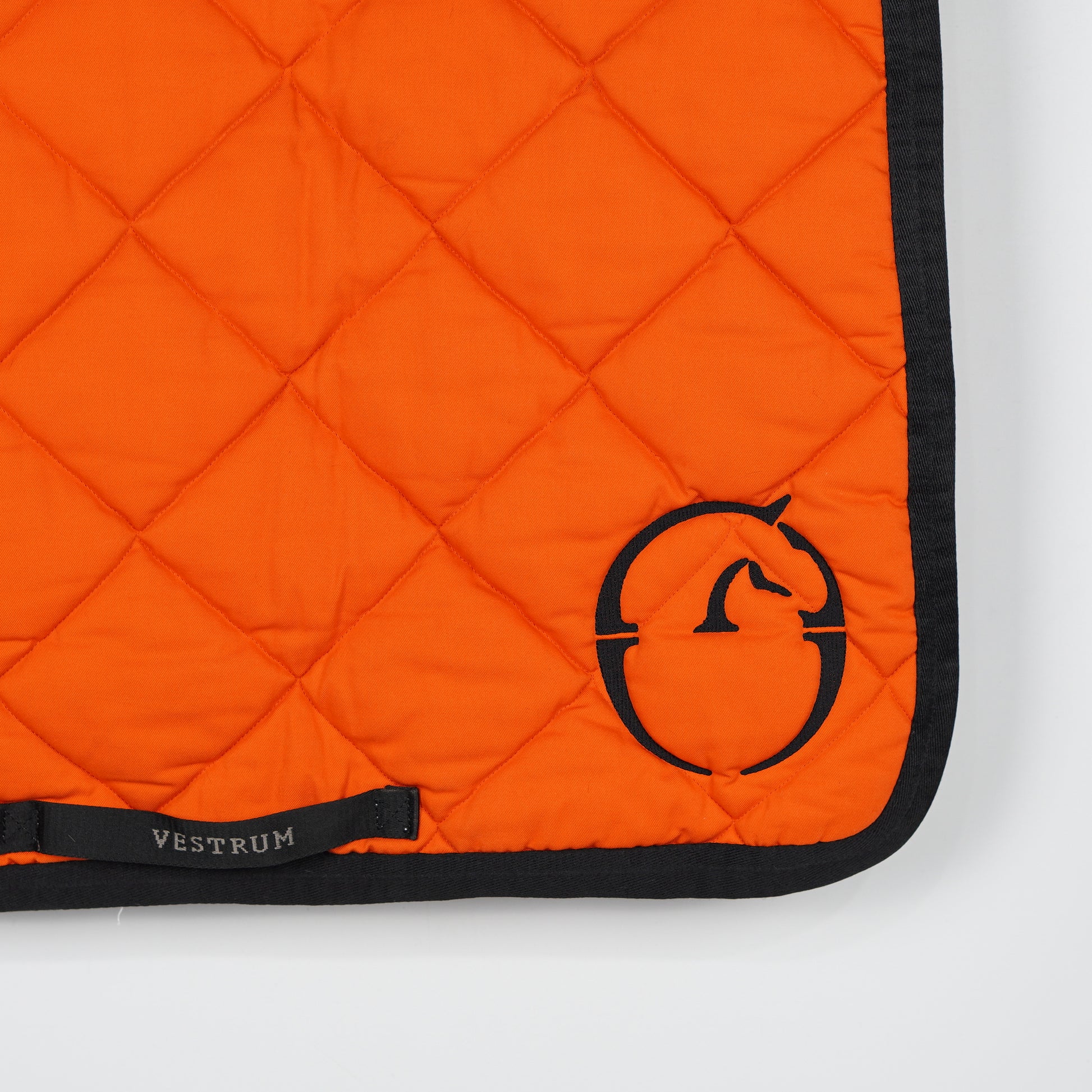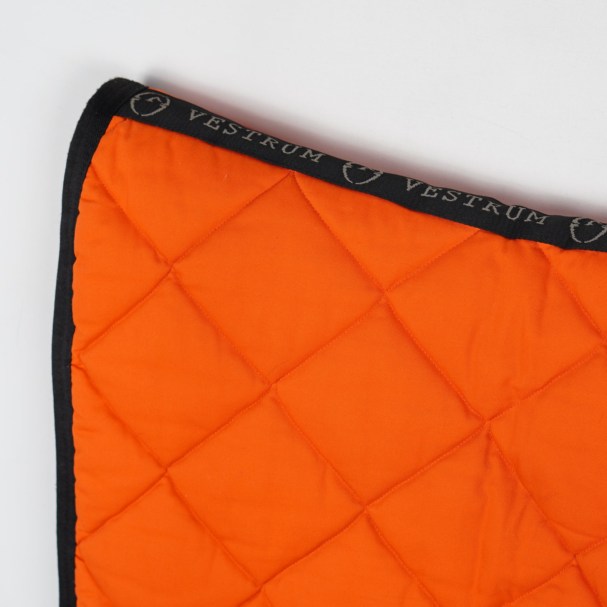 Orange dressyrschabrak från Vestrum, modell Chicago med svart kant.