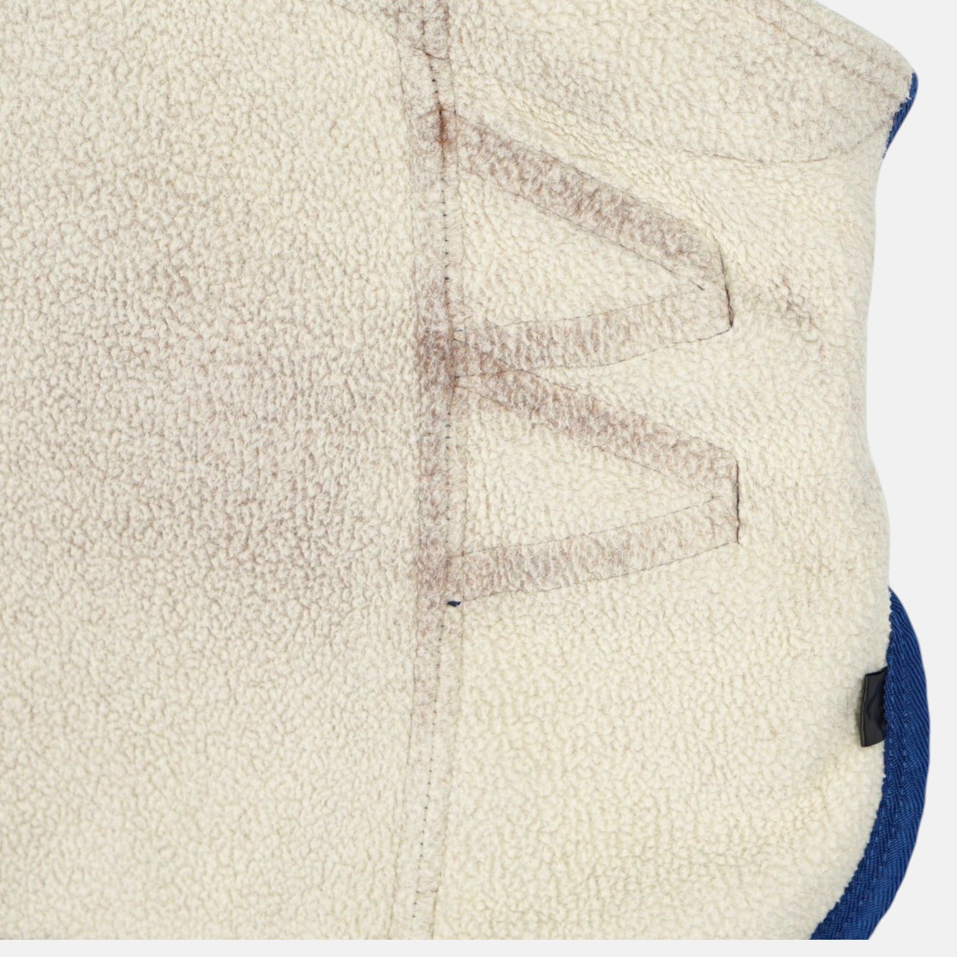 Blått fleecetäcke med dubbla avtagbara maggjordar från JH Collection. Täcket har en del hål kvar efter tvättmaskinen, men helt och funktionellt för övrigt.