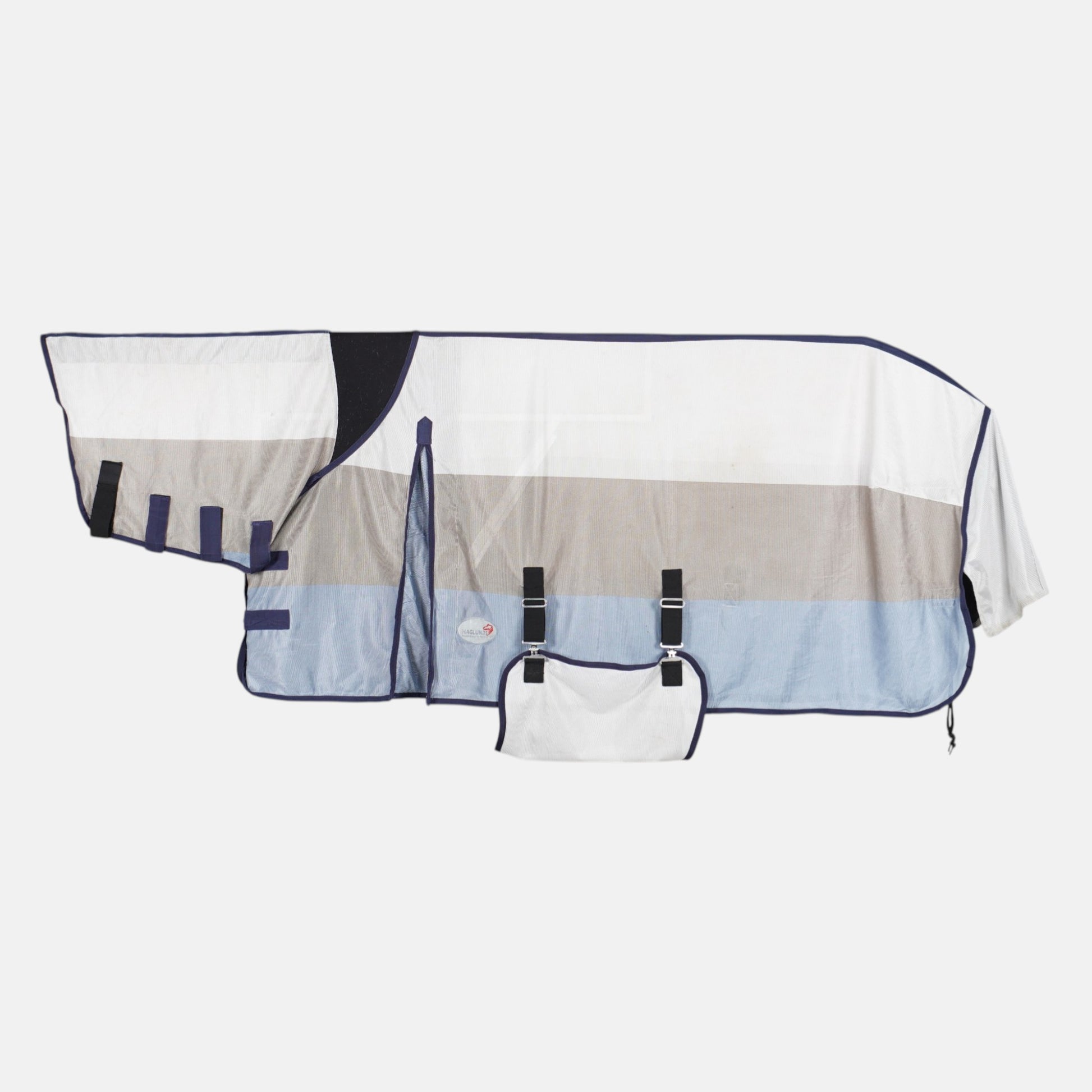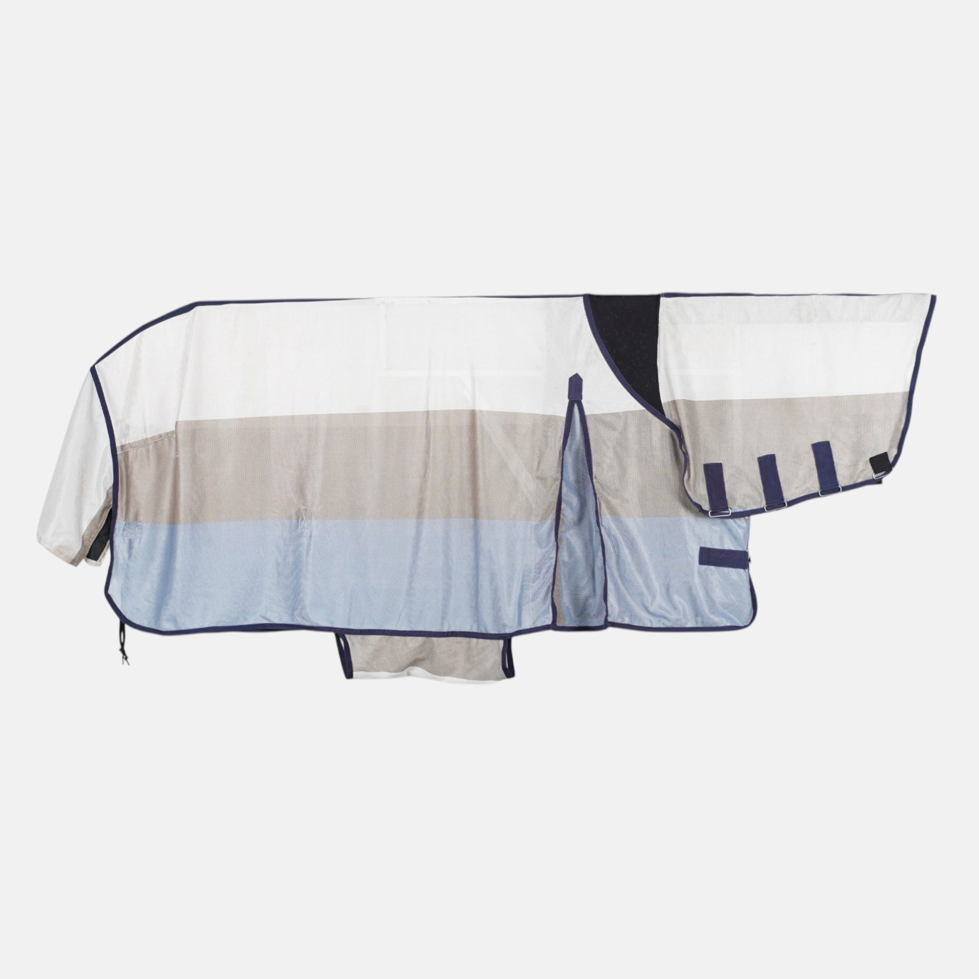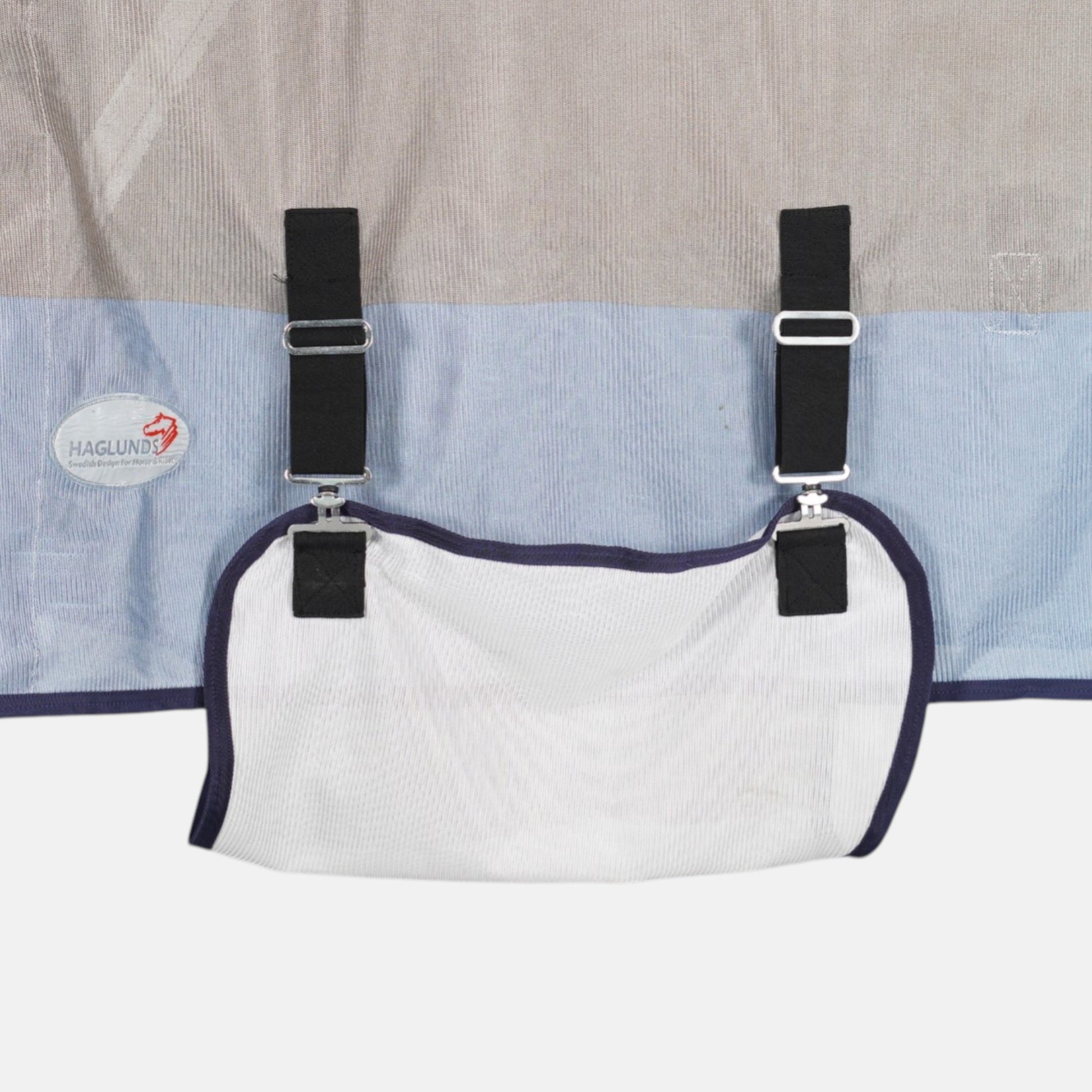 Blått flugtäcke med fast hals och magplatta från Haglunds.