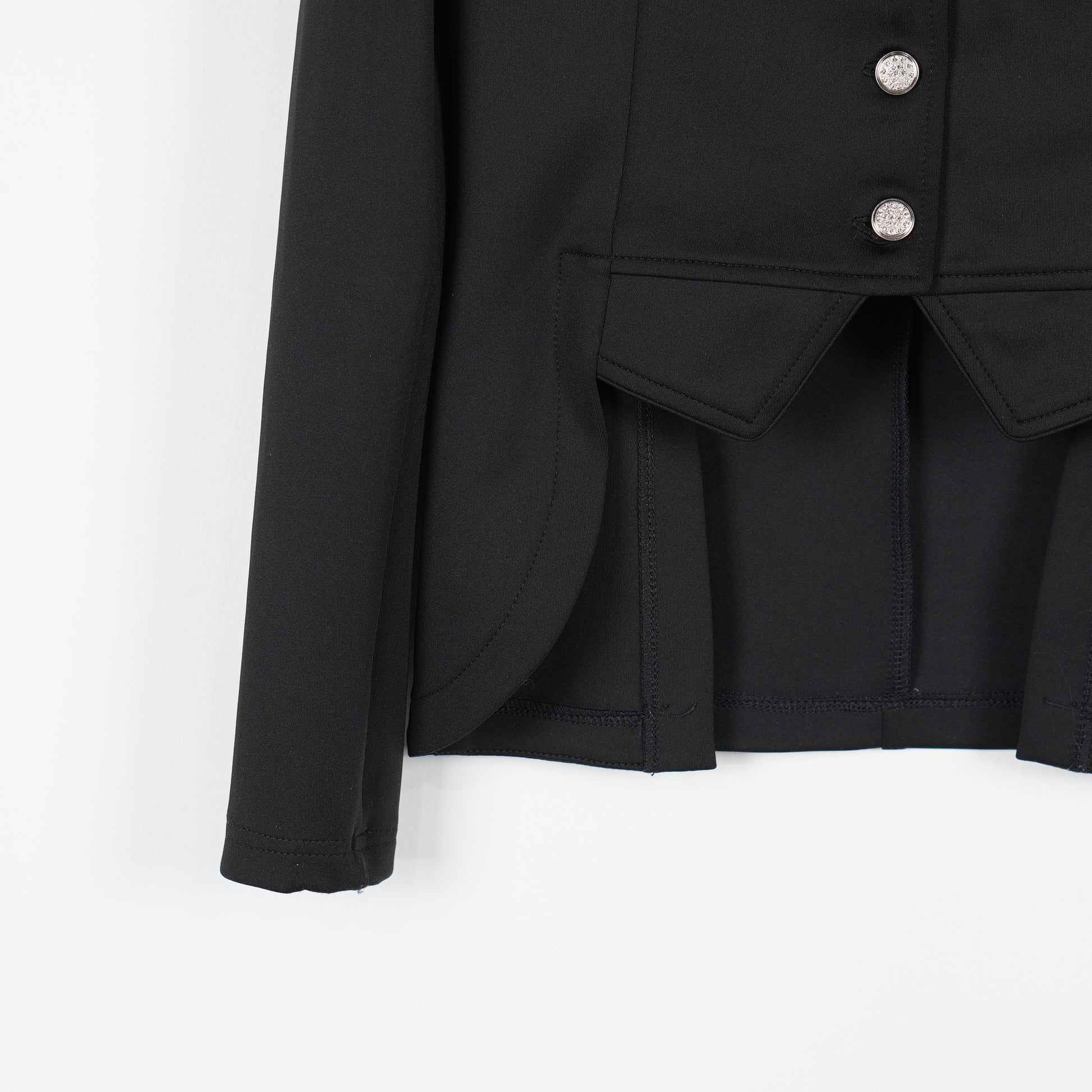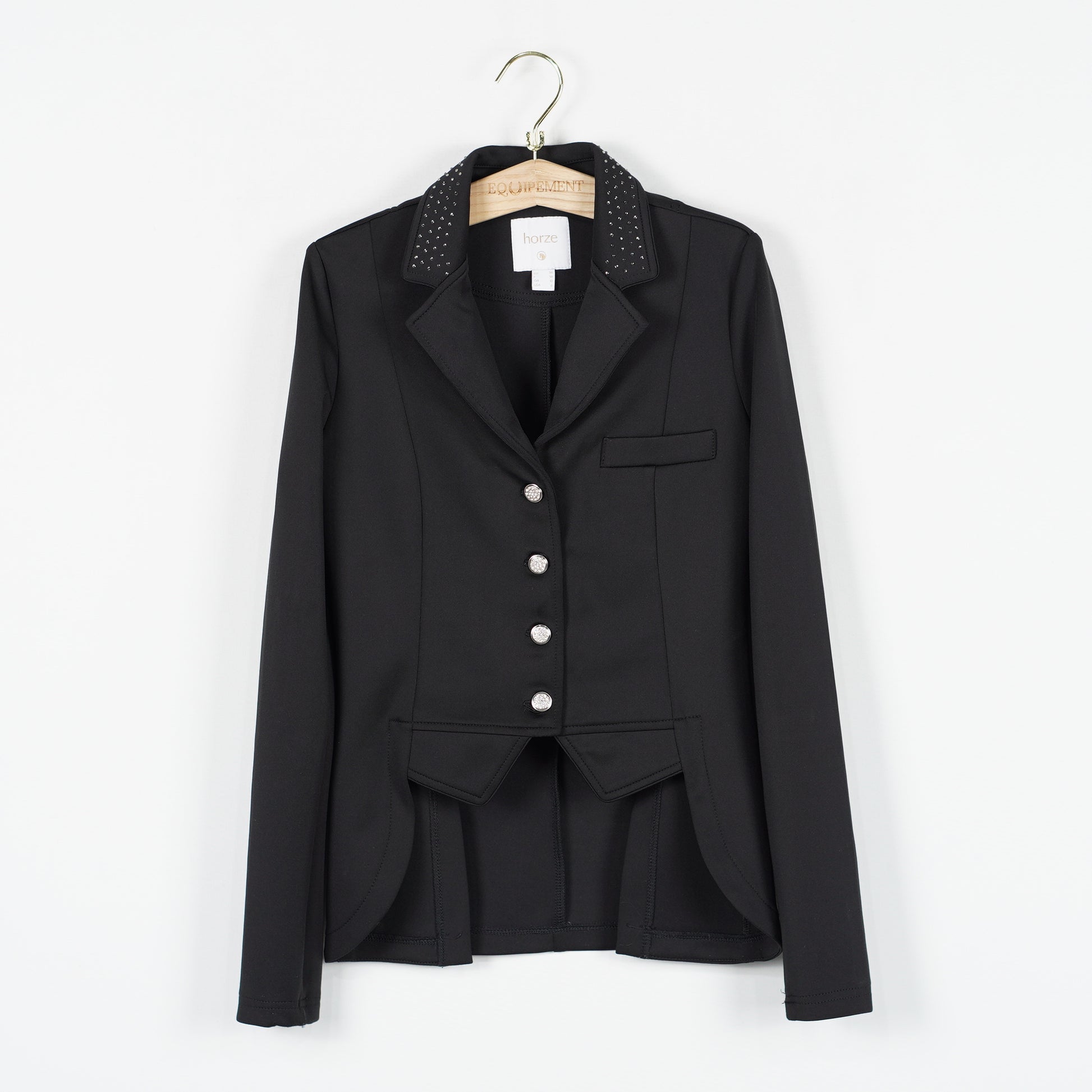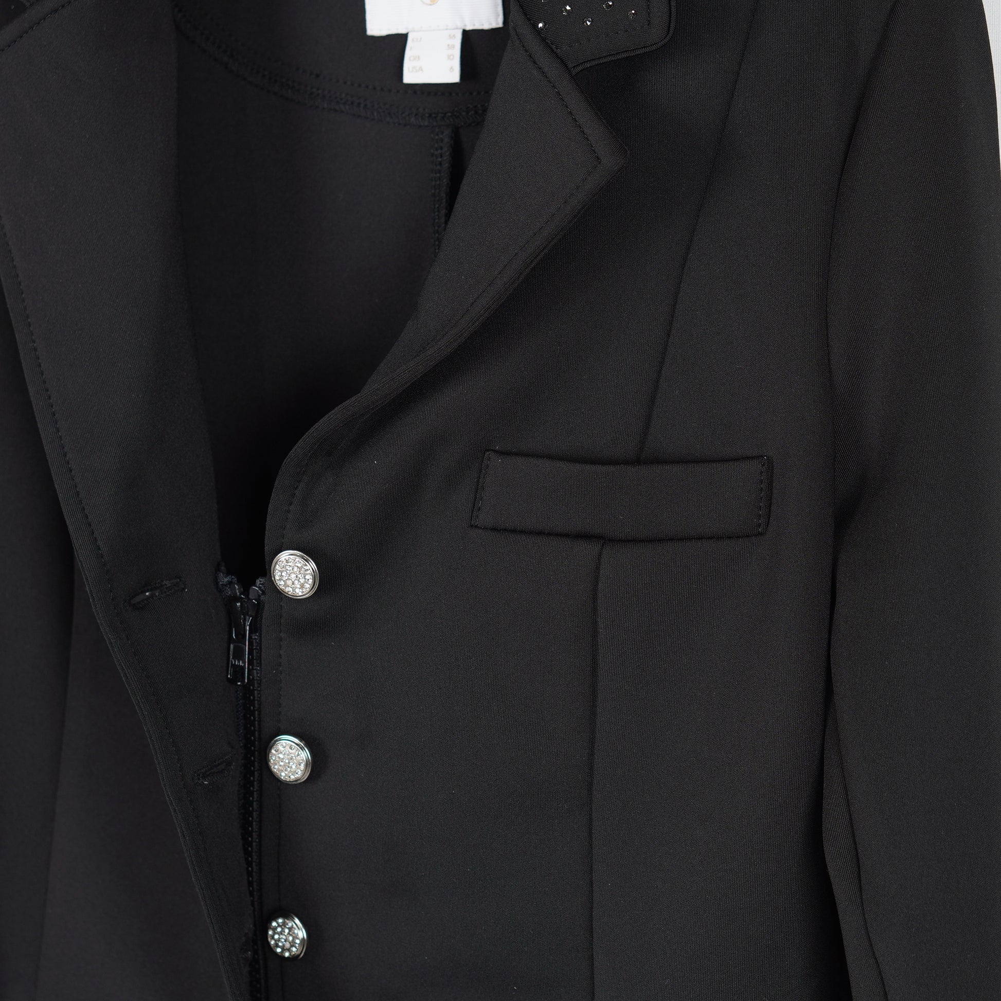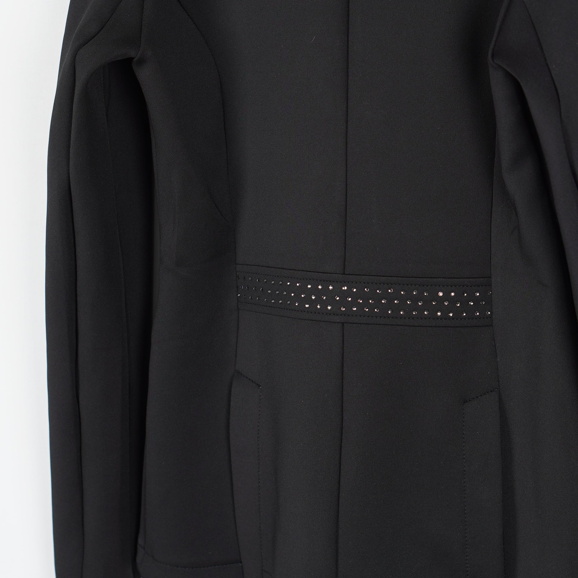 Kaxig frackett/halvfrack i ett svart stretchigt material med bling på hela kragen samt knappar från Horze.