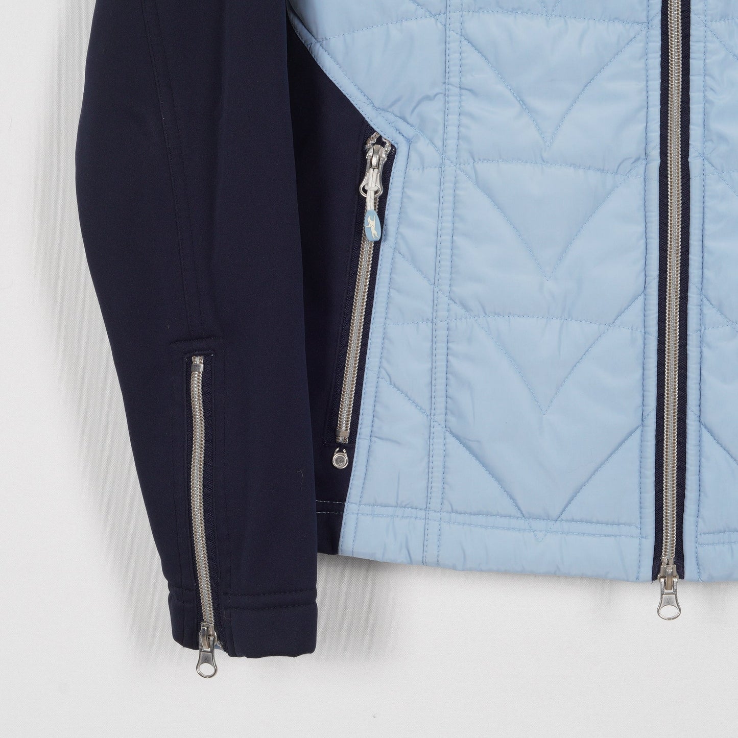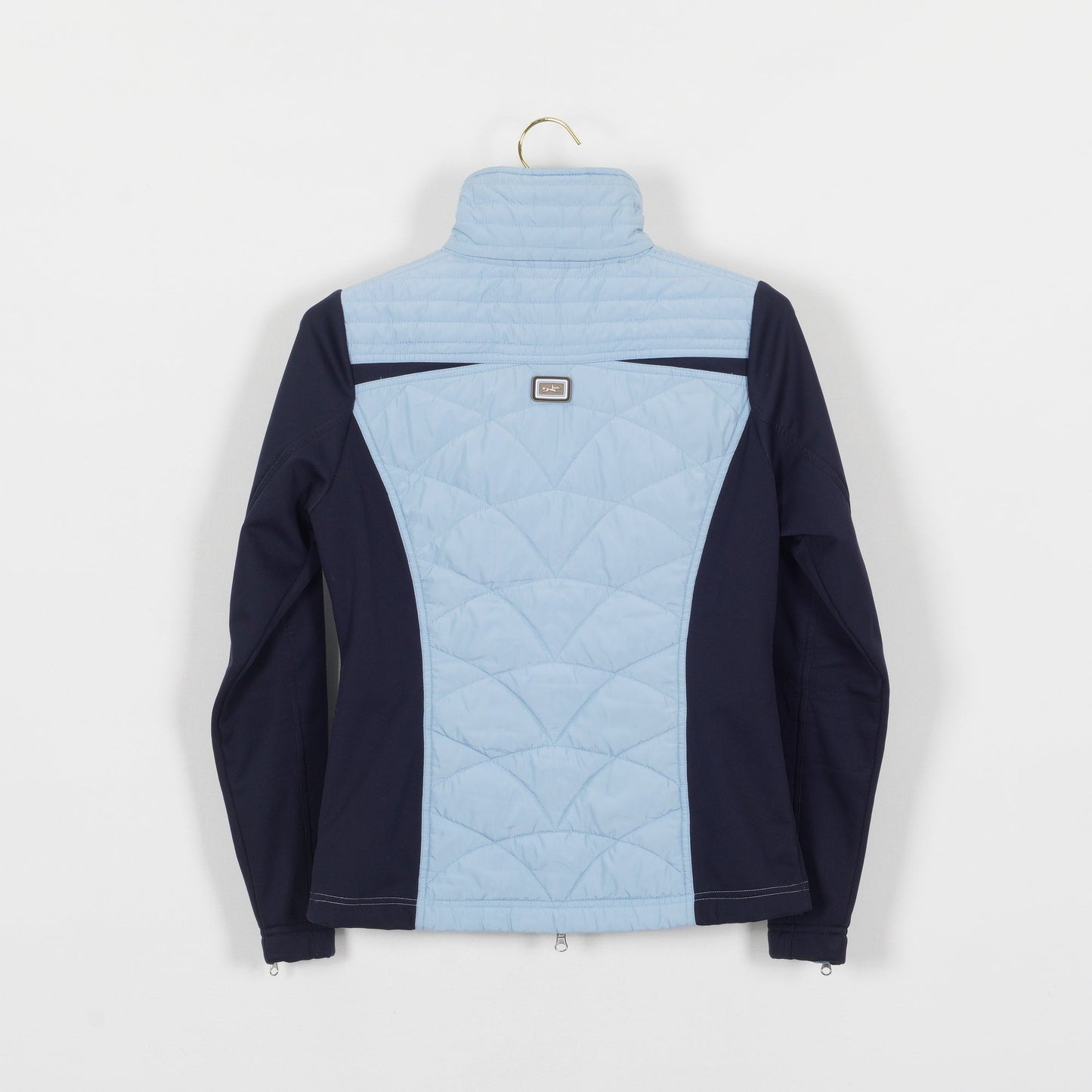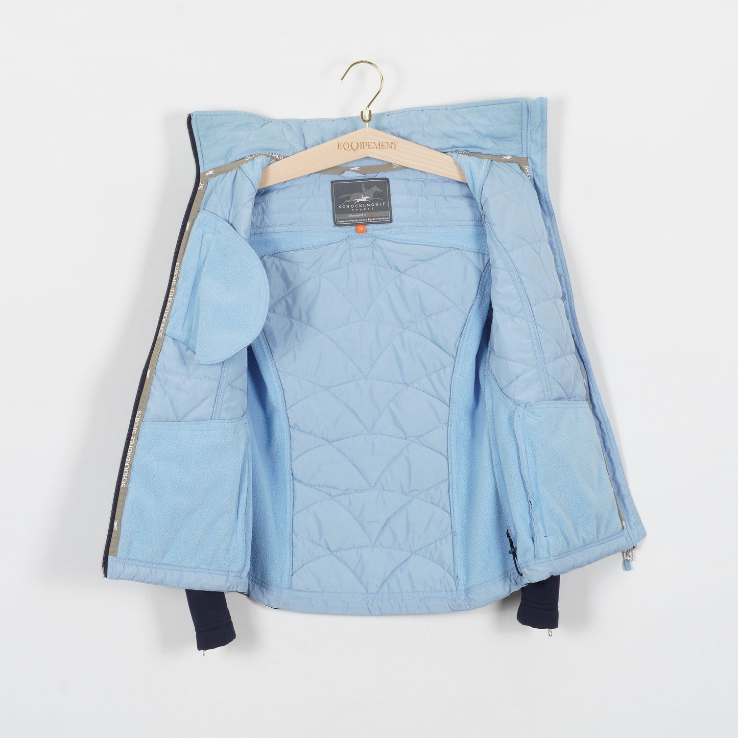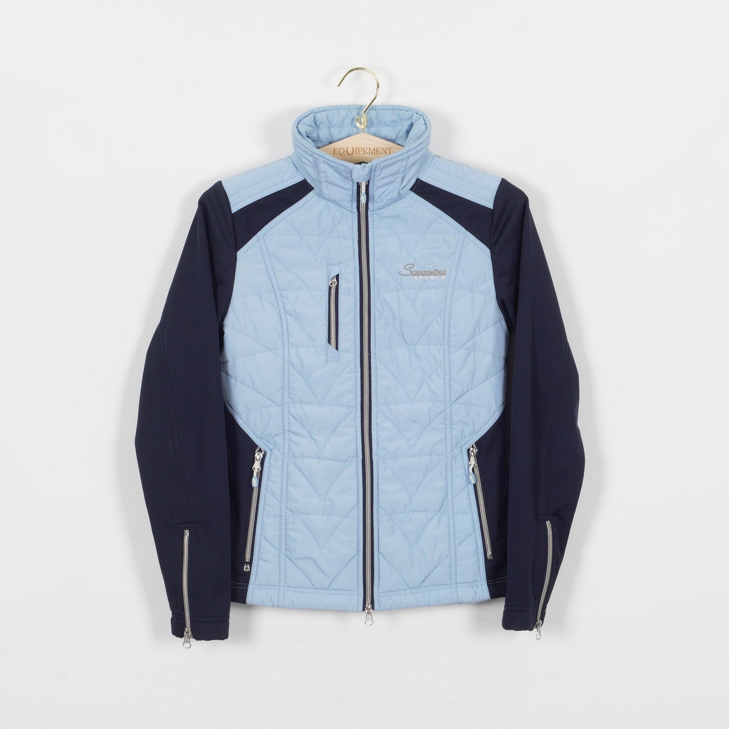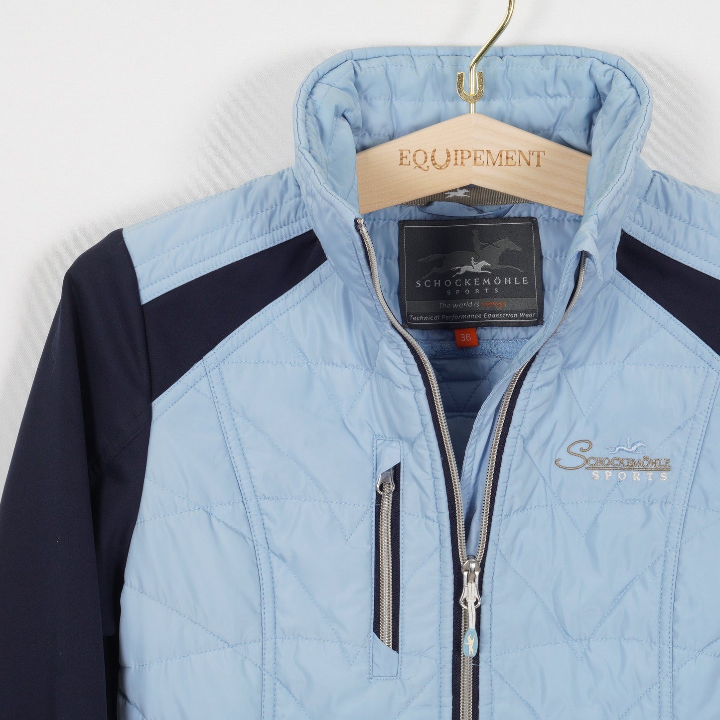 Tunn funktionsjacka från Schockemöhle i ljusblått med meshtyg i sidorna och ärmarna. Jackan är i ett bra skick.