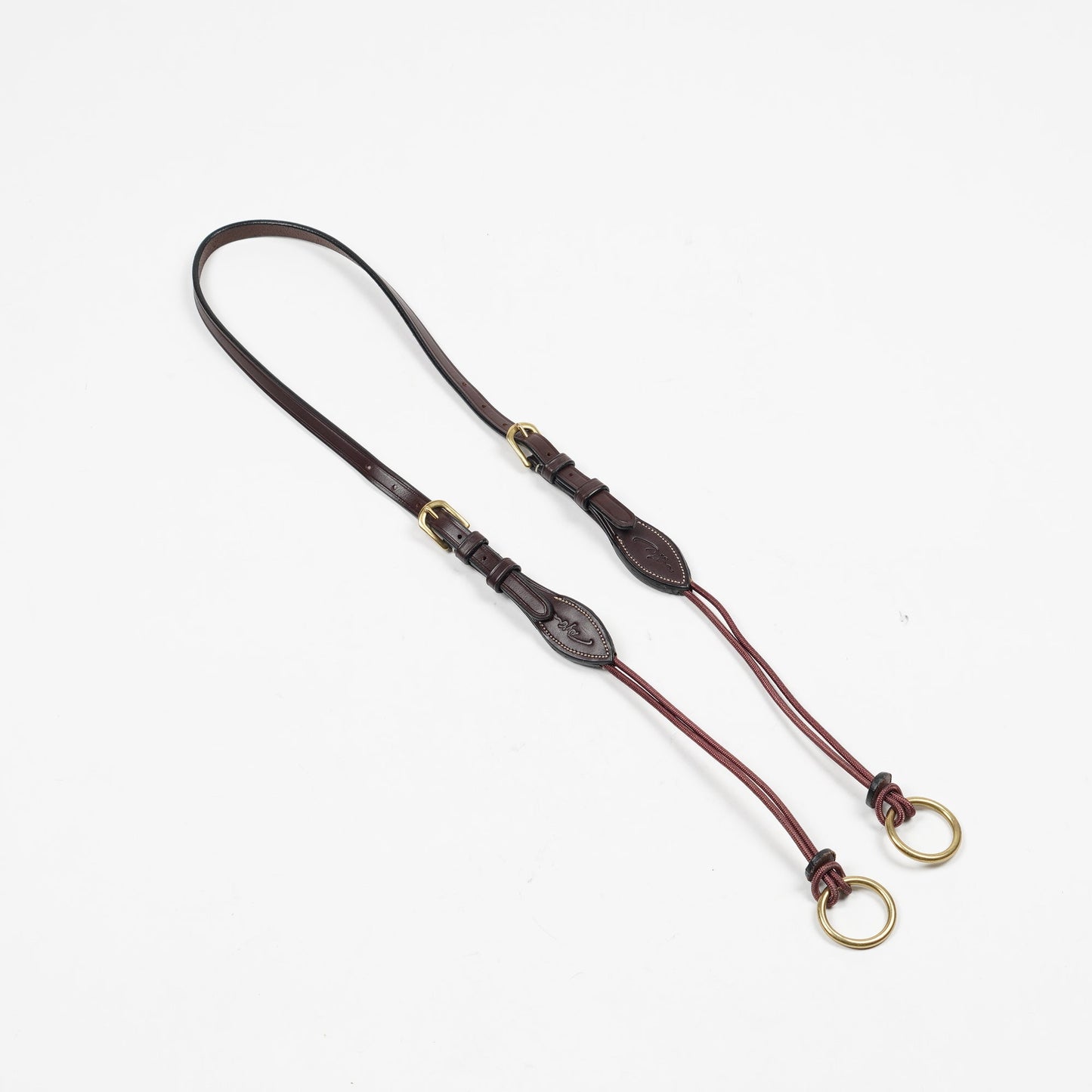 Gag-straps med nackrem i brunt läder och mässingsringar från Dyon. I ett tipp-topp skick!