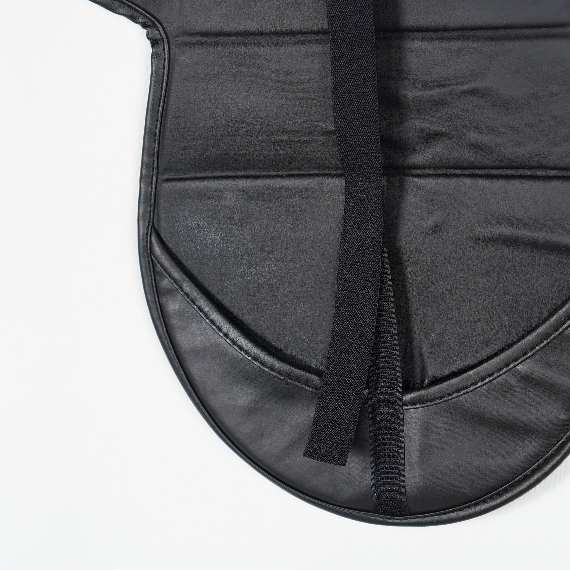 Svart sadelsits i gel med elastisk band. Sadelsitsen kom inplastad till oss och är i ett oanvänt skick.