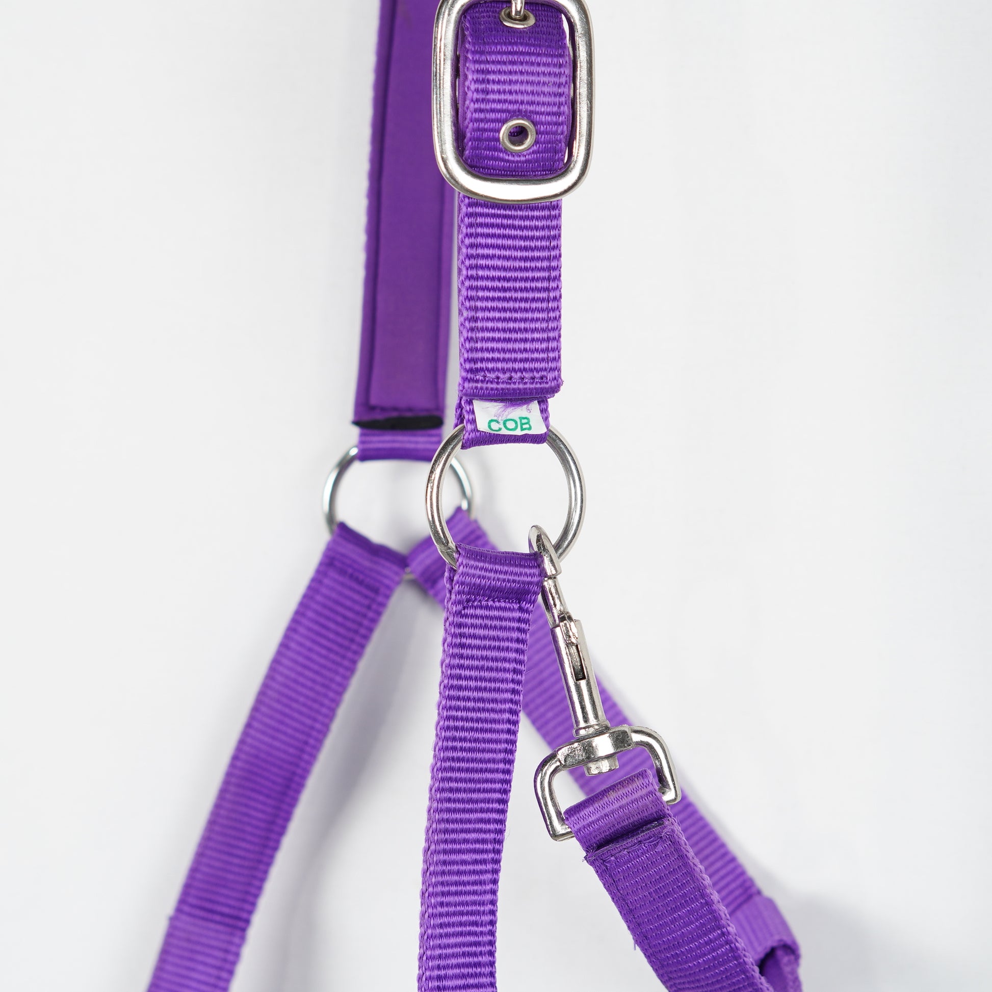 Lila nylongrimma med fodrad nos- och nackstycke.