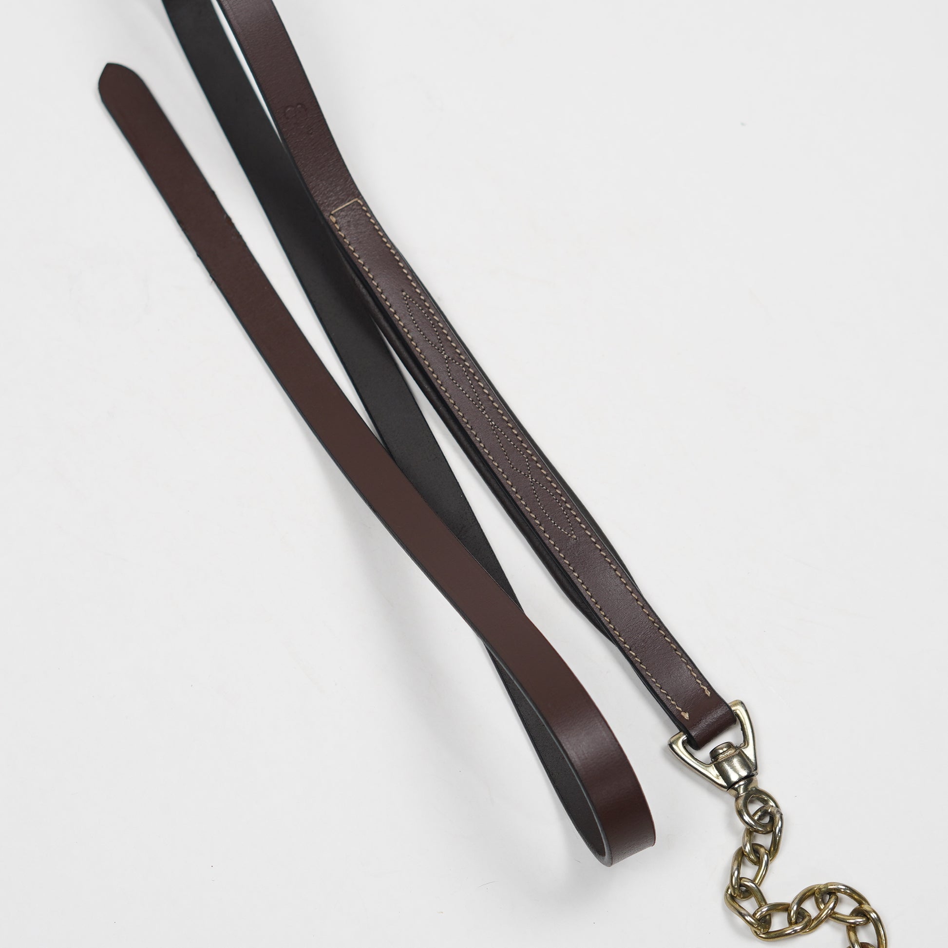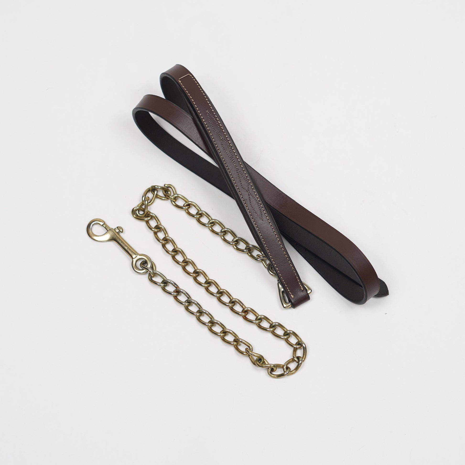 Brunt grimskaft i läder med guldfärgad kedja från Swedish Collection.