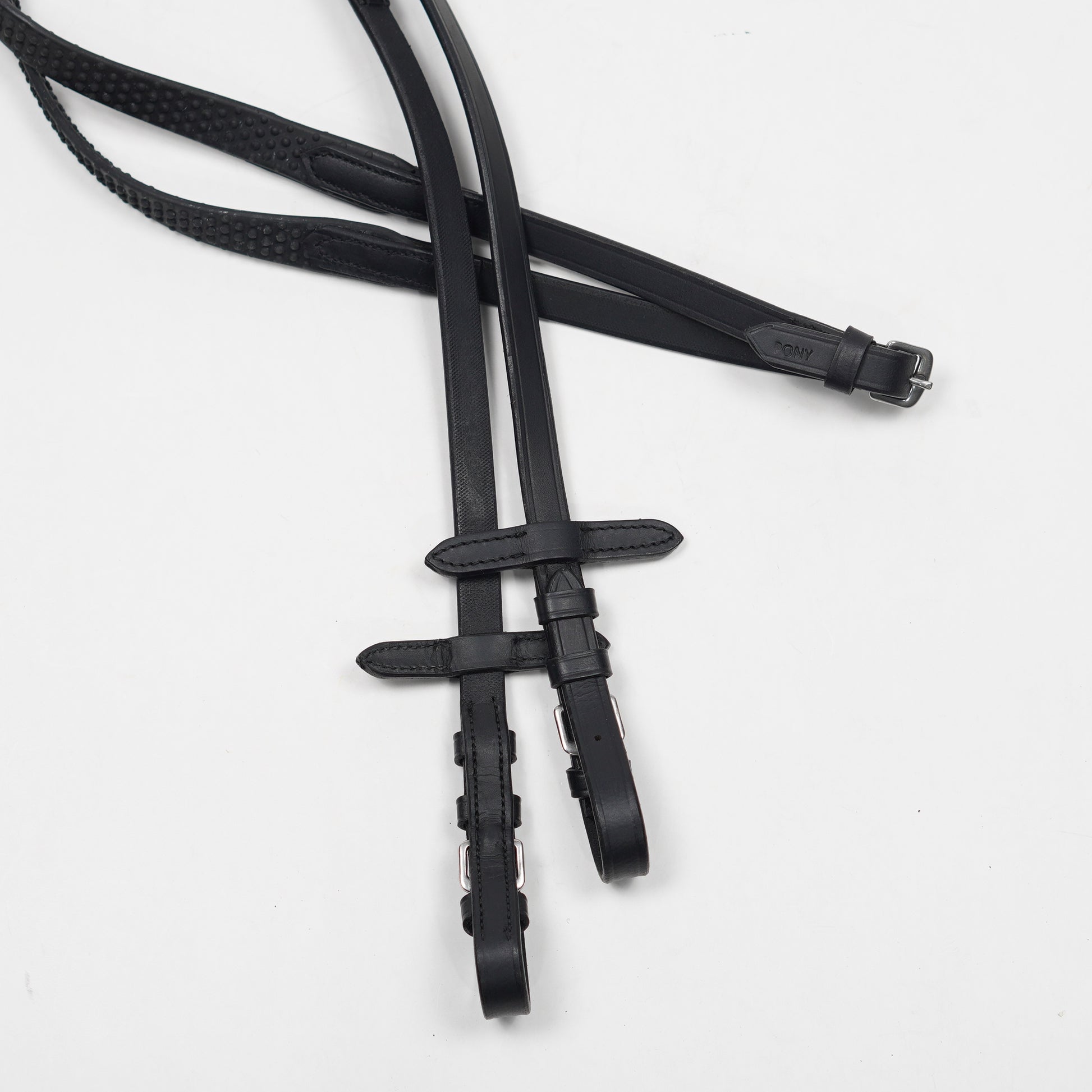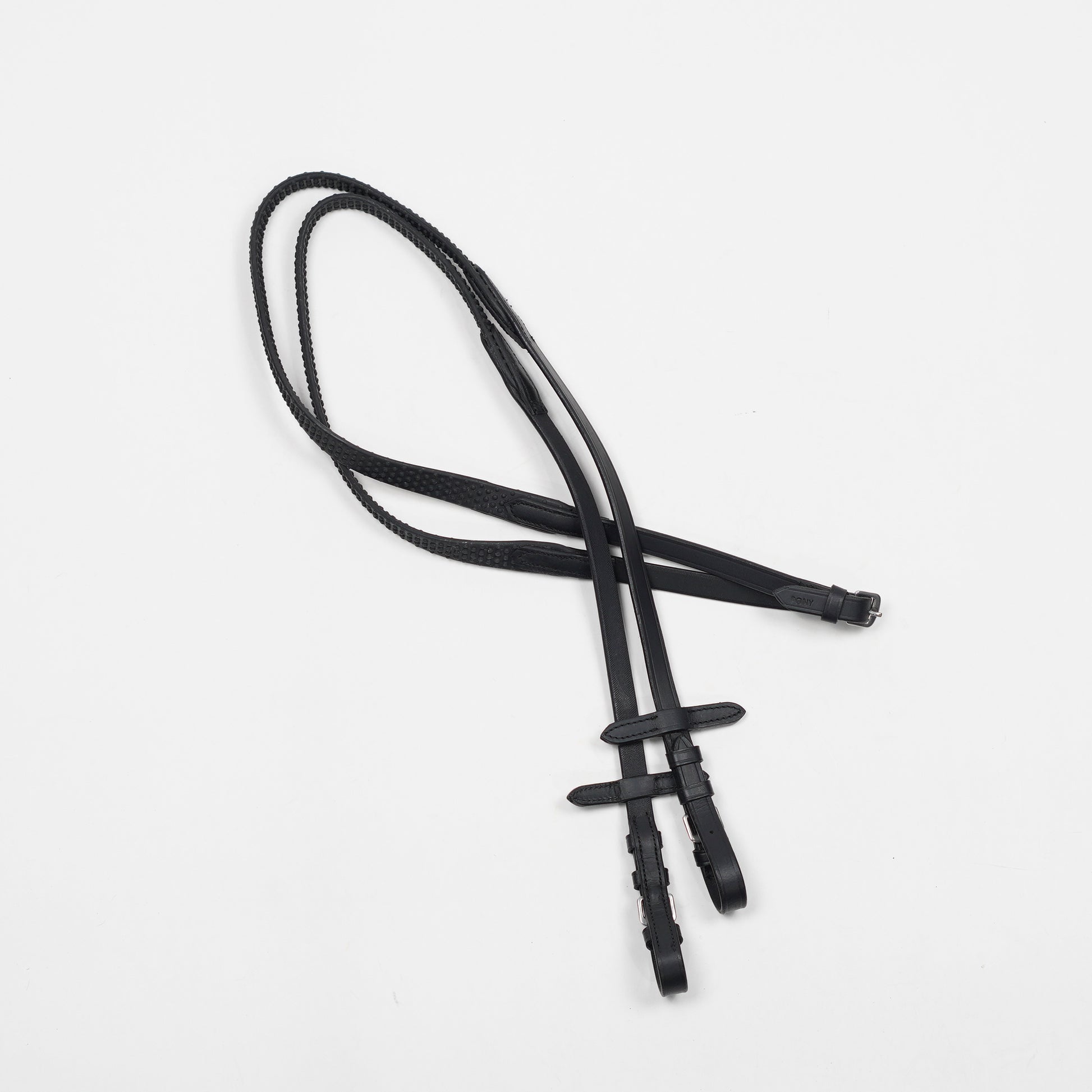 Svart gummitygel från Börjes med läderändar och martingalstopp.