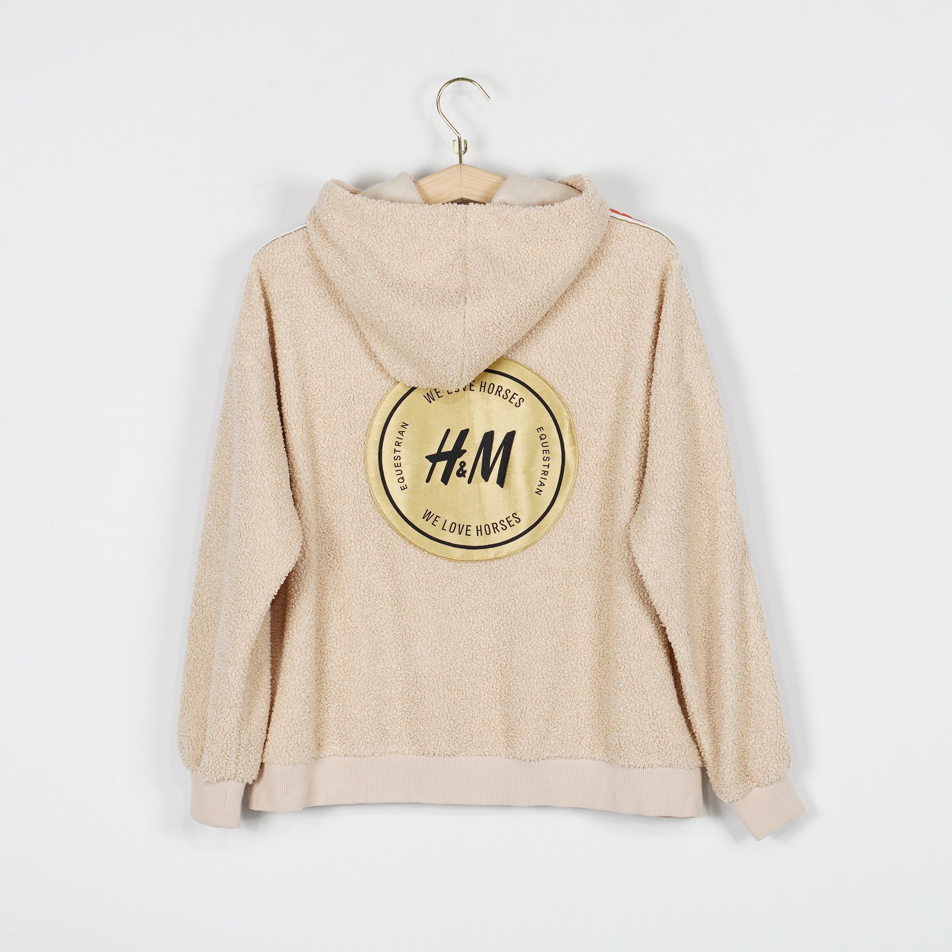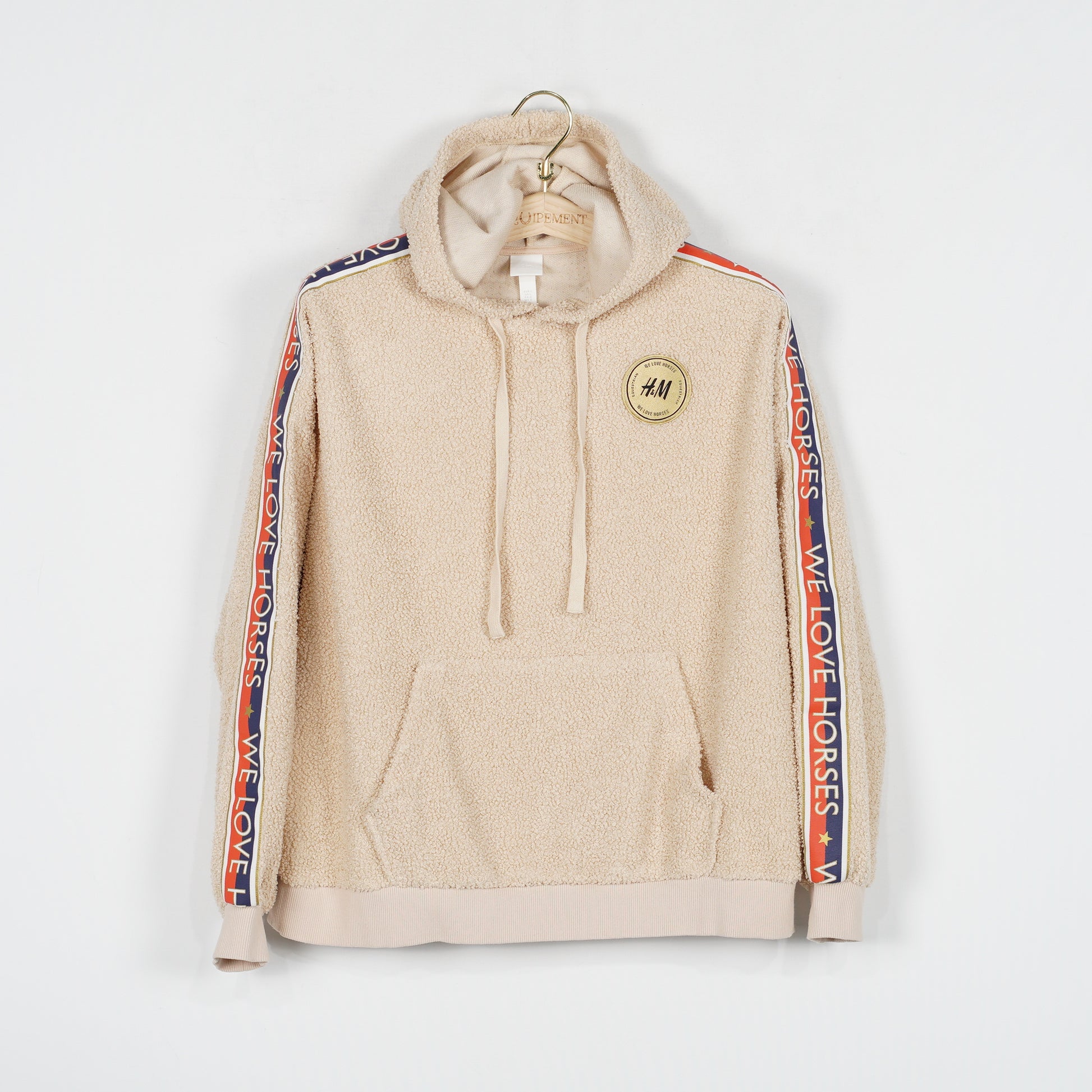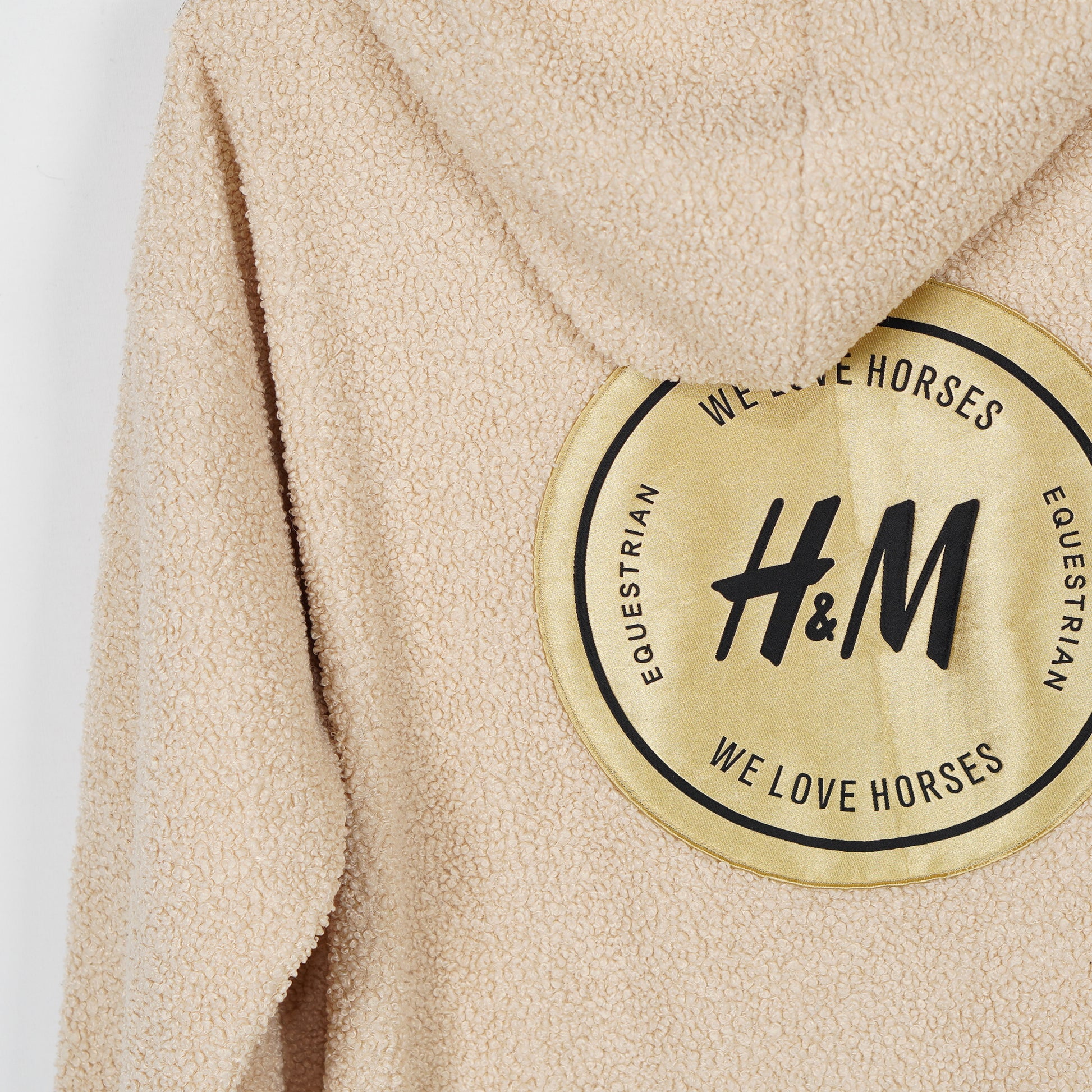 Beige hoodie i ett mysigt teddymaterial ur H&Ms kollektion "We love horses". Tröjan är i en oversized modell.