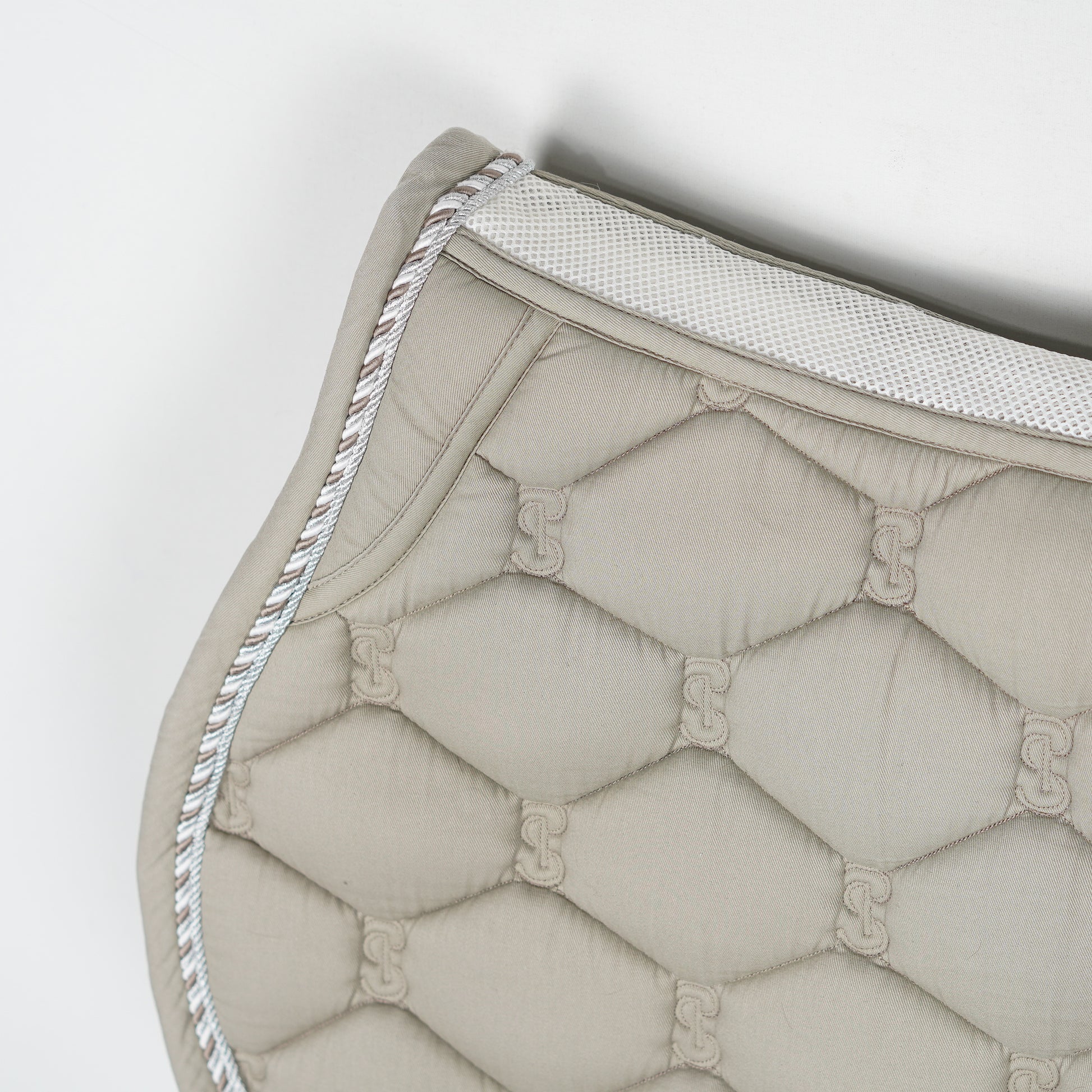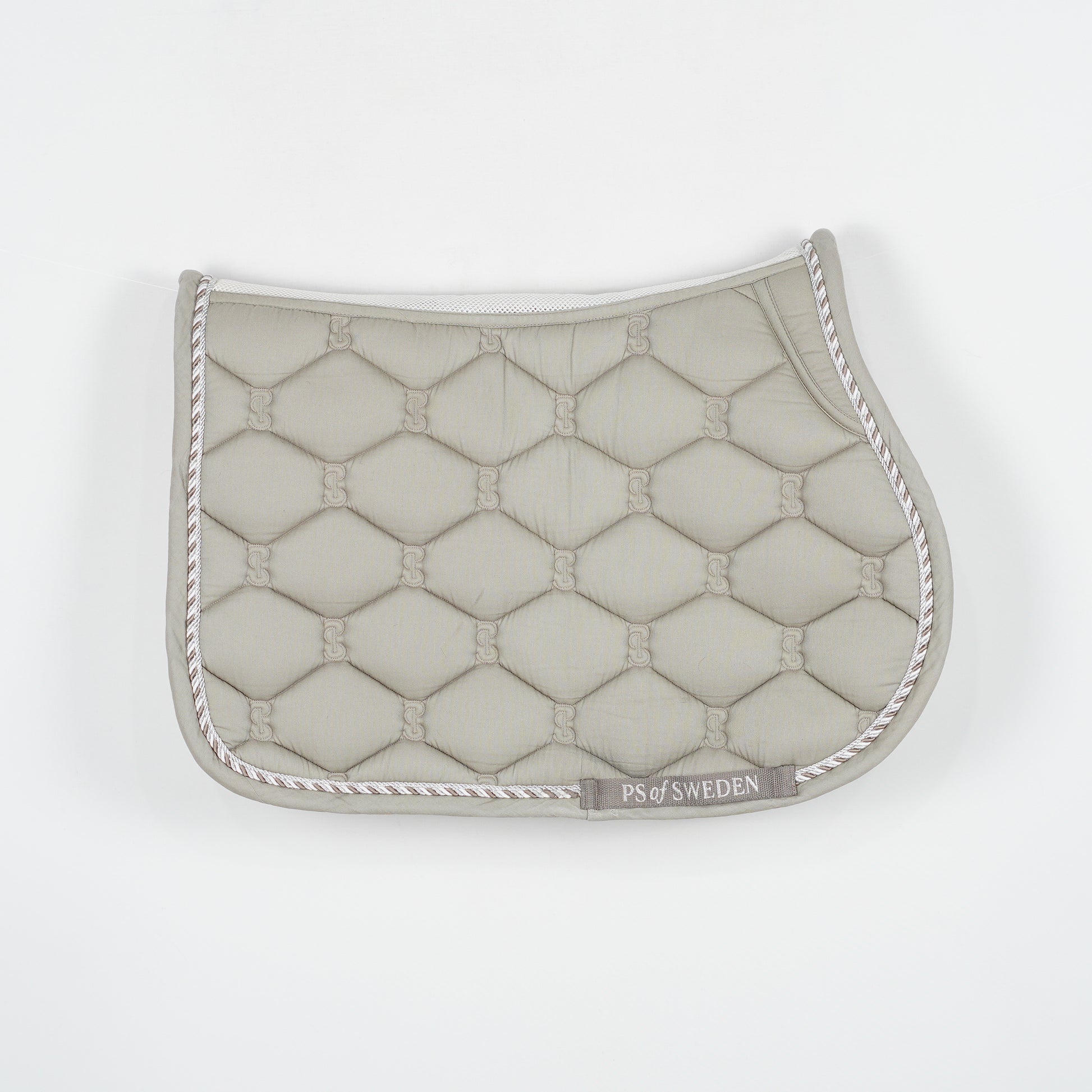 Grått hoppschabrak med silverfärgad passpoal och vit mesh längs ryggen från PS of Sweden.