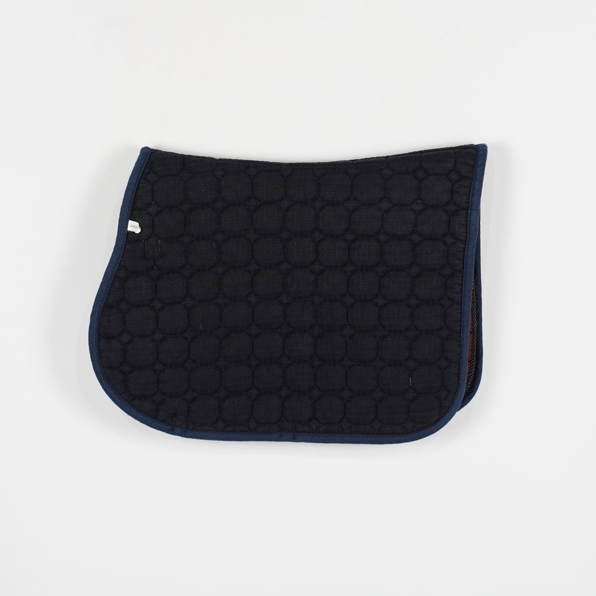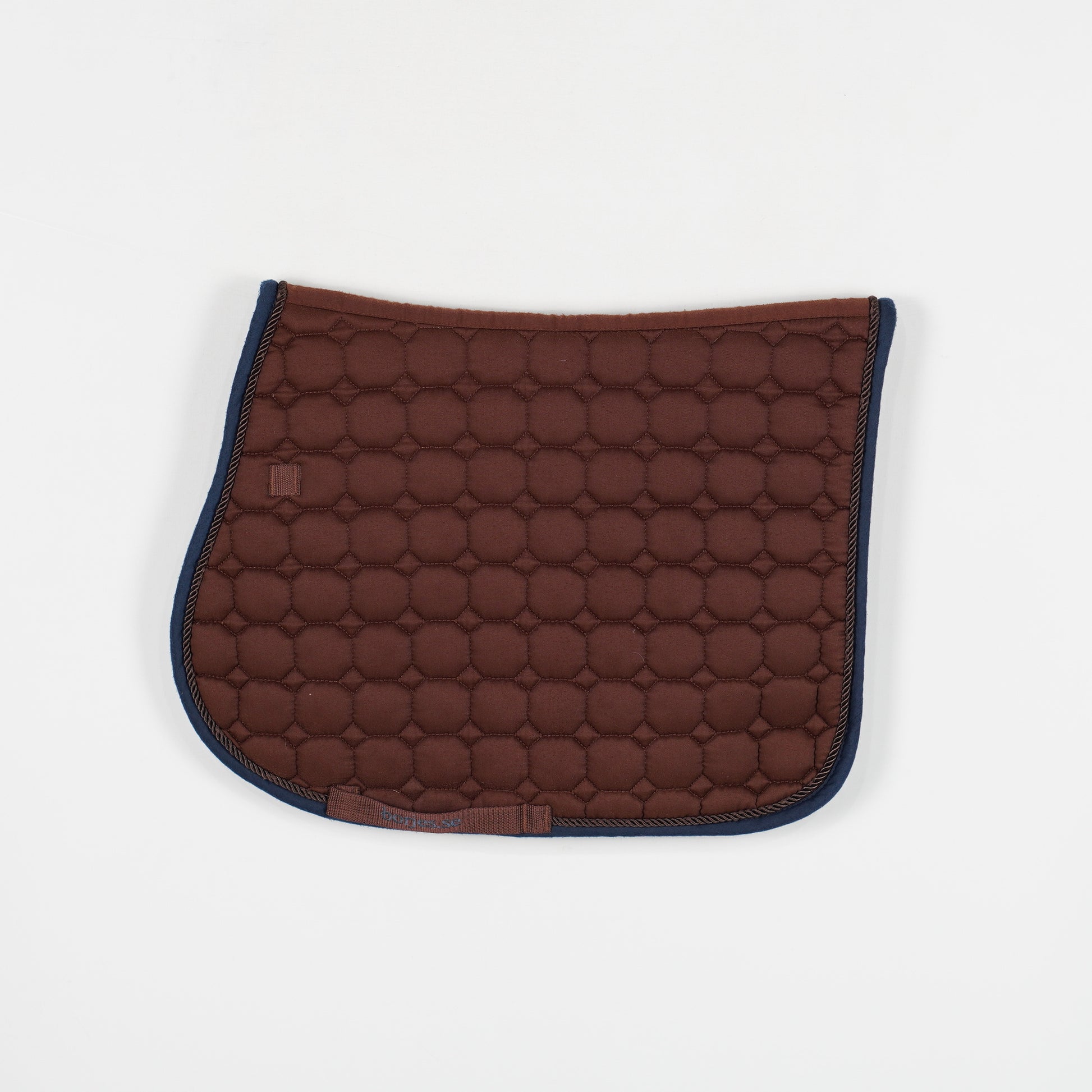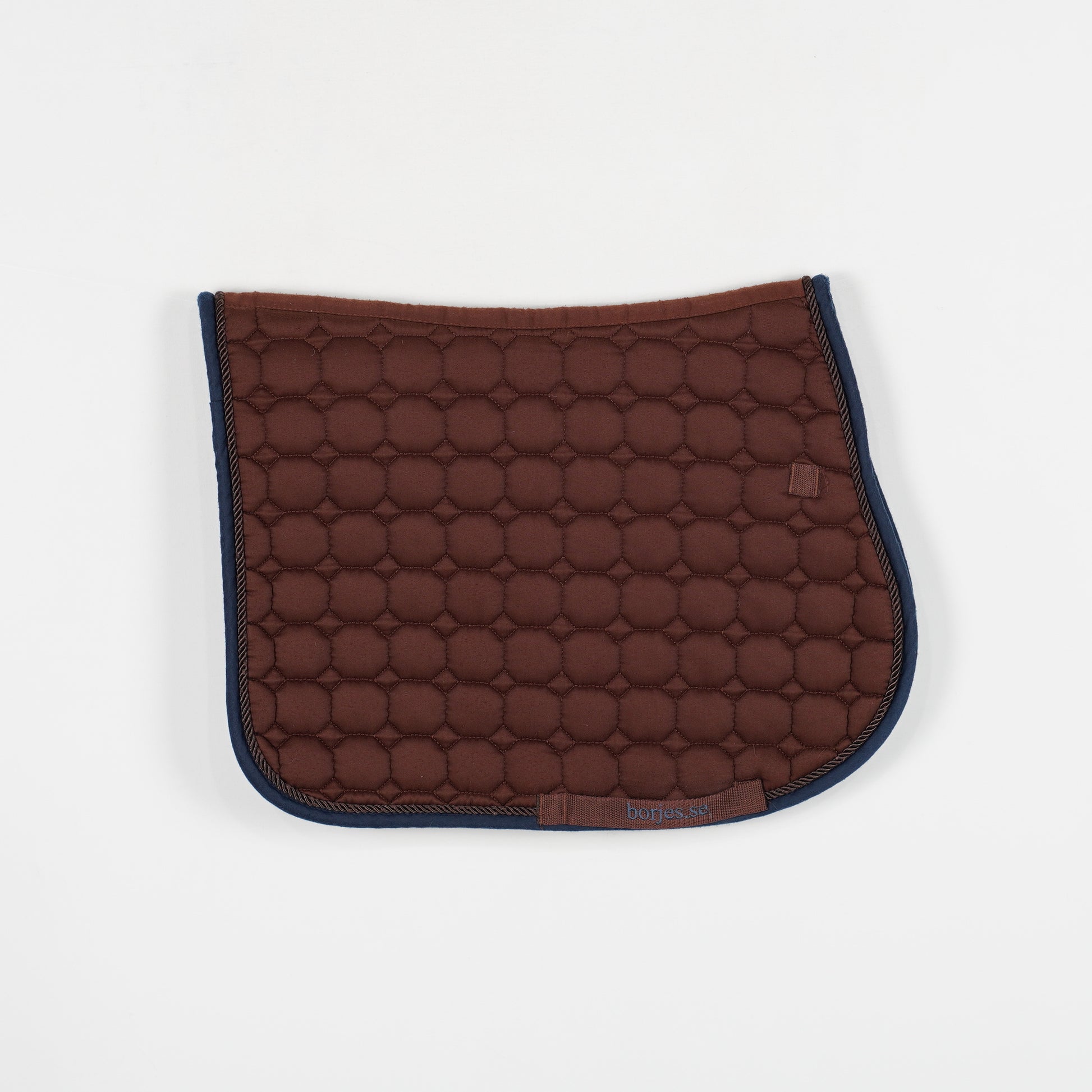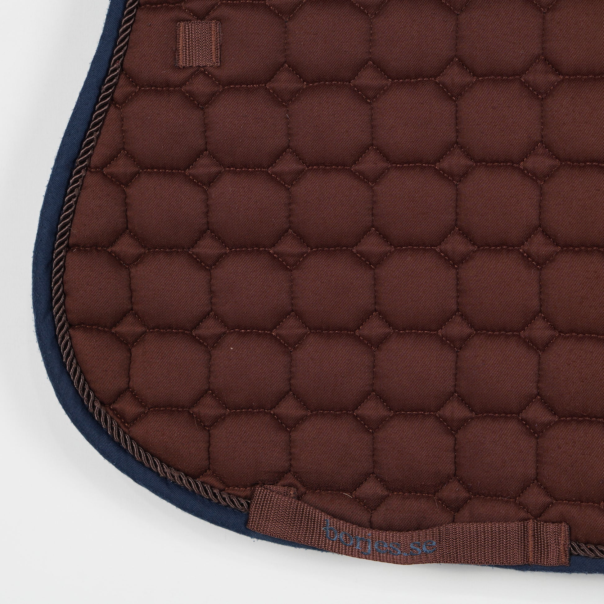 Brunt schabrak från Börjes med blå kant. Schabraket är noppigt.