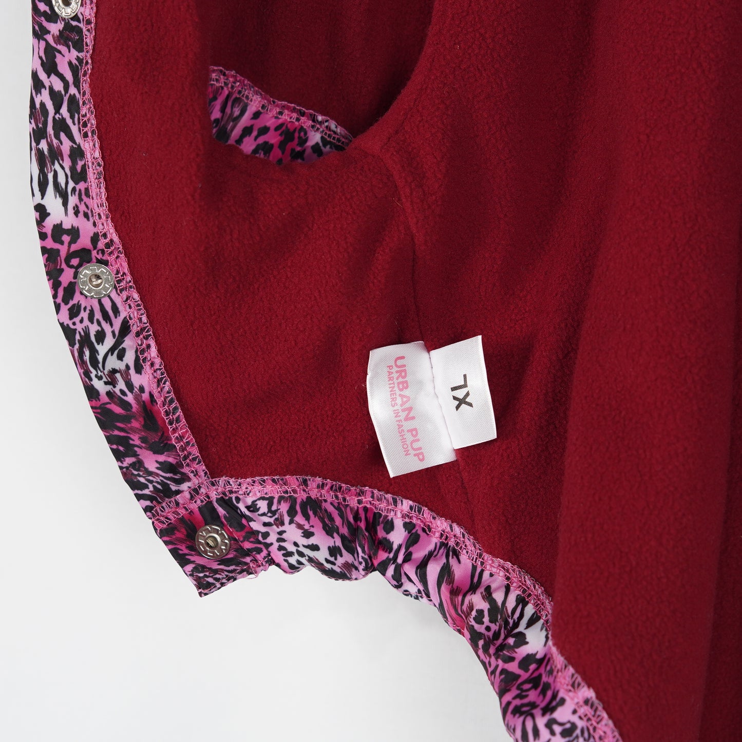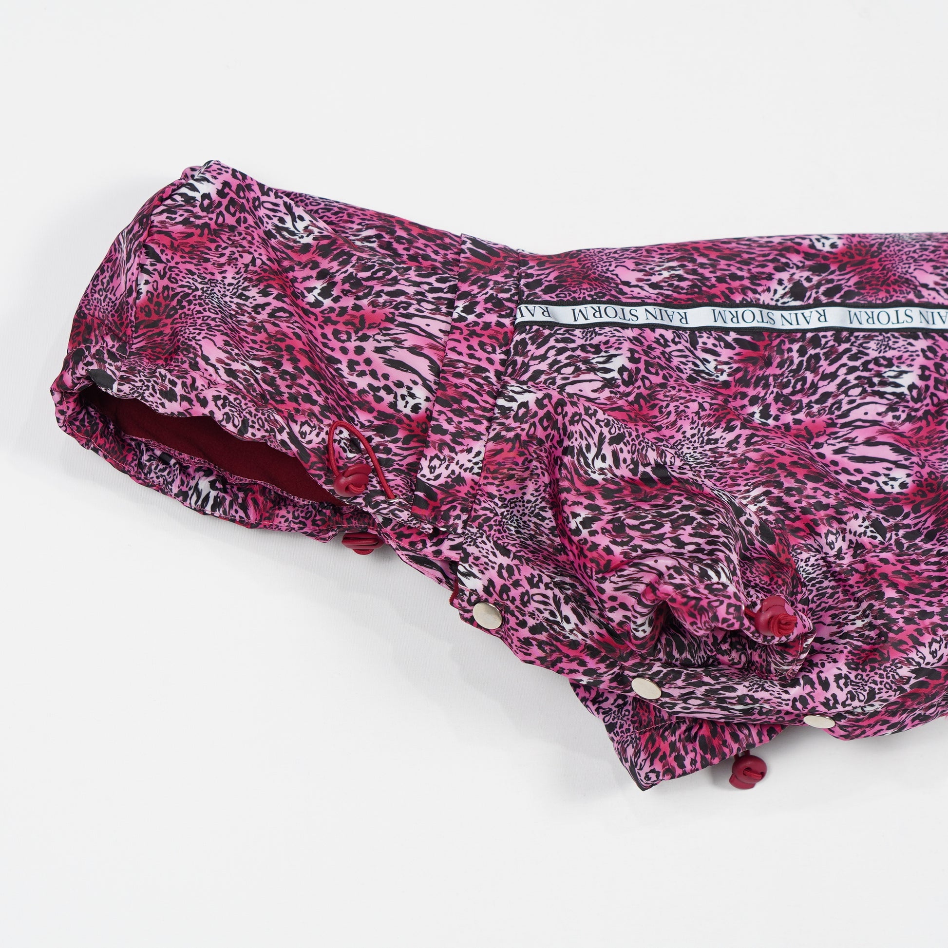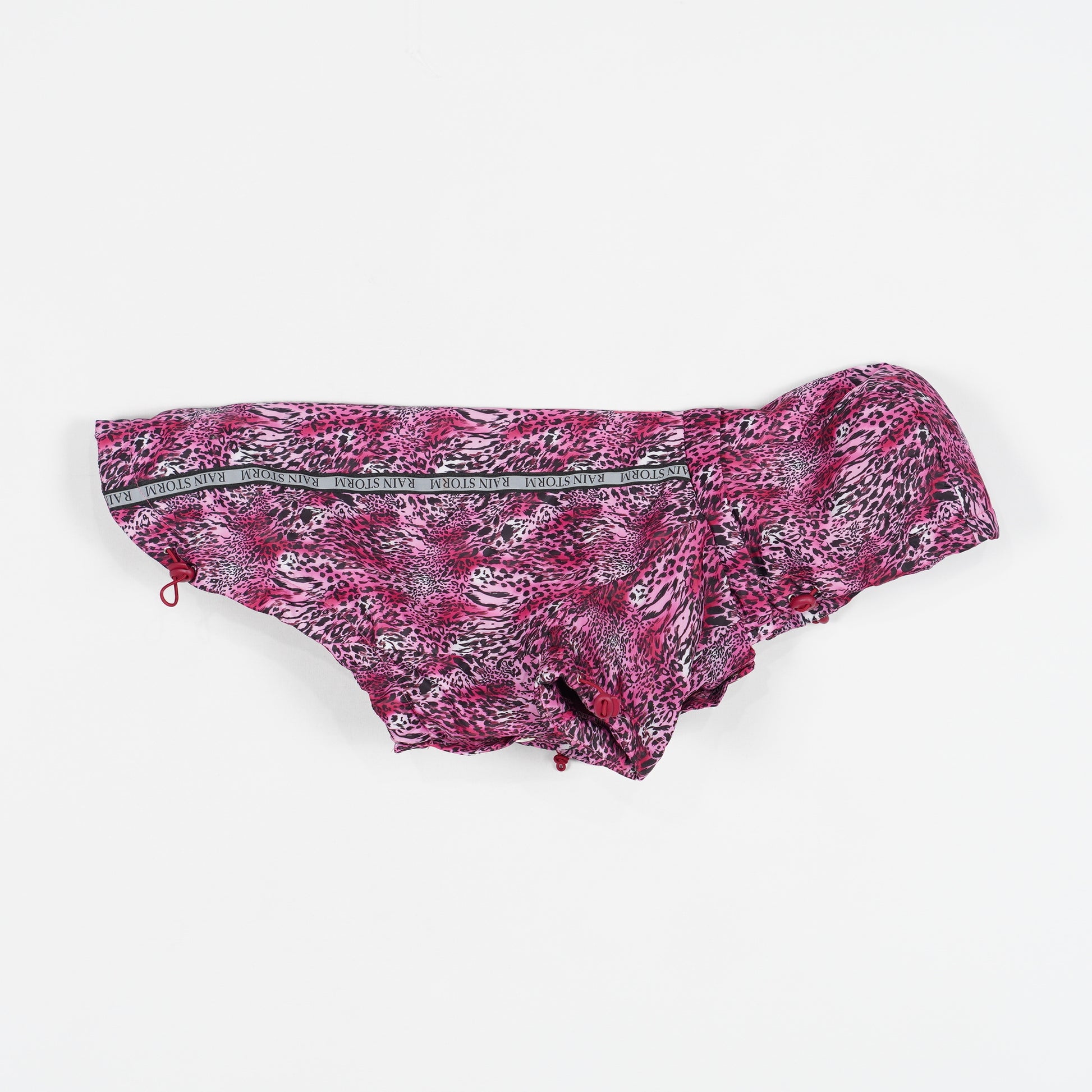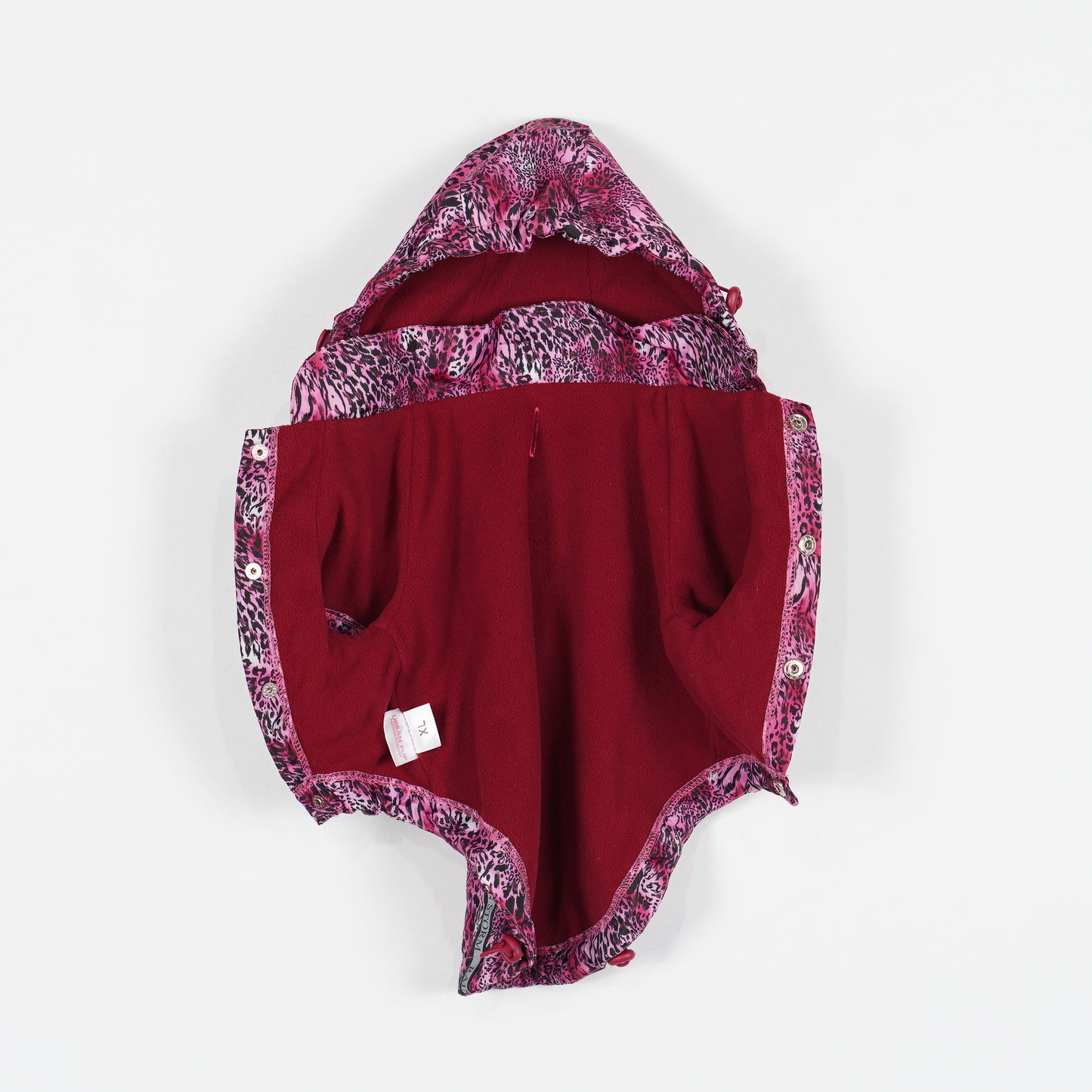 Rosa hundtäcke med djurmönster från Urban pup. Täcket är fleecefodrat, har avtagbar luva och hål för koppel på ryggen.