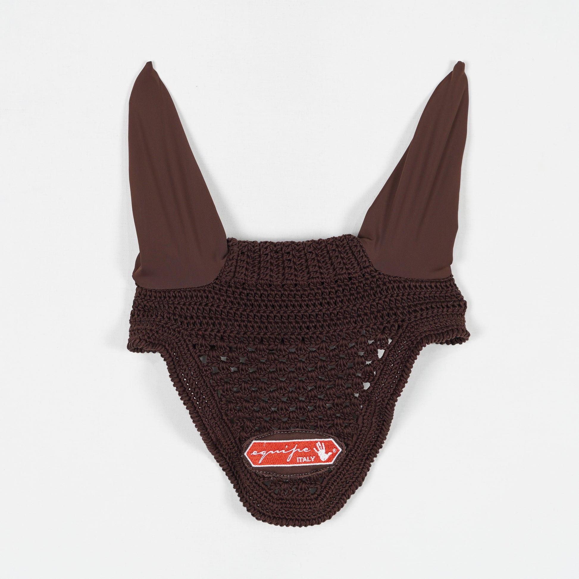 Snygg huva i brun bomull, med tunna stretchiga öron från Equipe.
