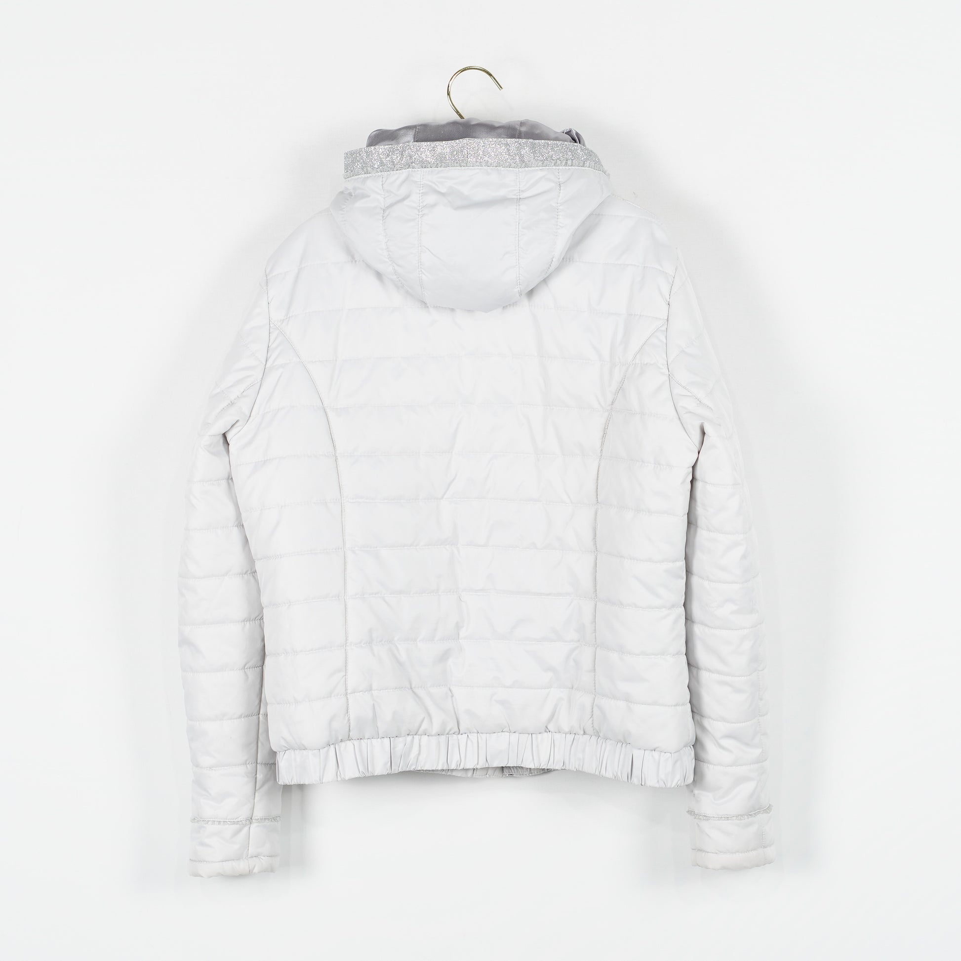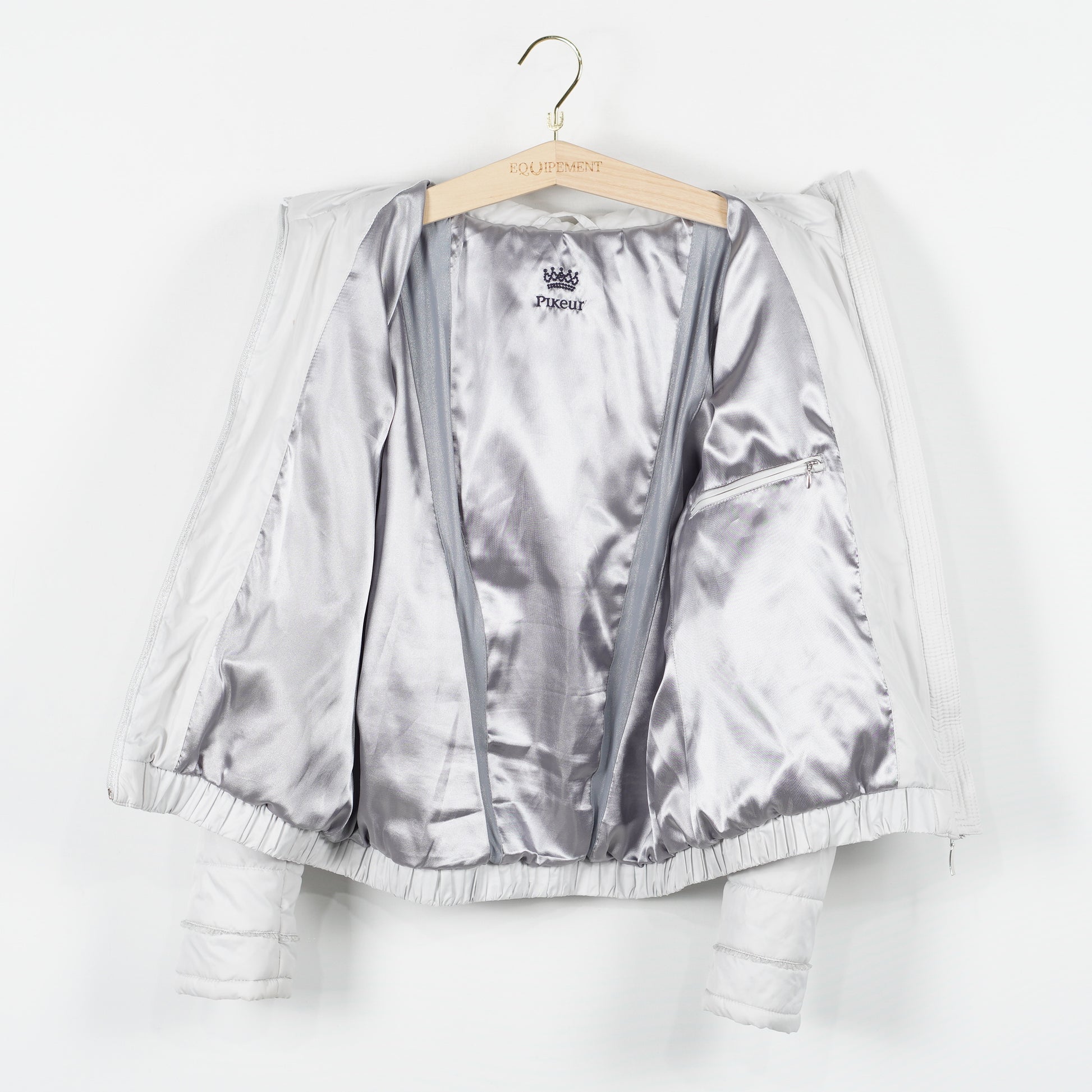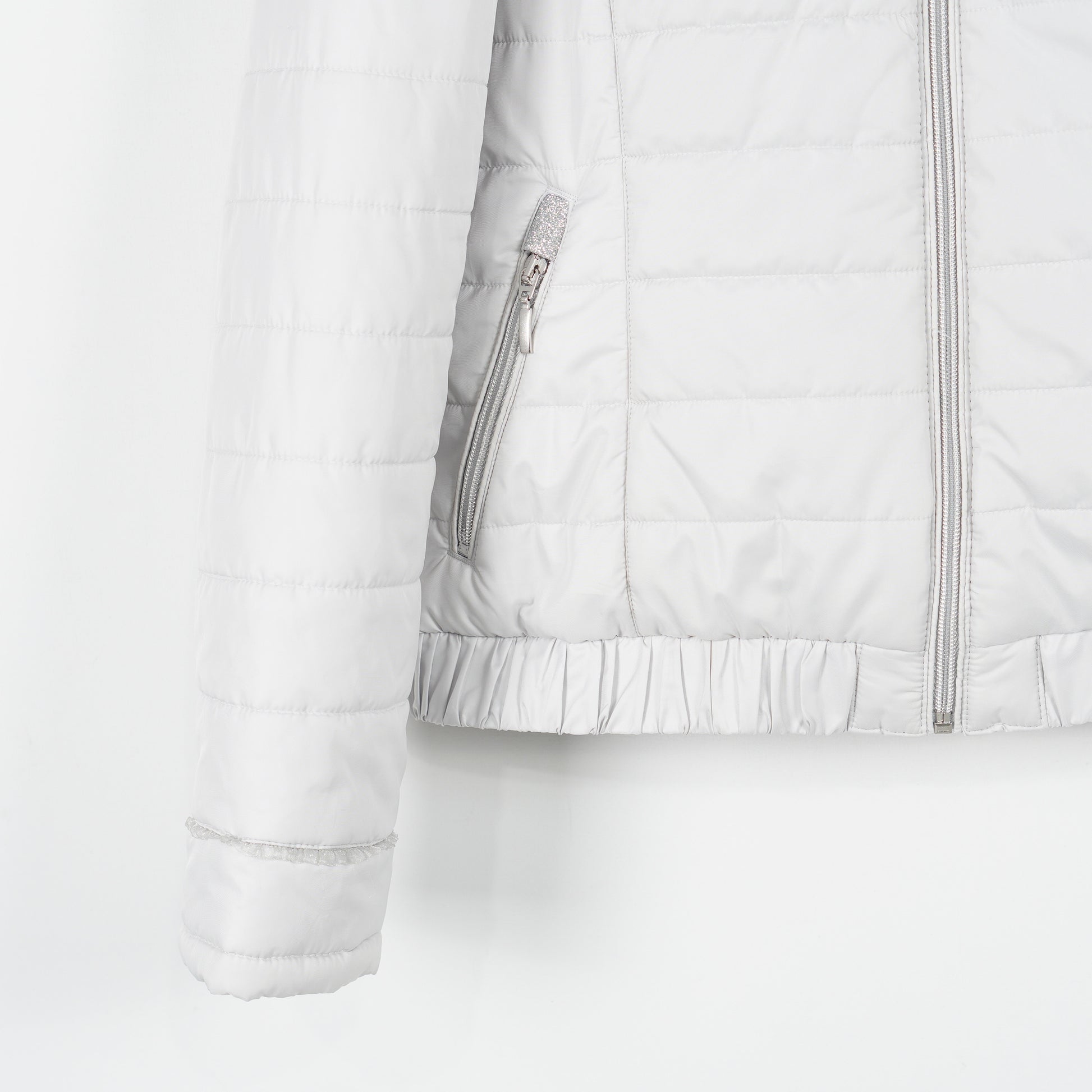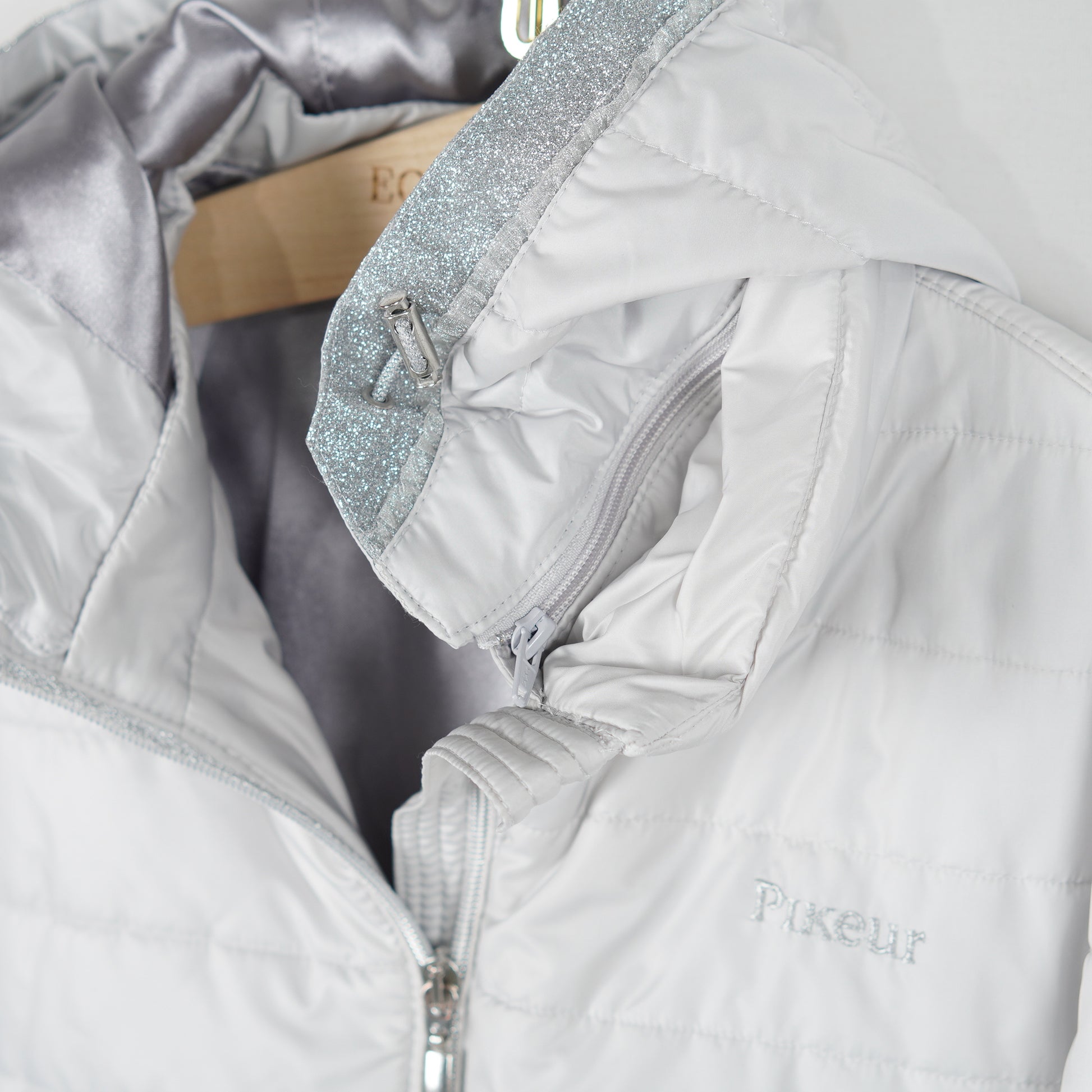 Supersnygg jacka "Unabell" från Pikeur. Jackan är i en ljusgrå/silverfärg med glittriga detaljer och har en avtagbar luva.