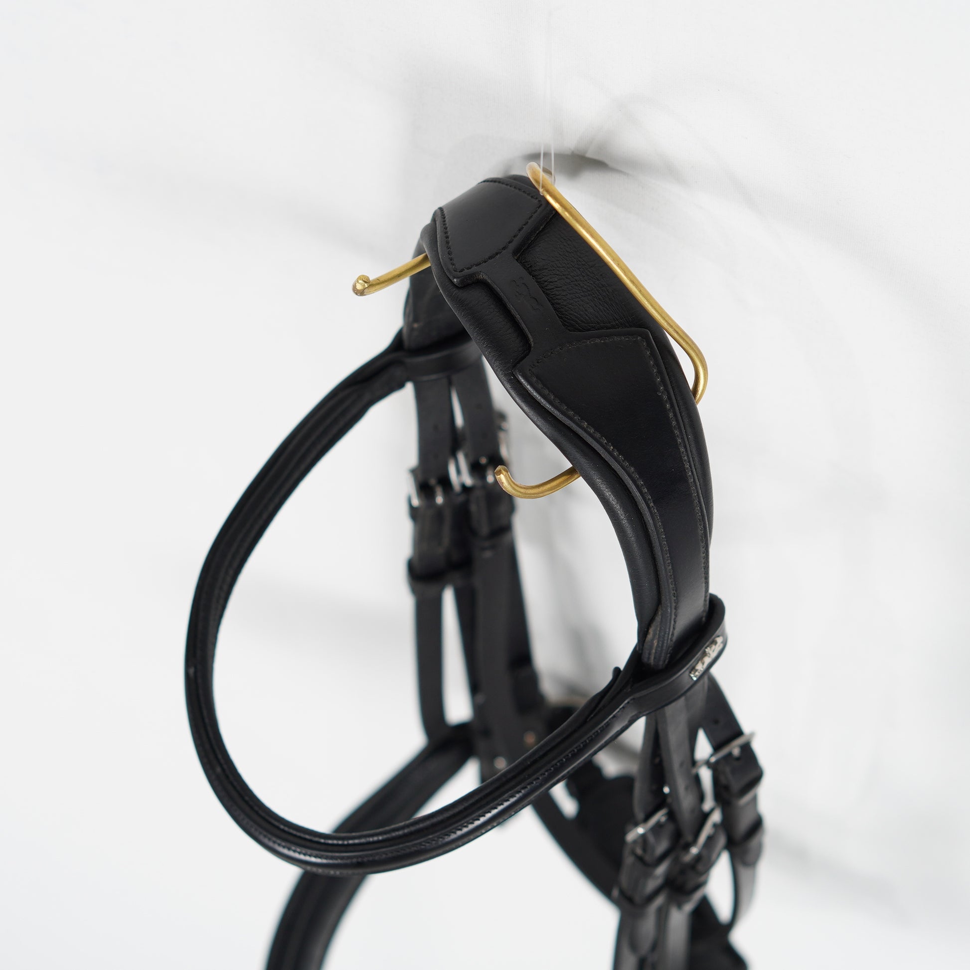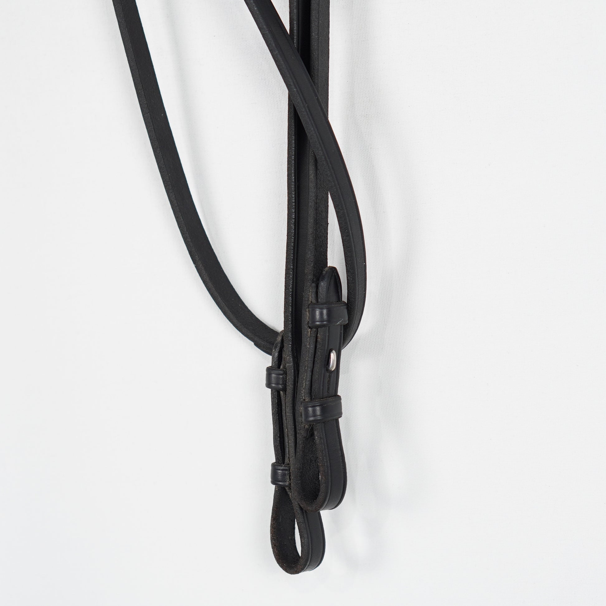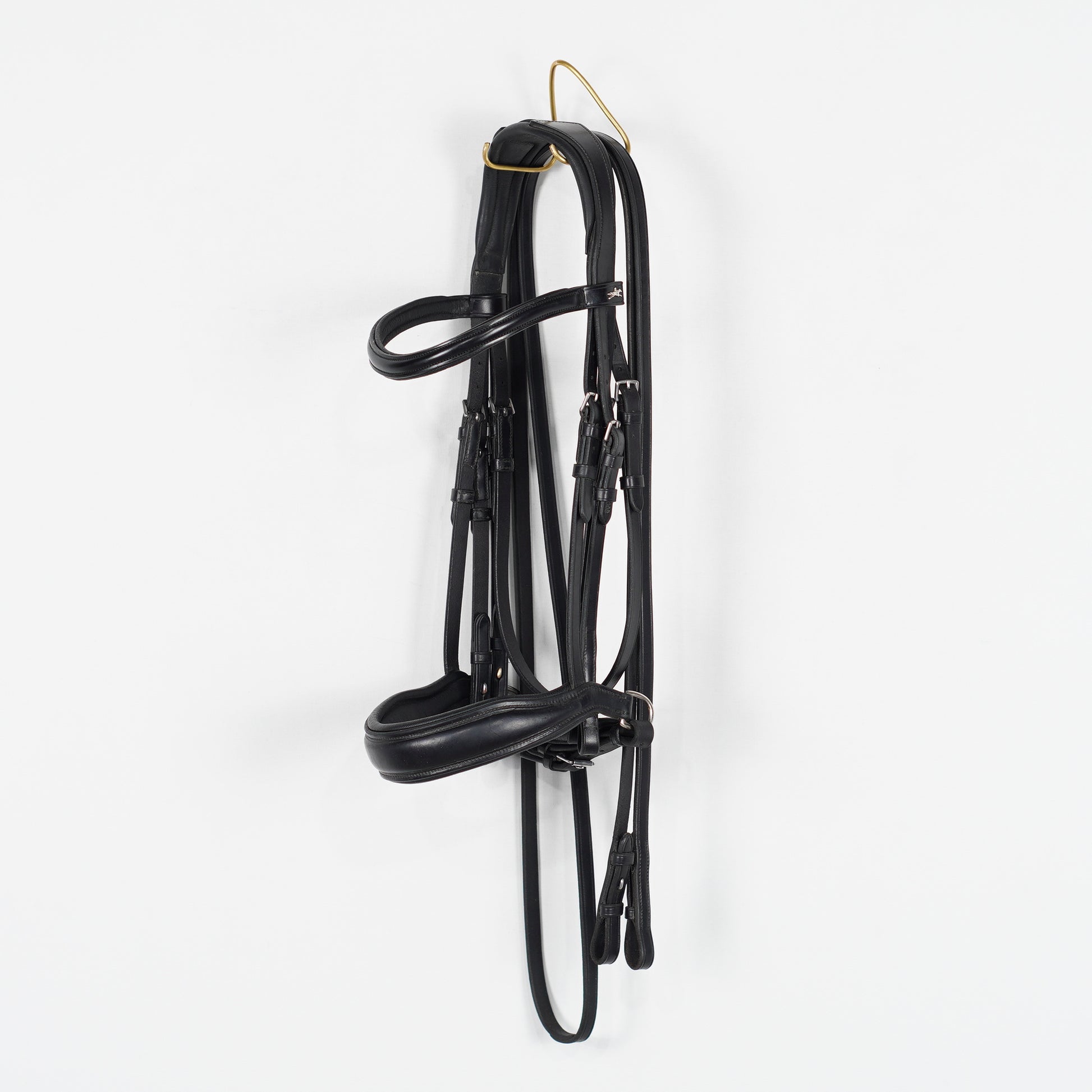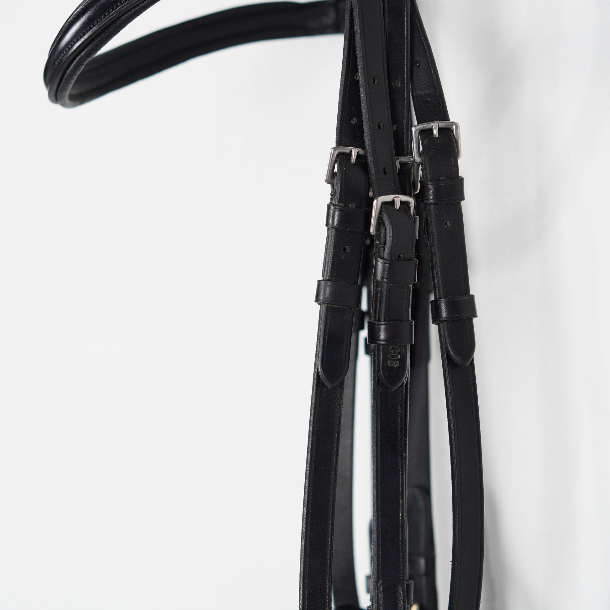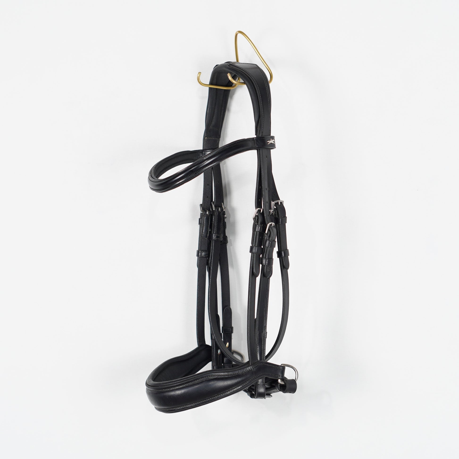 Stilrent kandarträns "Milan" i svart läder från Schockemöhle. Tränset har vadderat nack- och nosstycke samt pullback och är i ett använt men bra skick. Ett litet märke i lädret finns på nosgrimman, se bild. Tränset kommer även med matchande bridongtygel i svart läder.