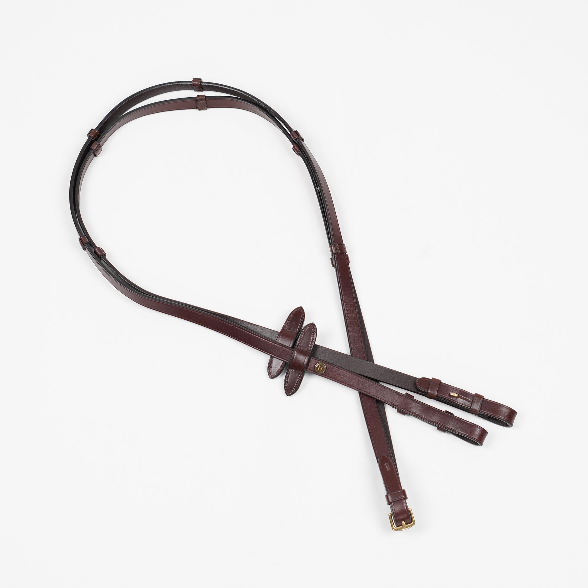 Delbar lädertygel med guldfärgat spänne från JH Collection.