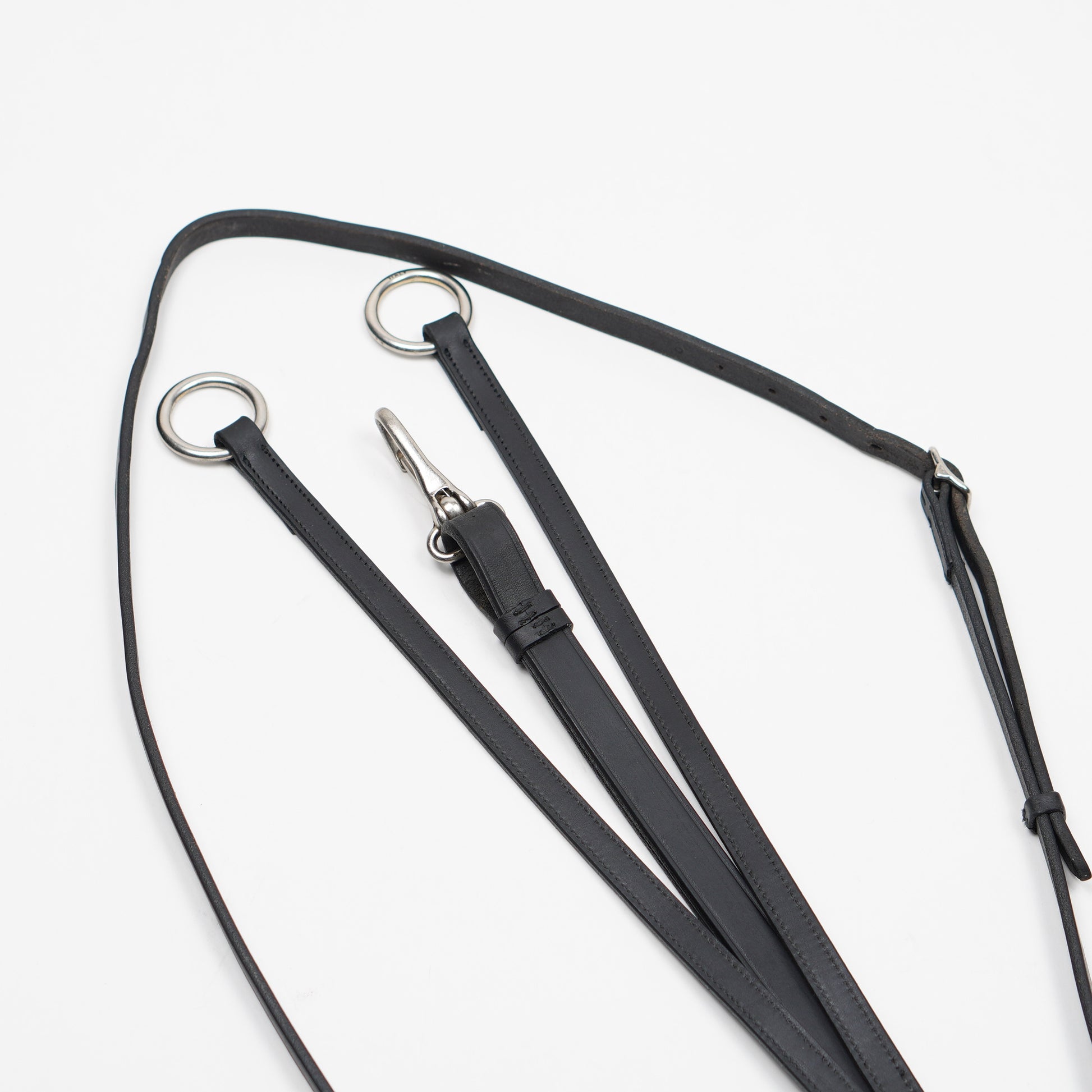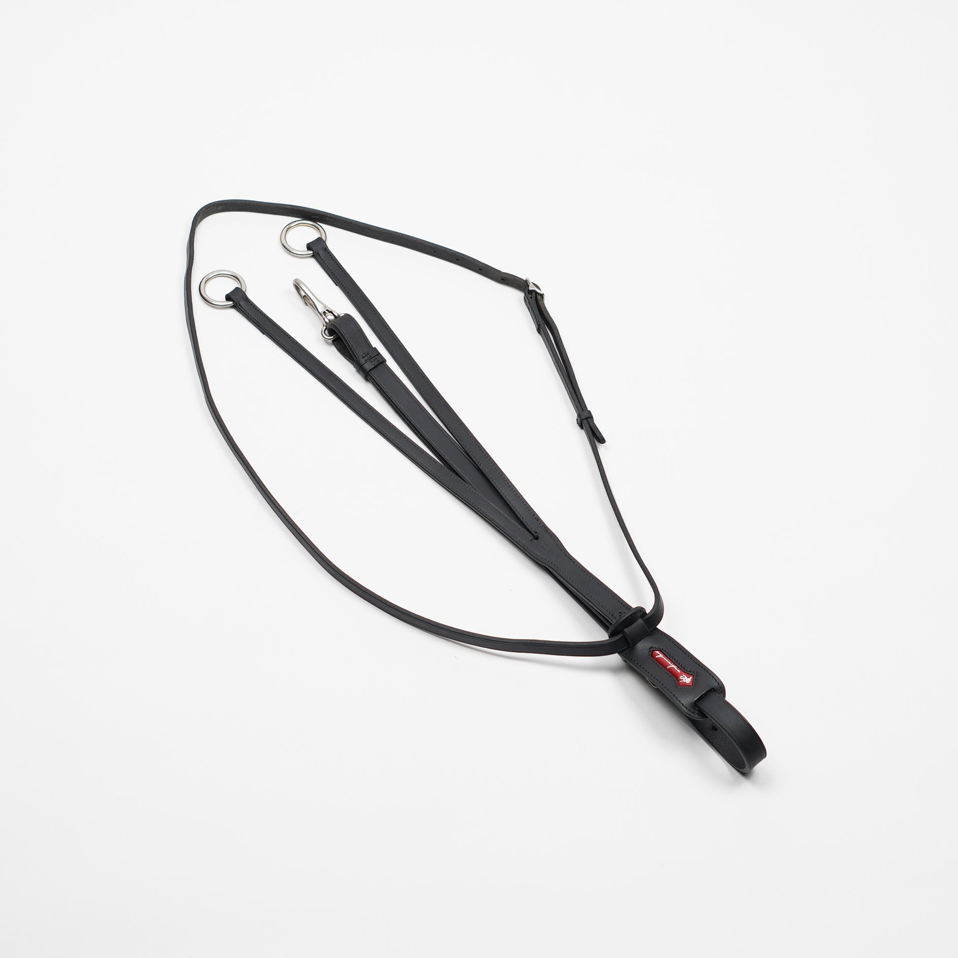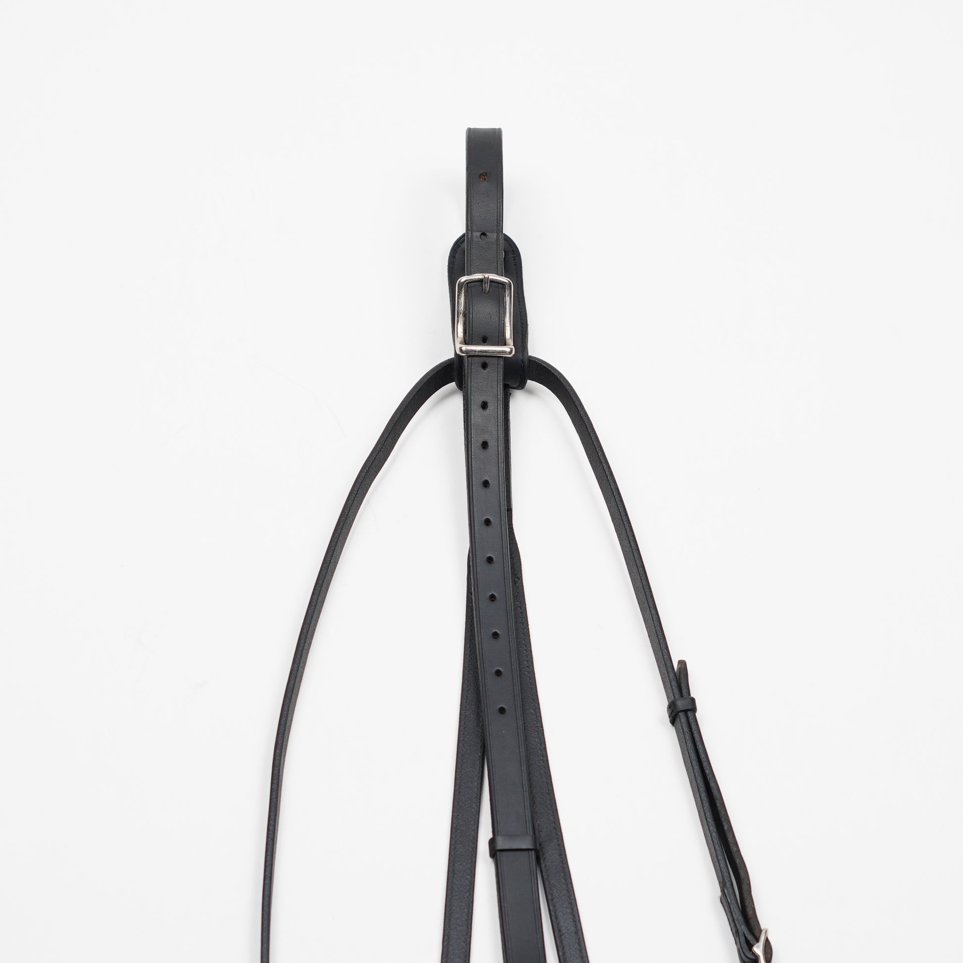 Klassisk martingal i svart läder med snabbhake att fästa i sadelgjorden, från Equipe.