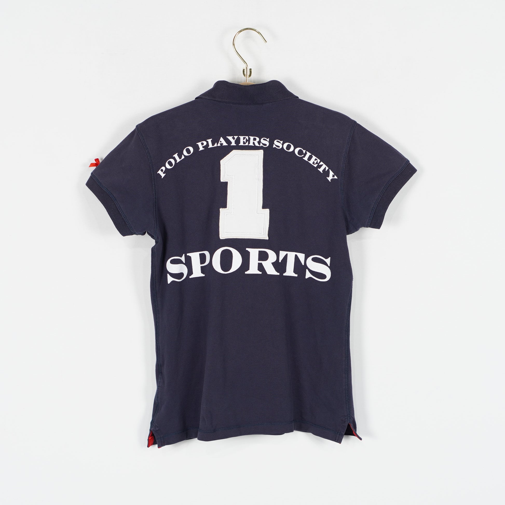 Blå pikétröja i bomull med nummer 1 på bröst och rygg från HV Polo.