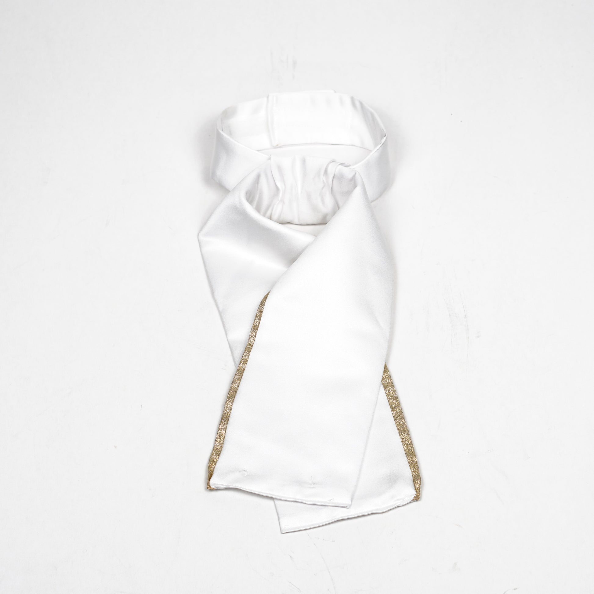 Fin plastrong i elegant stil med guldfärgad kant. Kan dekoreras med egen plastrongnål eller brosch för att få lite extra bling.