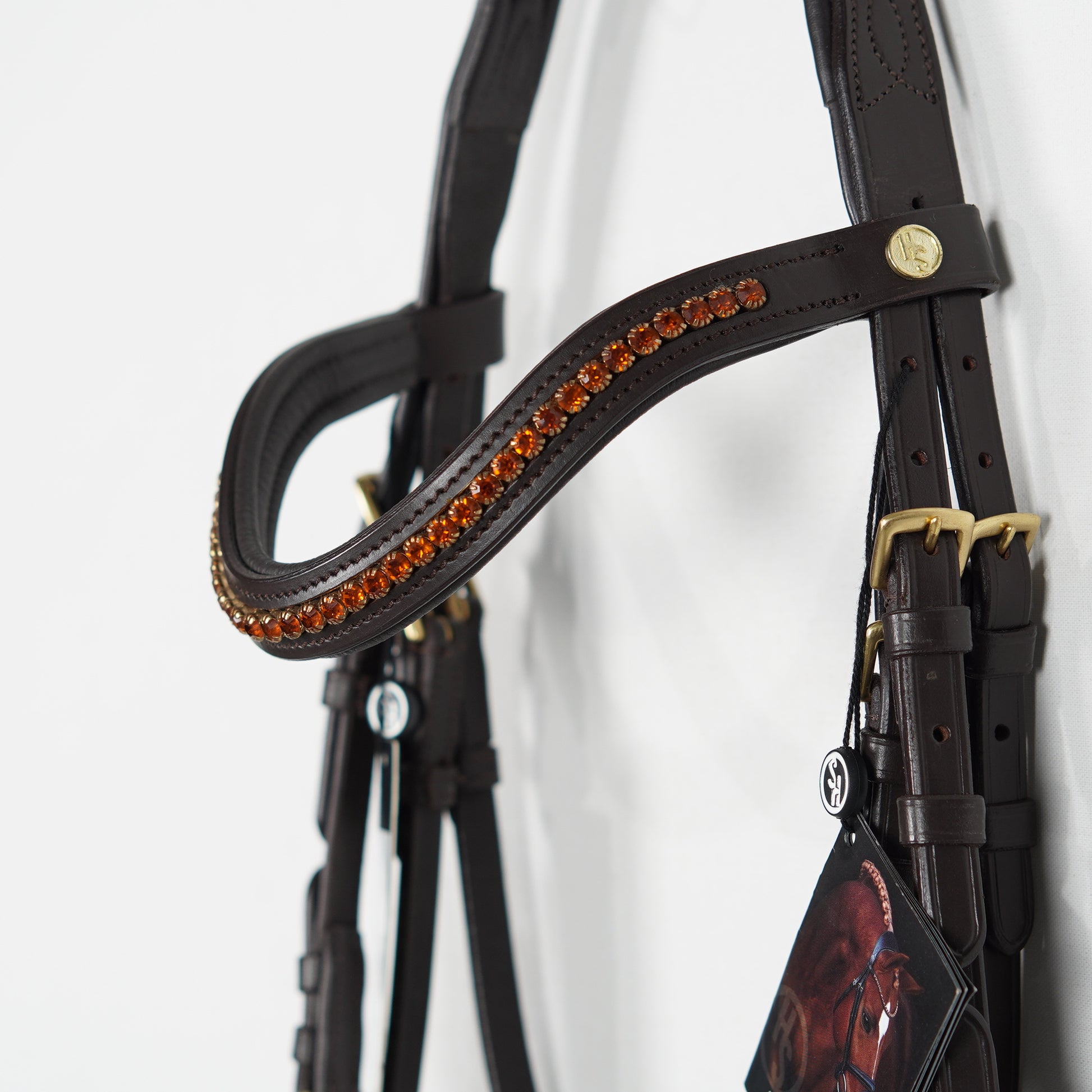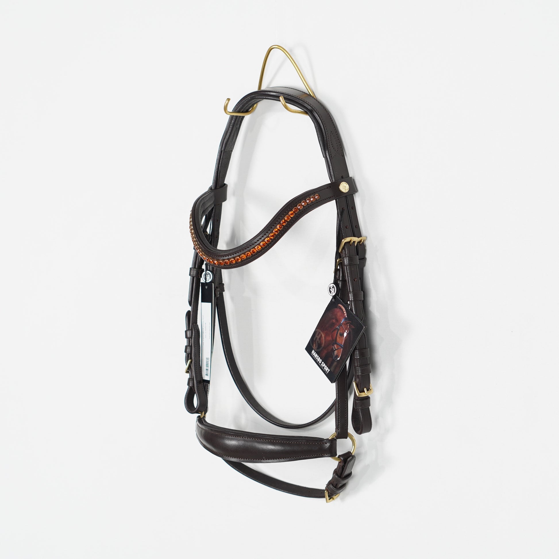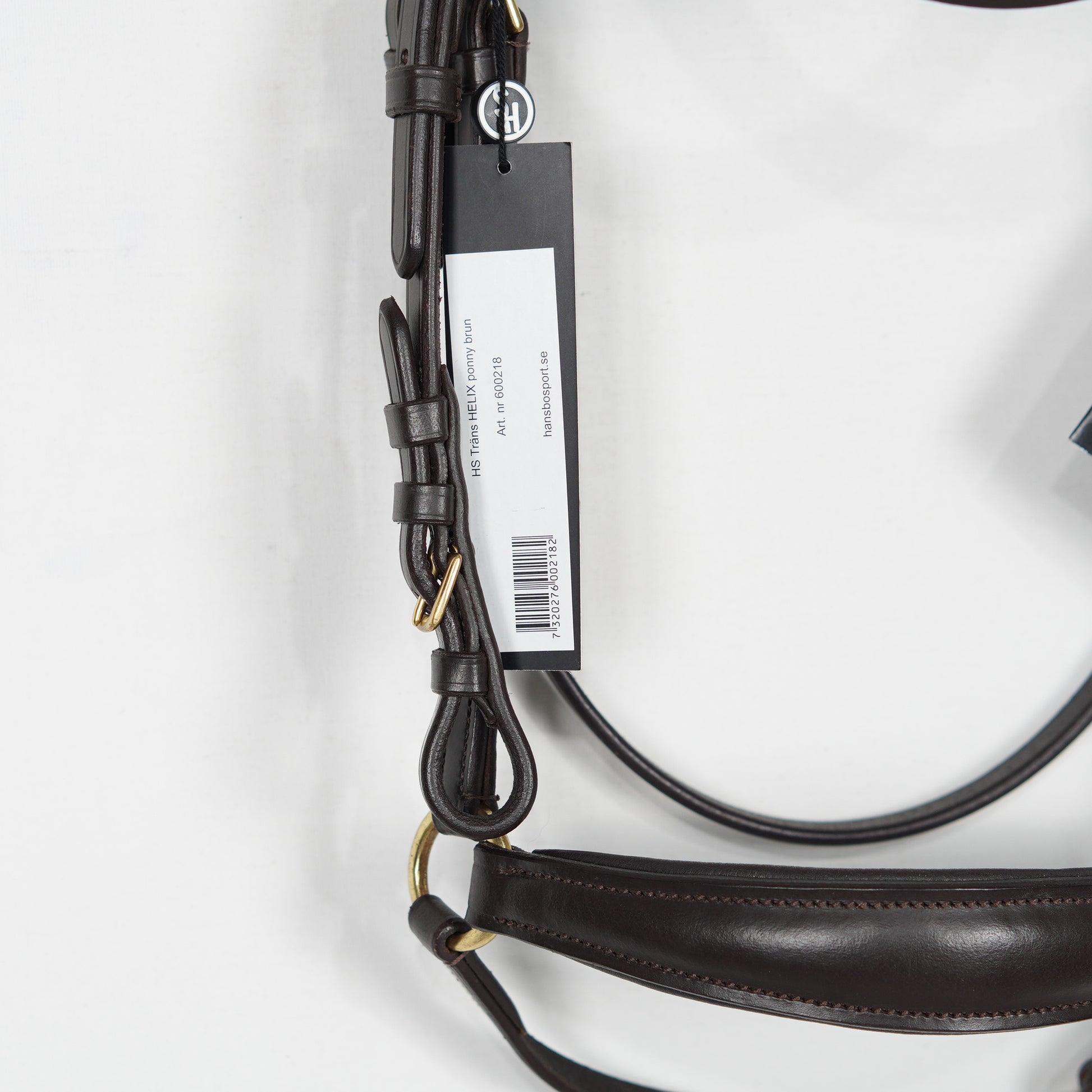 Träns "Helix" i brunt läder med remontnosgrimma och bling på pannbandet från Hansbo Sport. Tränset är i nyskick med tags kvar!