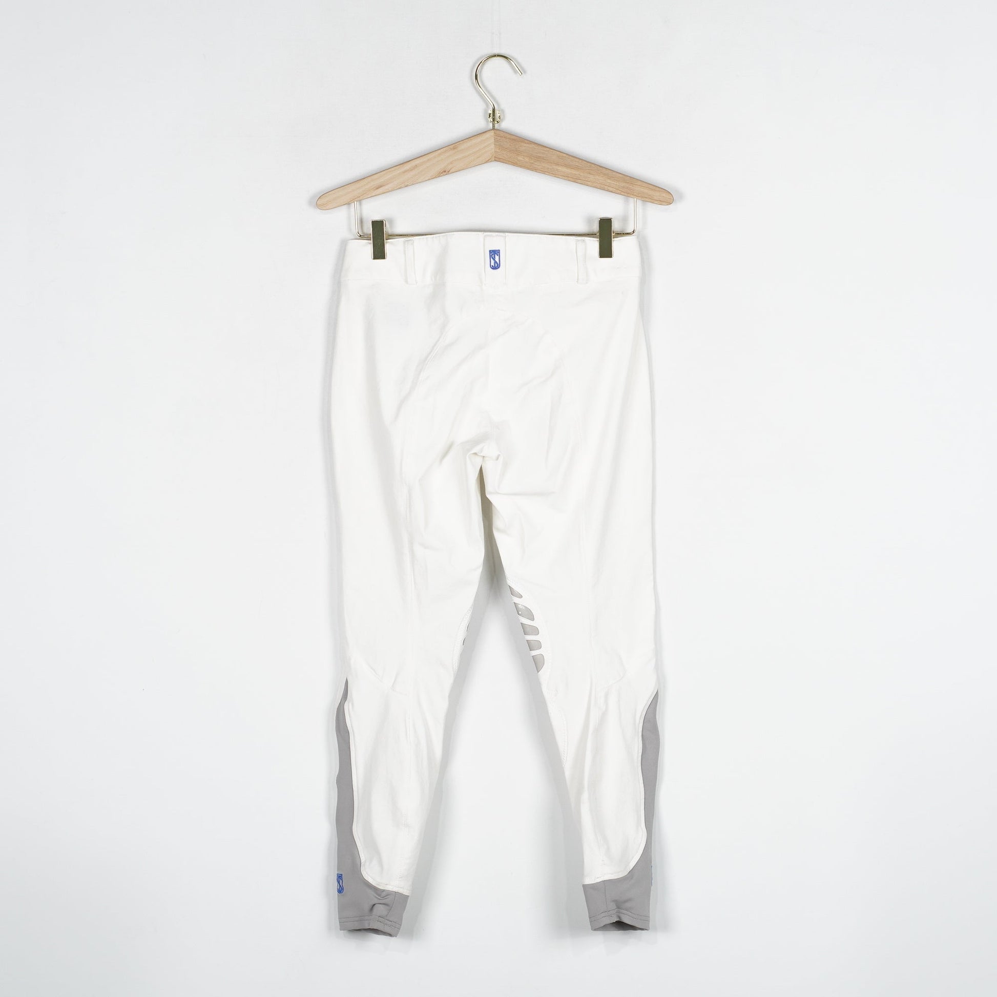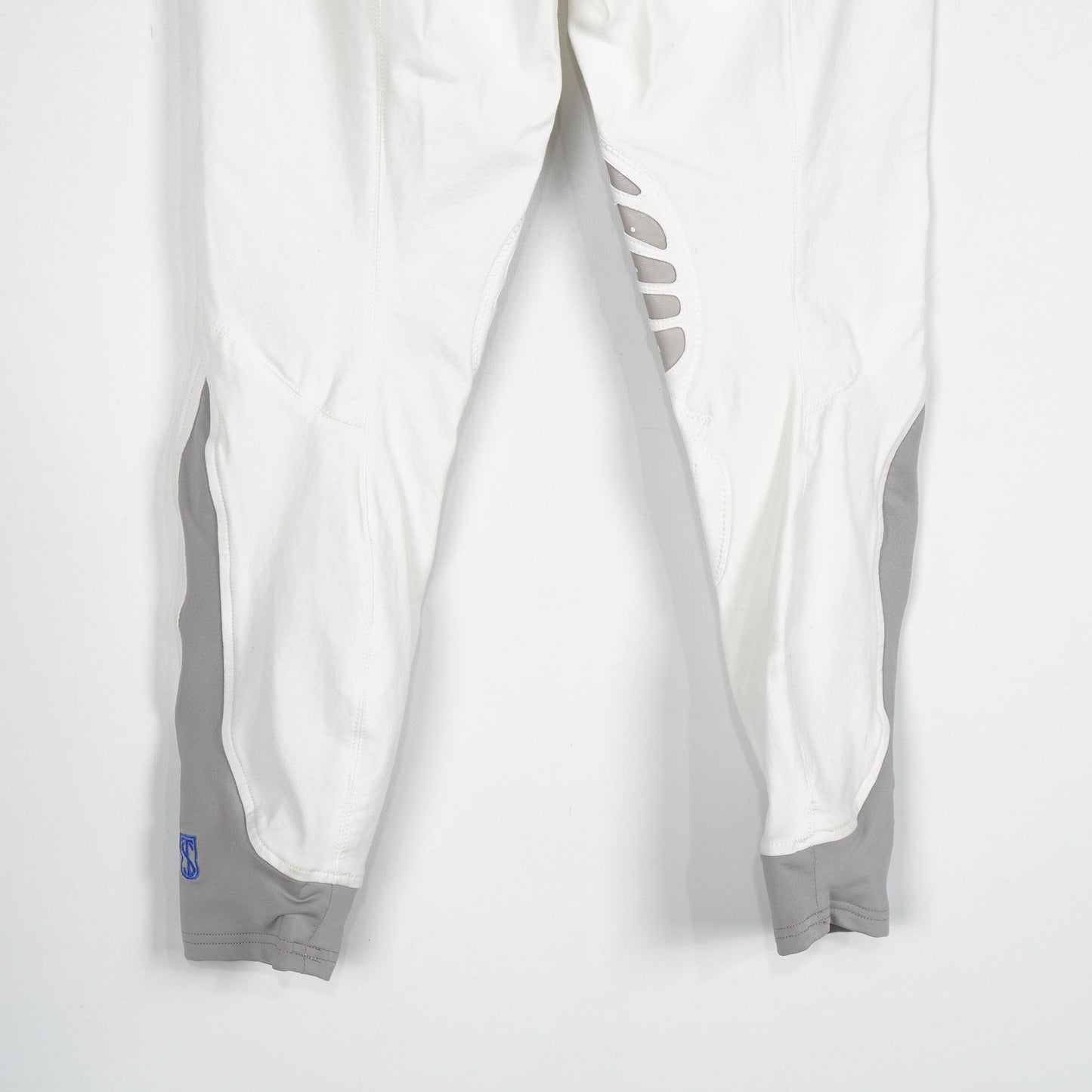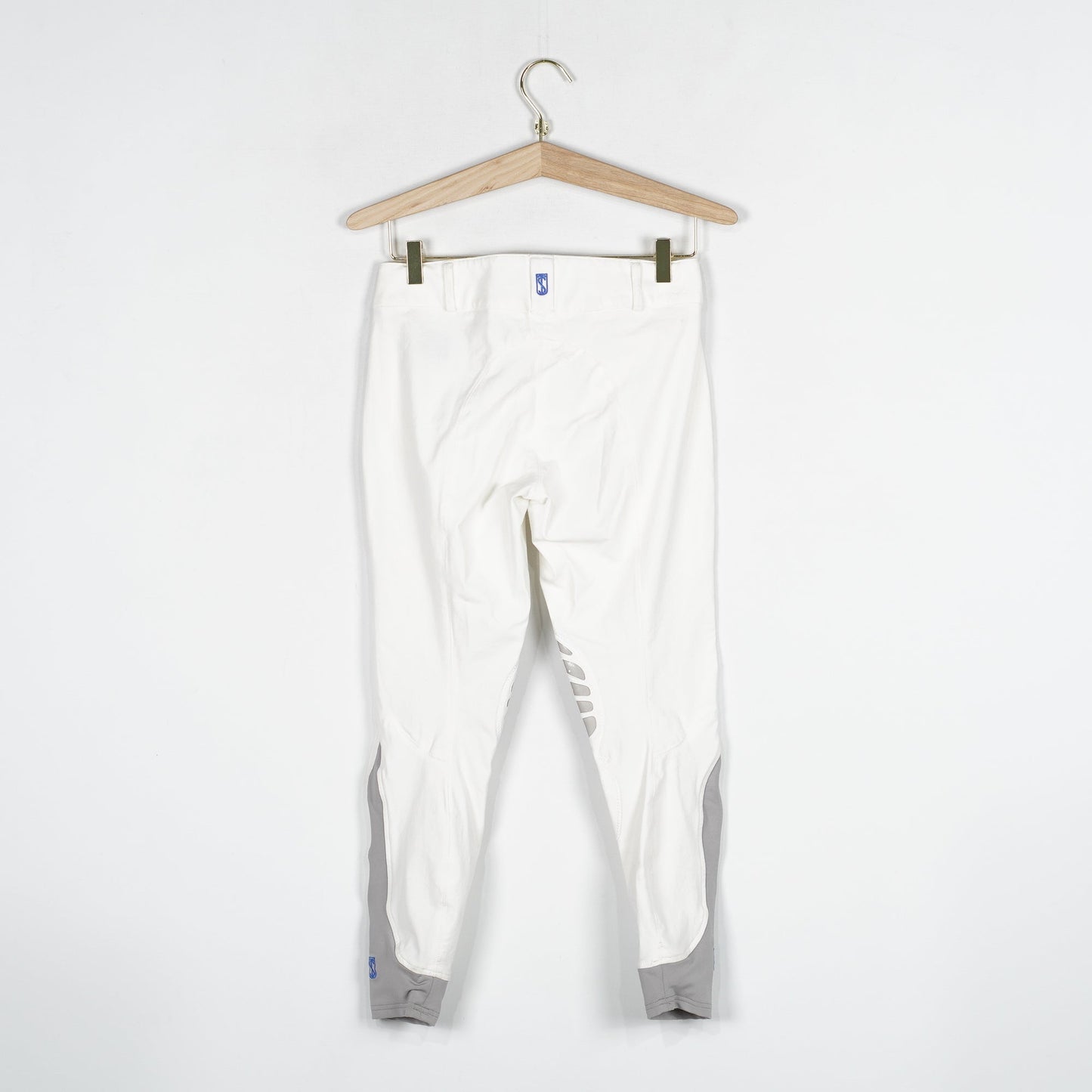 Vita ridbyxor halvskodda med både silikon och syntetmocka från Symphony by Tredstep. Ridbyxorna har en låg midja, elastiskt benslut och är i ett oanvänt skick.