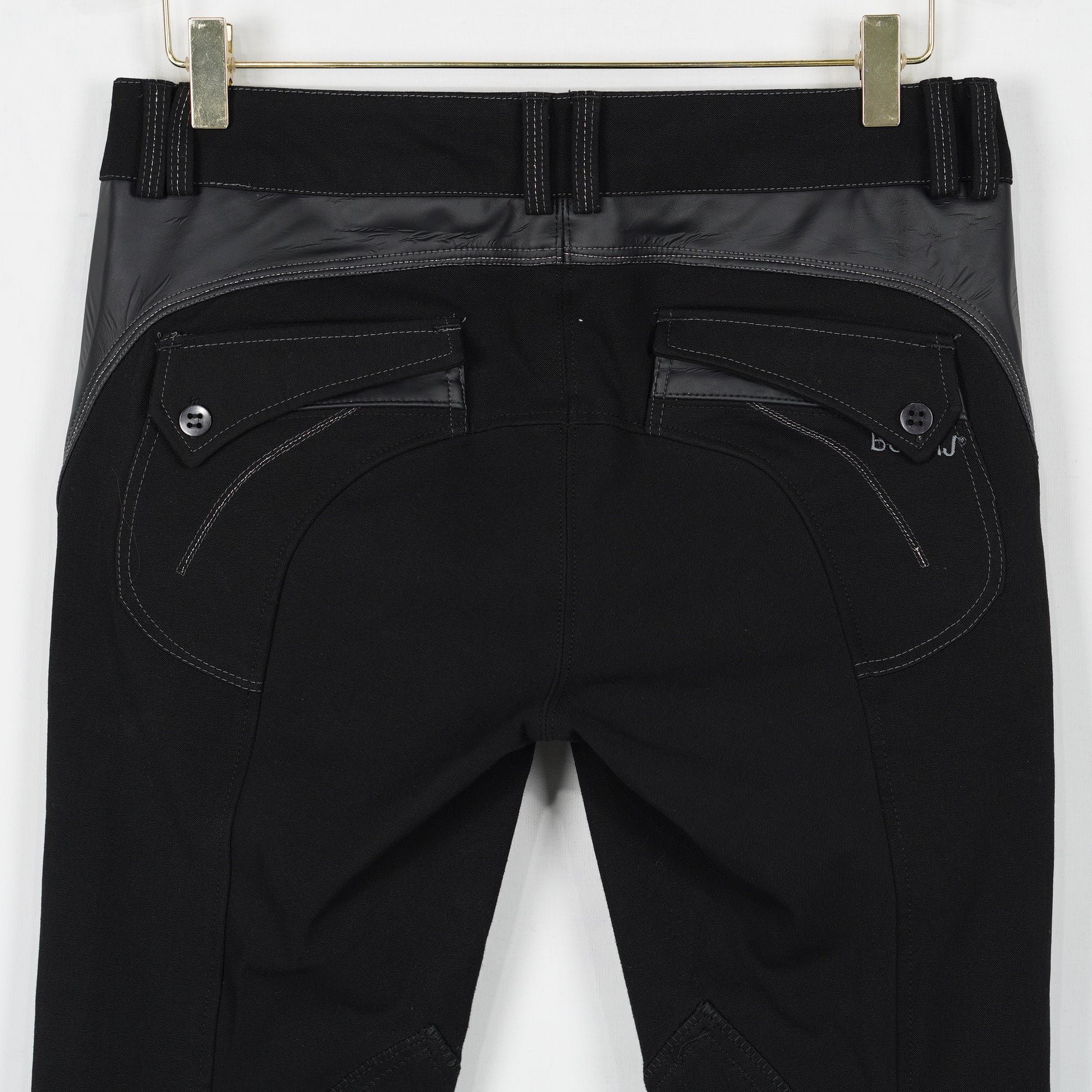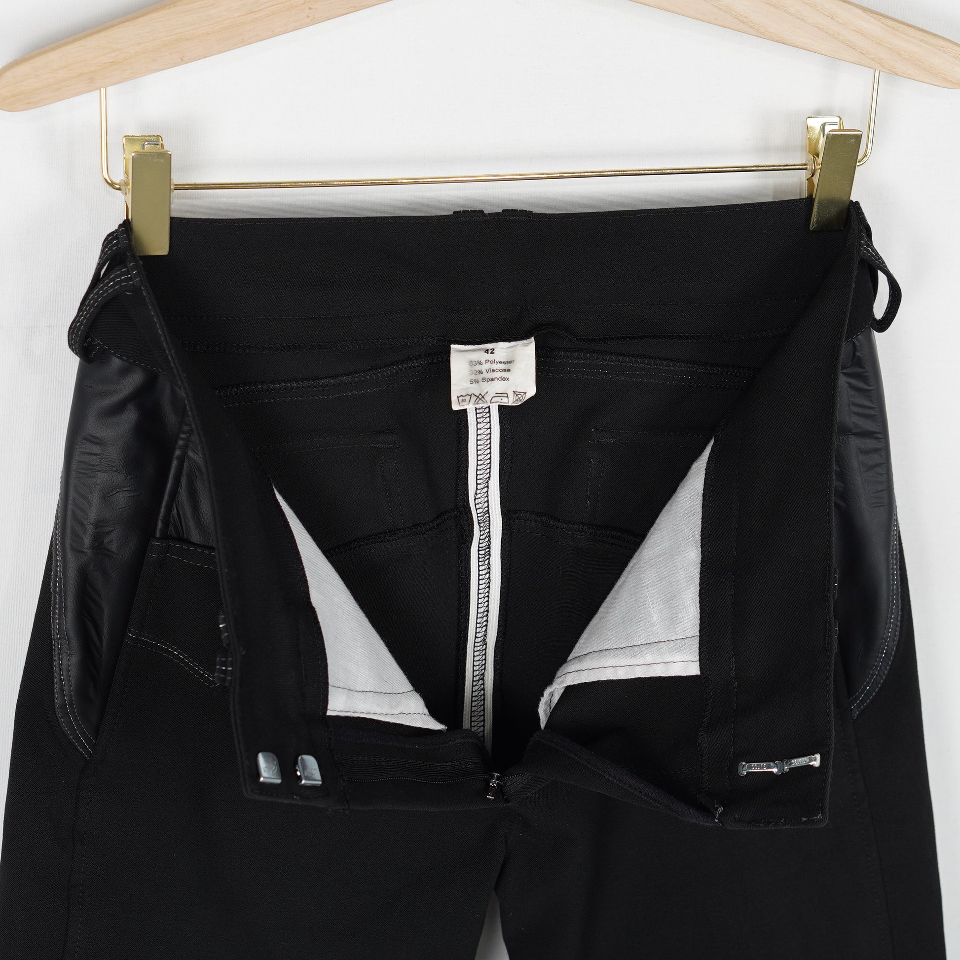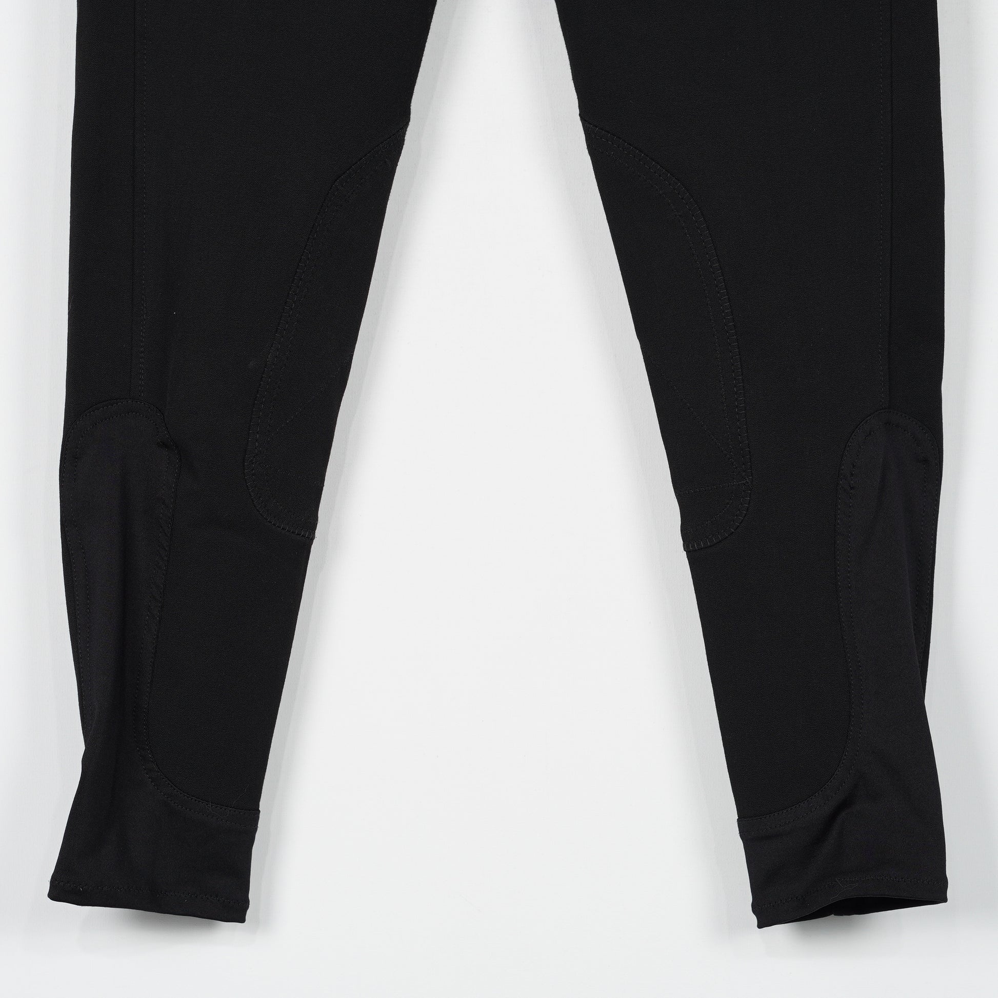Svarta oskodda ridbyxor med knäförstärkning och elastiska benslut från Globus. Byxorna har även en söt katt broderad på framsidan, se bild.