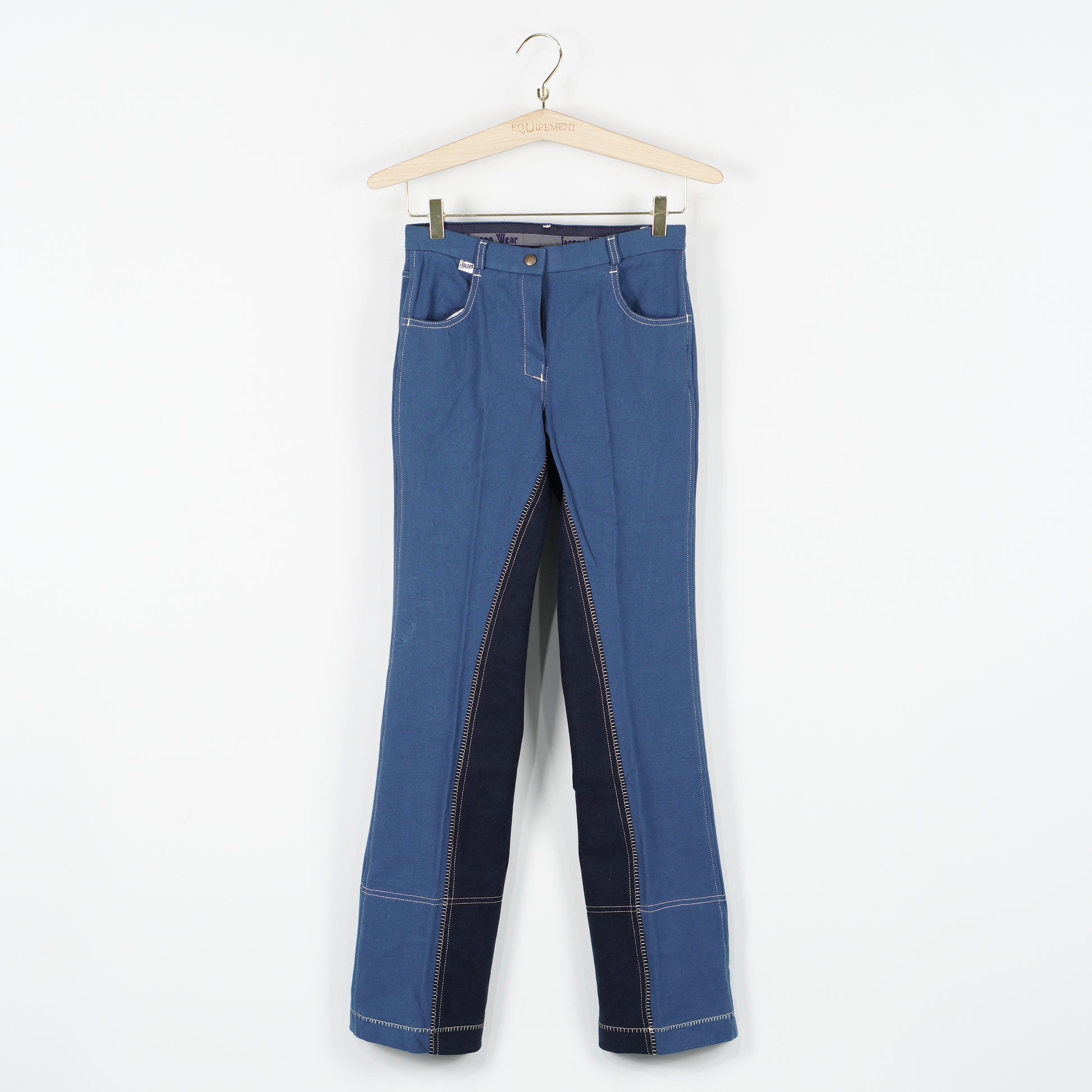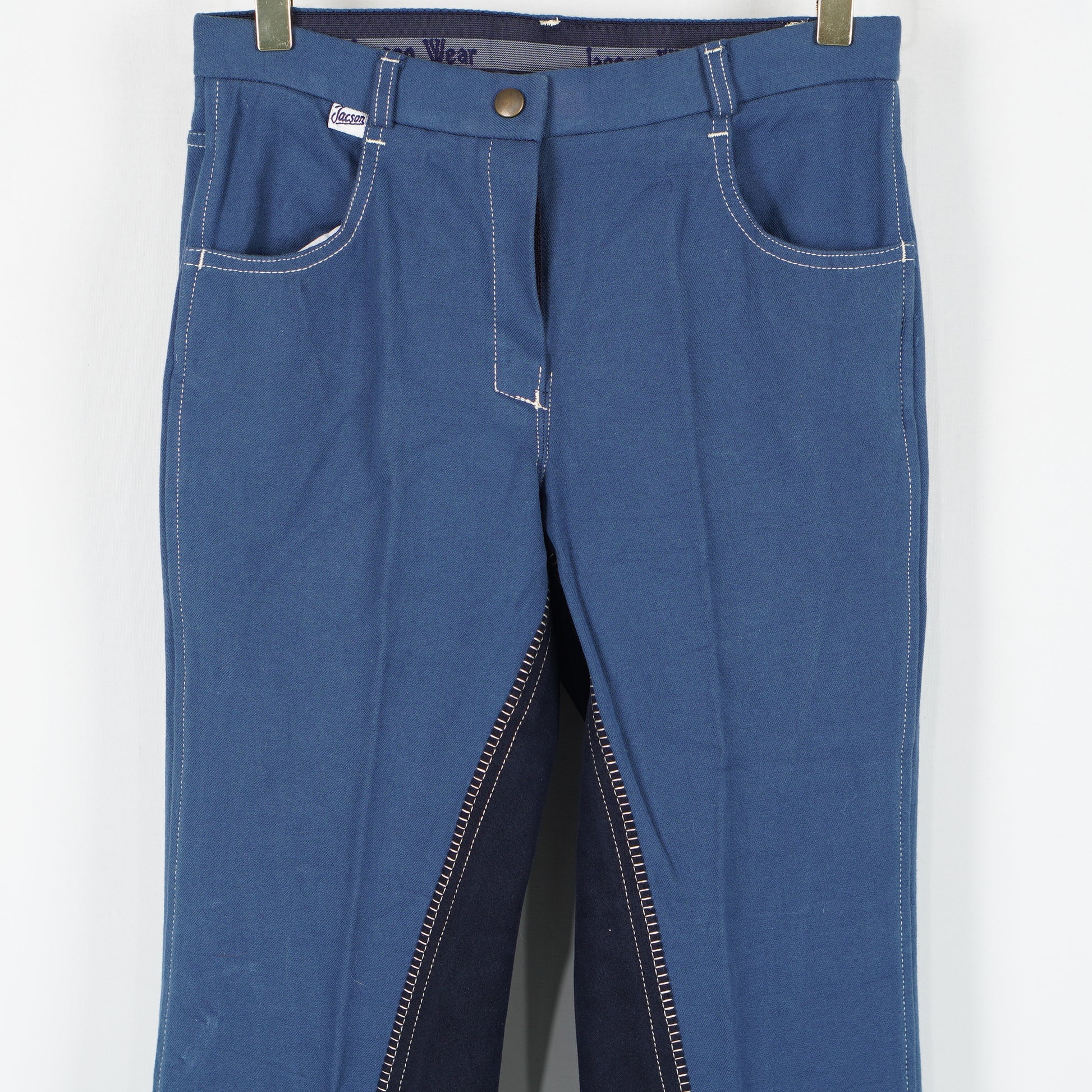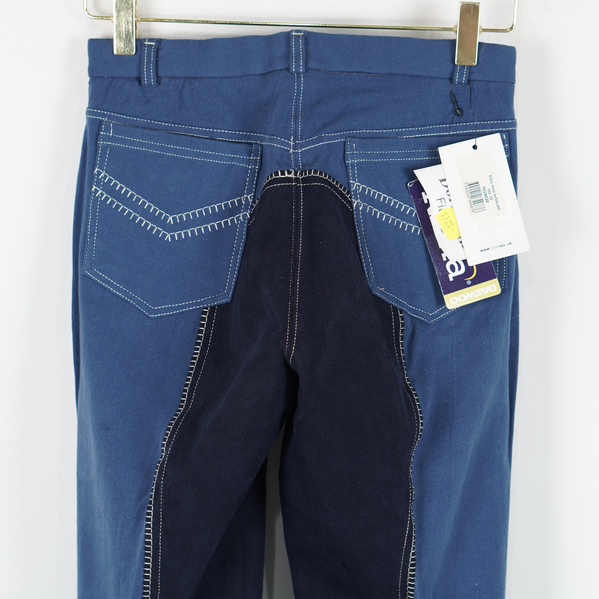 Oanvända ridbyxor i blått, helskodda med syntetmocka, utsvängda ben med elastisk jodhpur från Jacson.