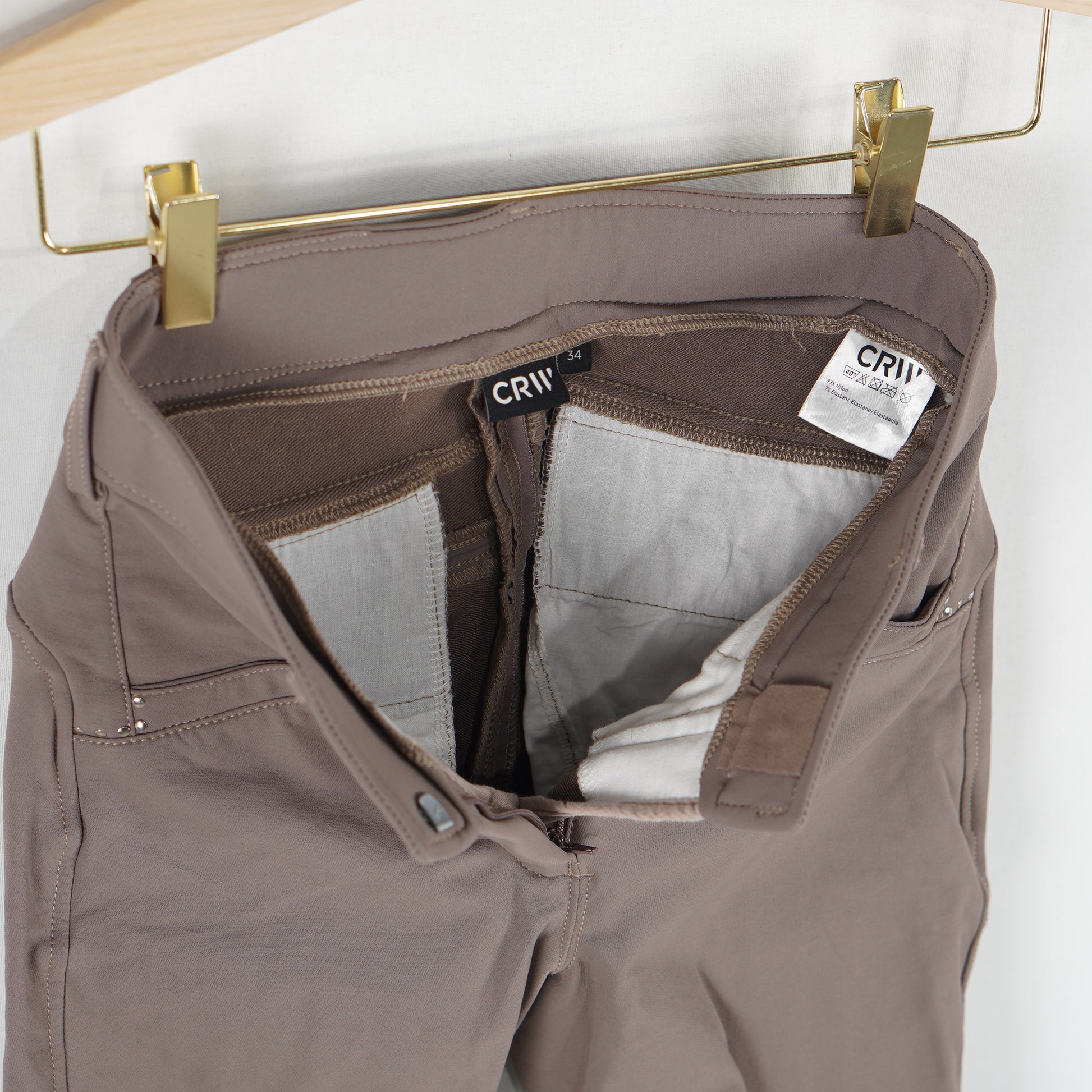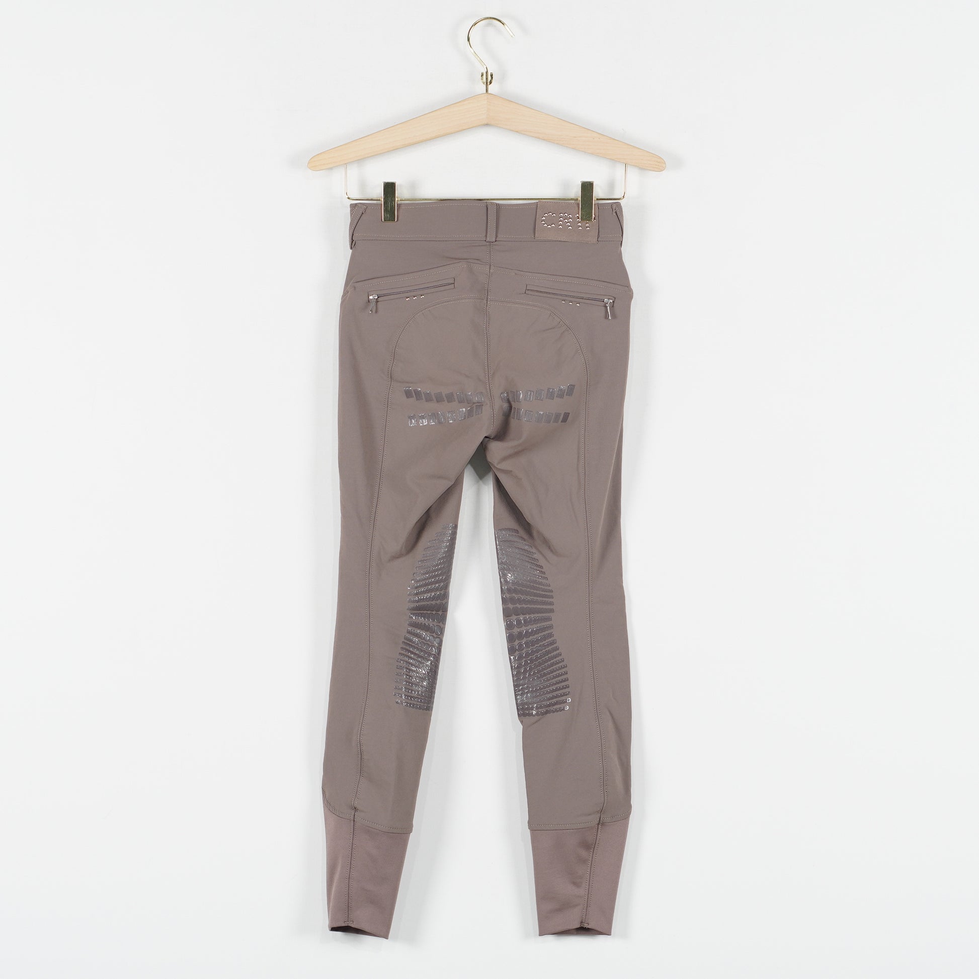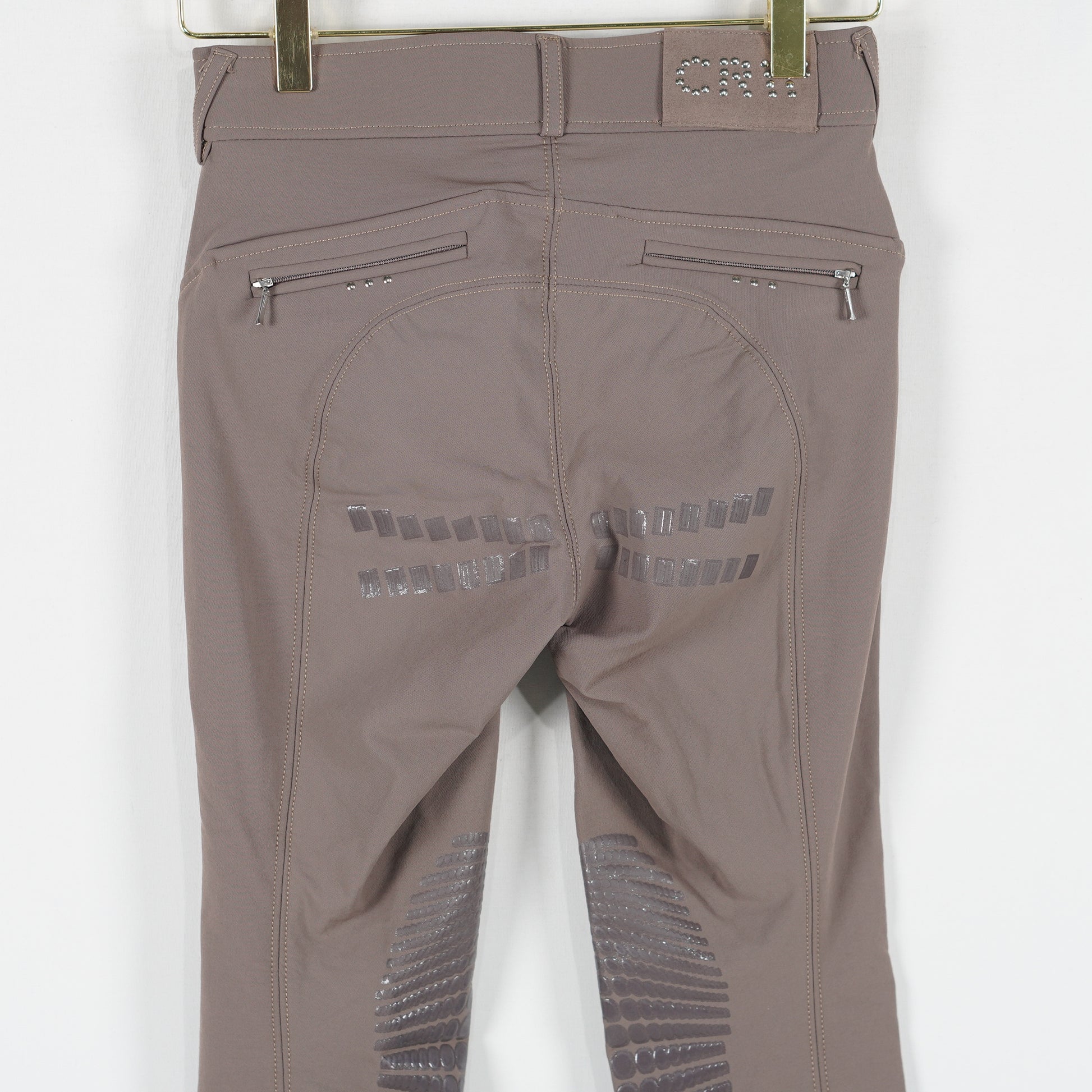 CRW´s populära ridbyxa Hahn i brunt, helskodd med silikon och snygga silverfärgade nitar. Ridbyxorna är i ett mycket sparsamt använt skick.