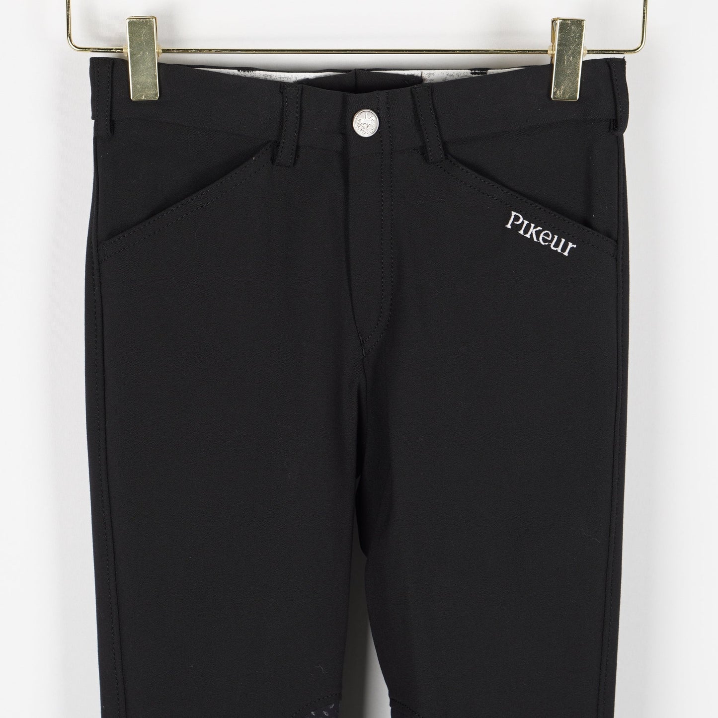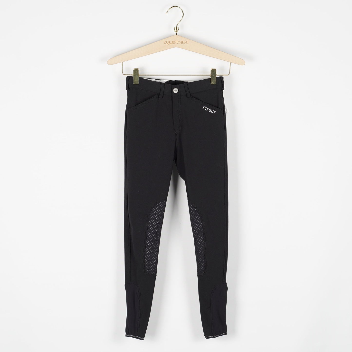 Svarta ridbyxor från Pikeur, modell Brooklyn med silikon grip på insida knä. För junioren. Ridbyxorna är oanvända med tags kvar.