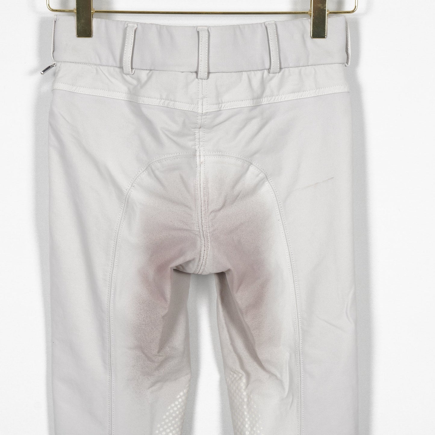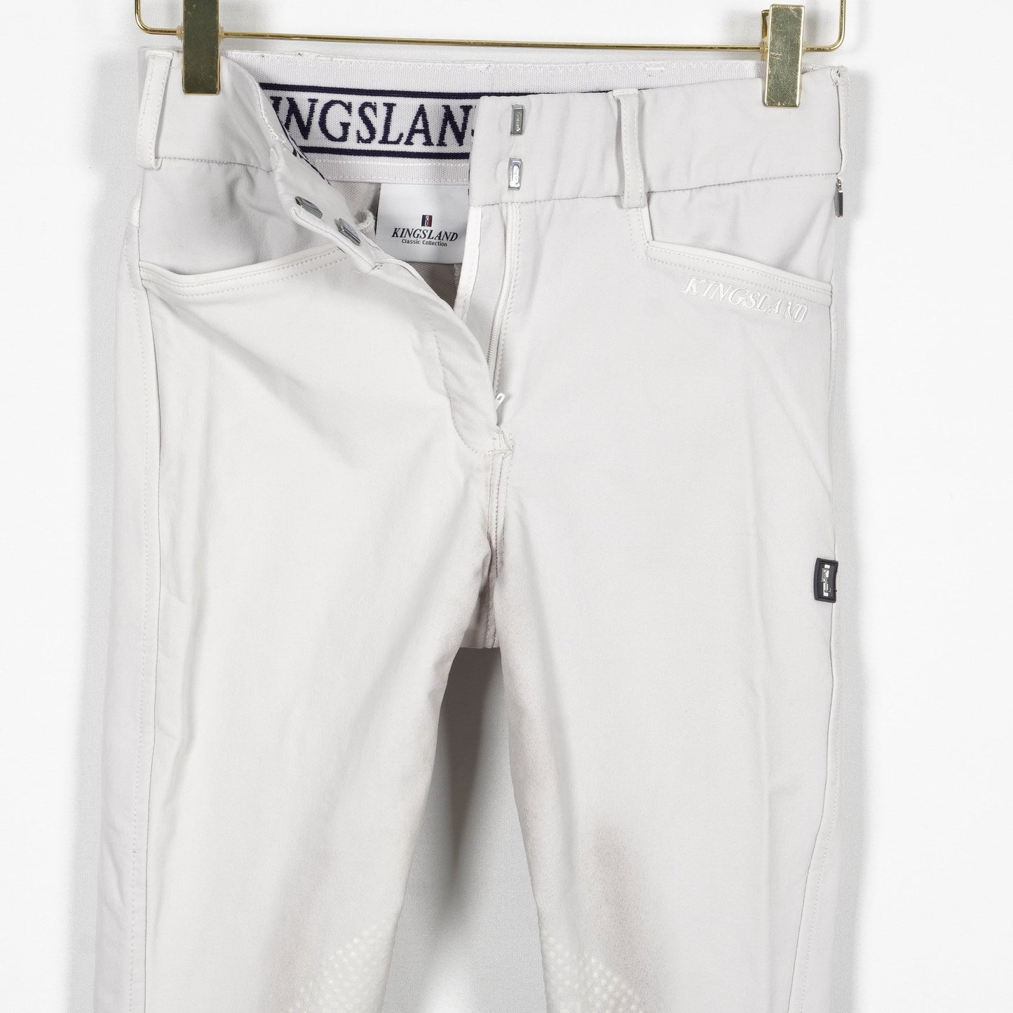 Vita, halvskodda ridbyxor från Kingsland med silikon grip. Missfärgning kvar från sadeln som inte gått bort, annars är ridbyxorna i ett bra skick.