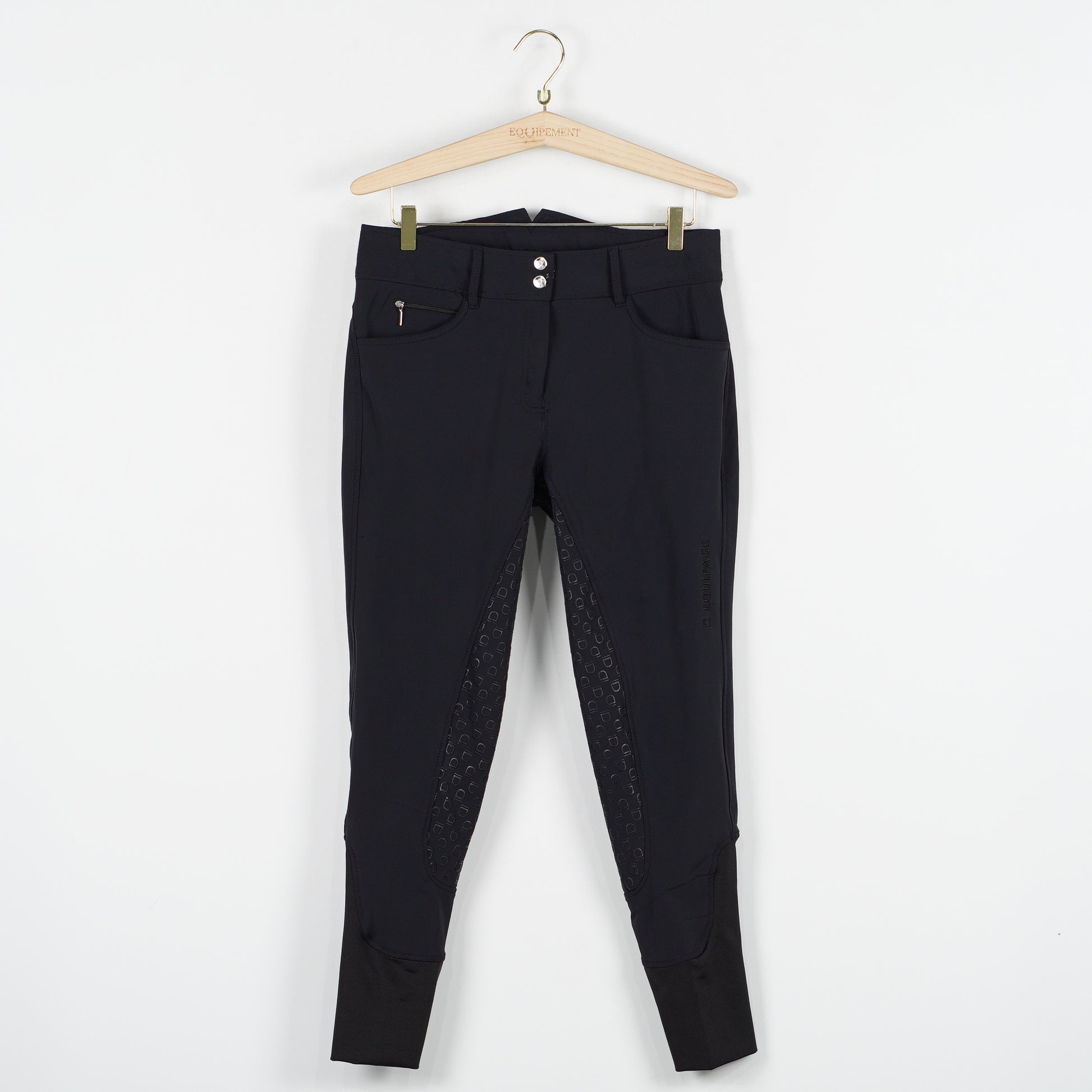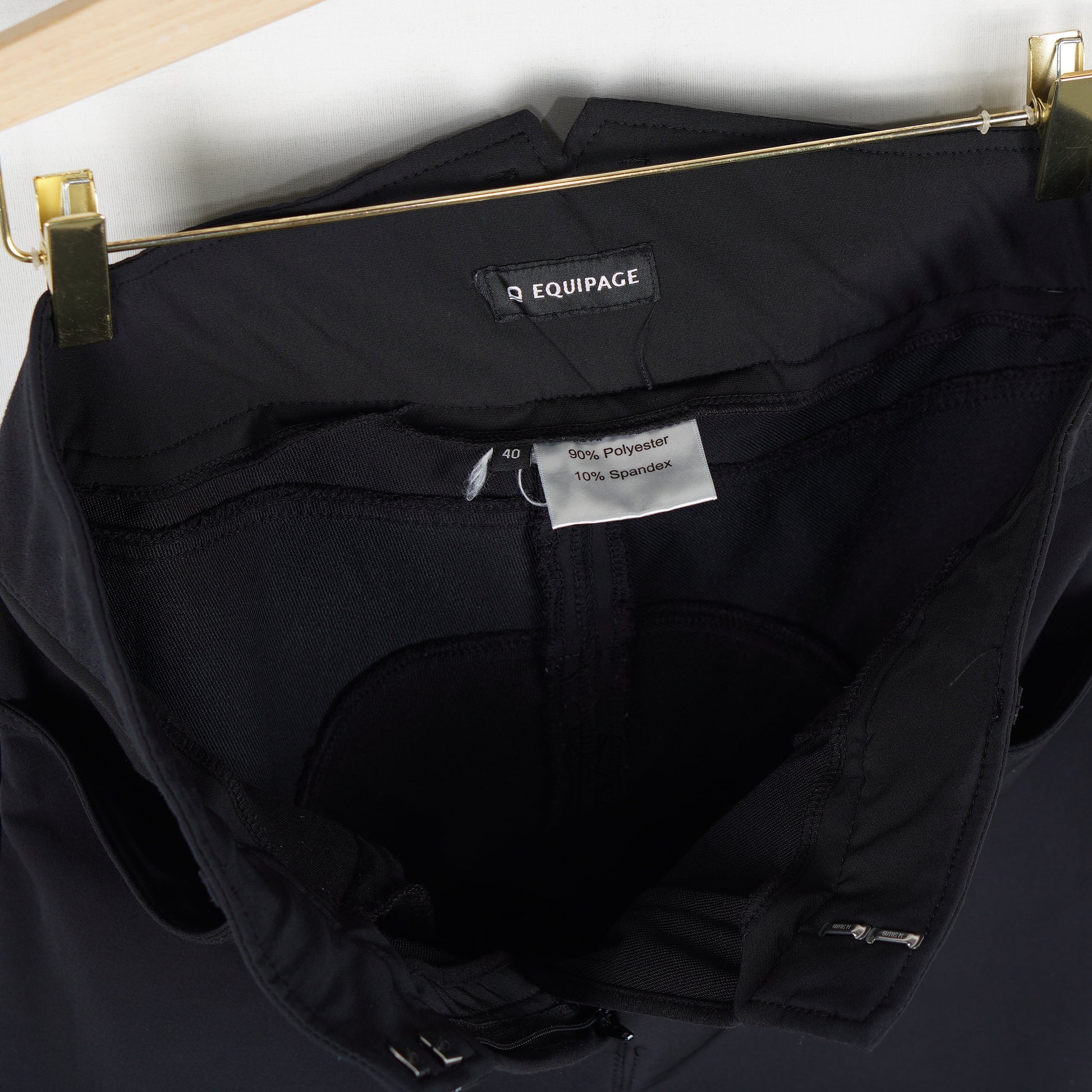 Svarta helskodda ridbyxor med hög midja och elastiskt benslut från Equipage. Lite noppigt runt midjebandet.