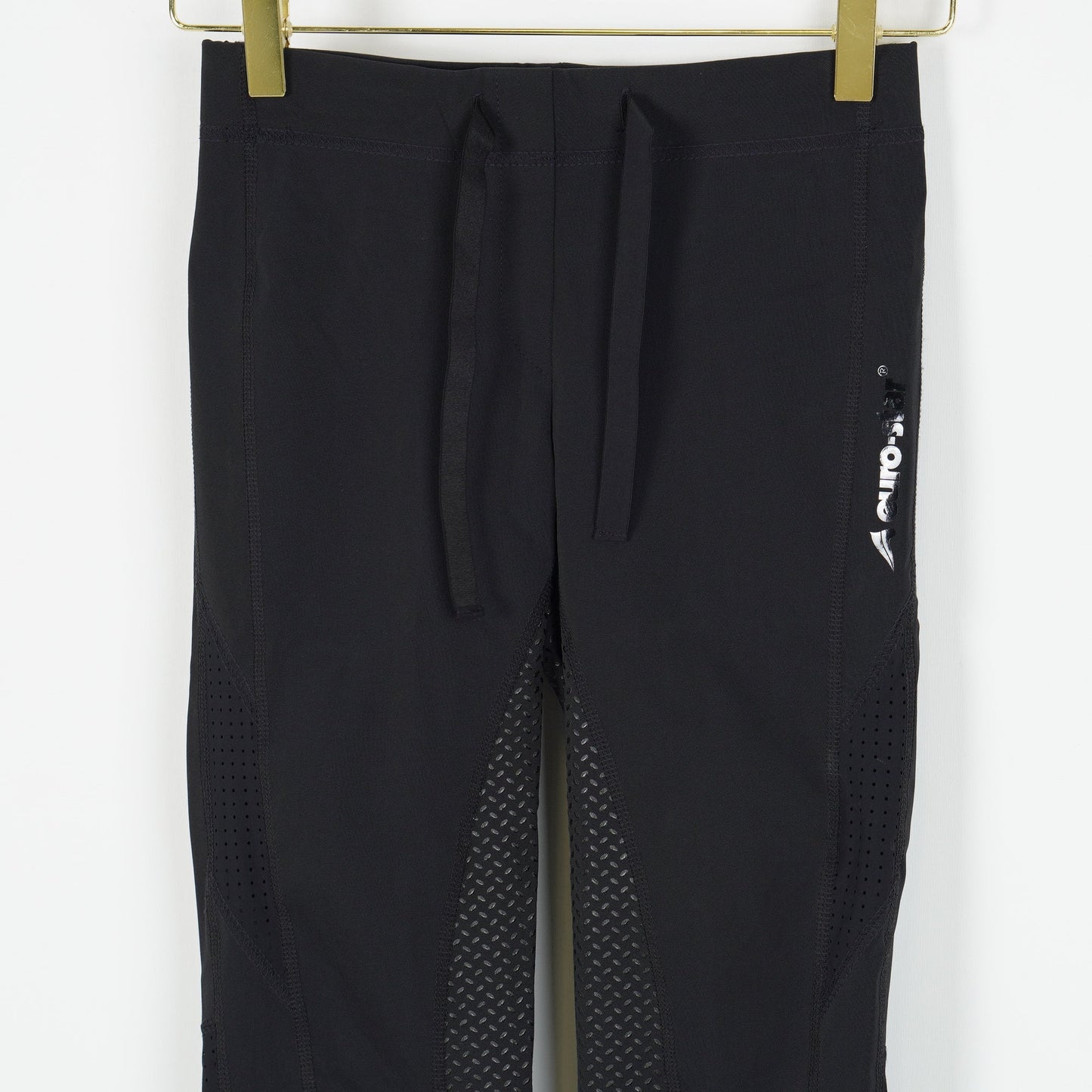 Helskodda ridbyxor från Euro-star i svart, stretchigt, "prassel-tyg". Ridbyxorna är tunna och lätta med ventilationshål längs benen och snöre i midjan. Nya med tags!