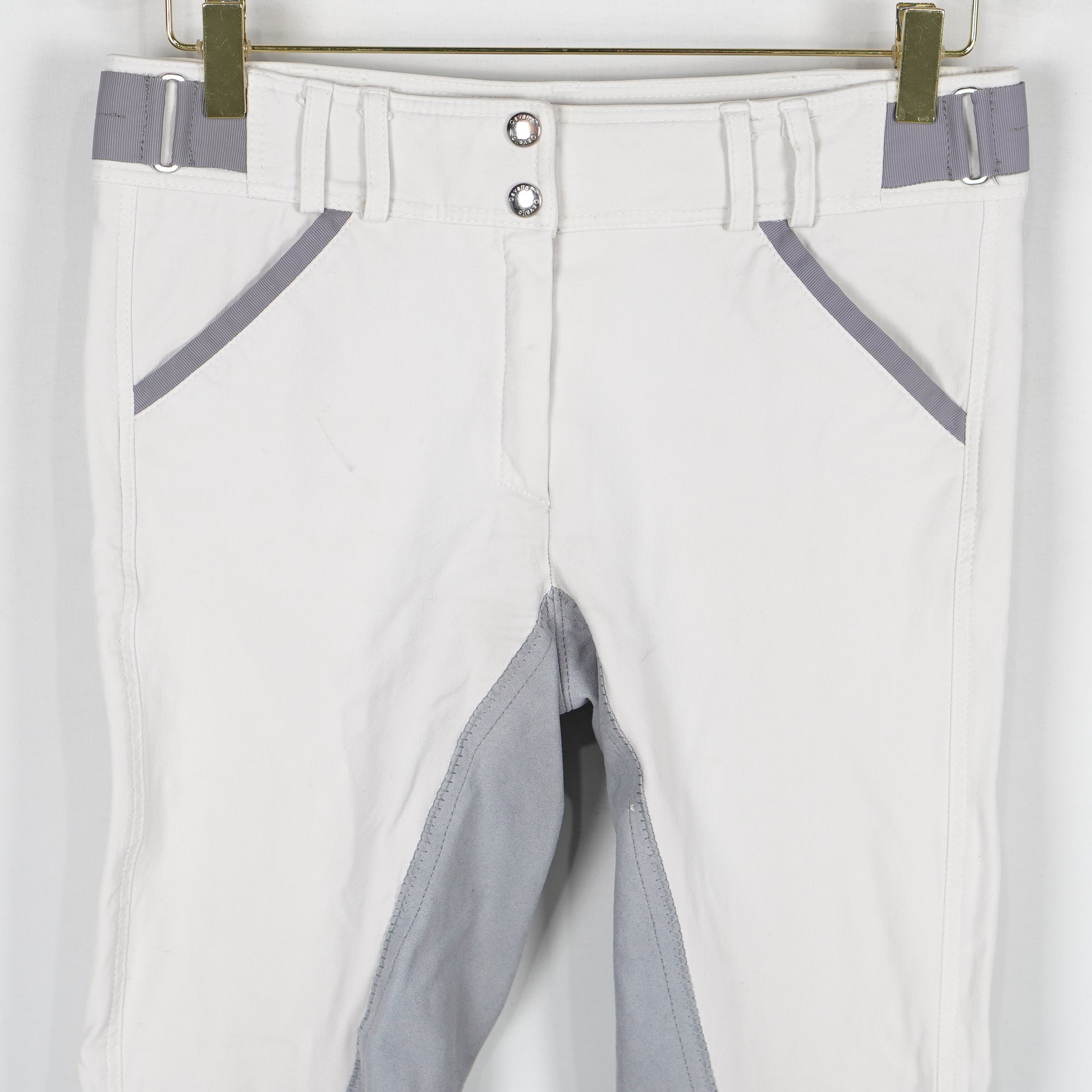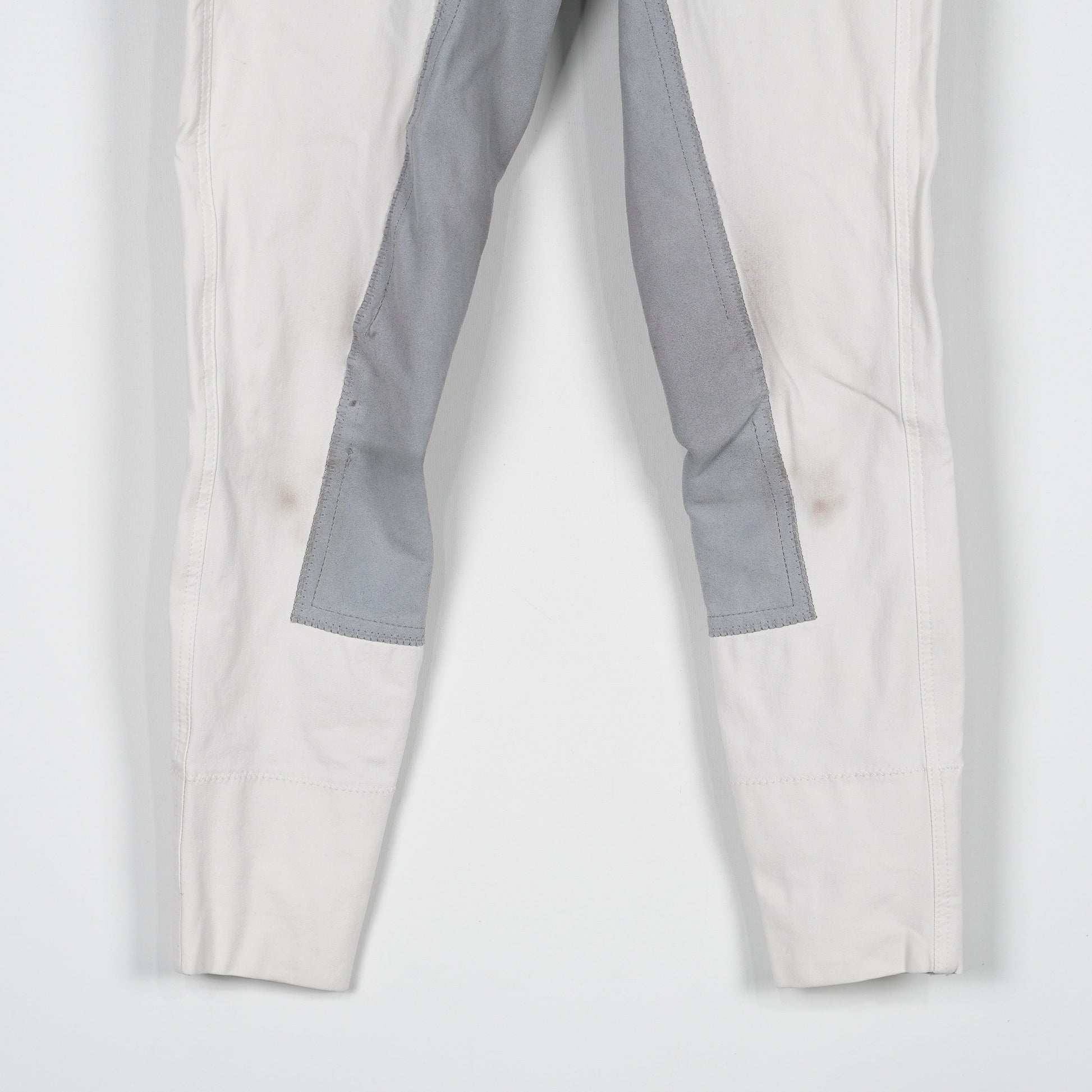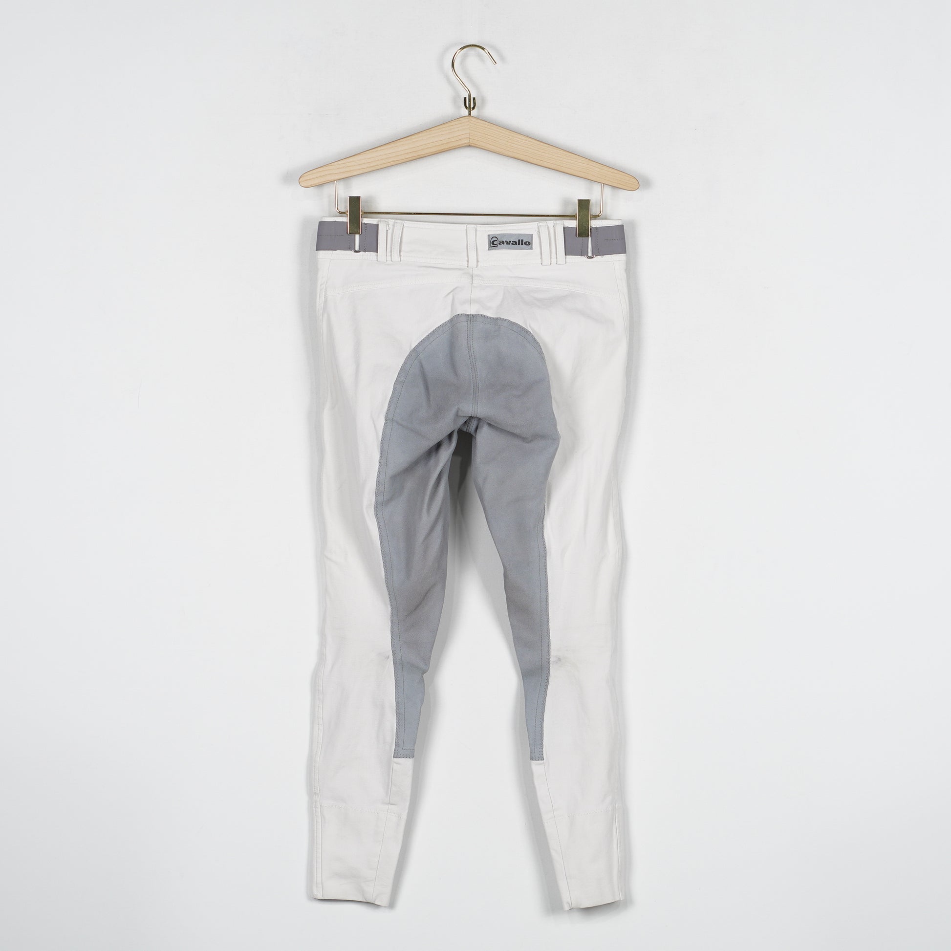 Helskodda ridbyxor från Cavallo med kontrastskoning och elastiskt benslut samt resårband runt midjan. Det har släppt några sömmar och lätta lädermärken finns.